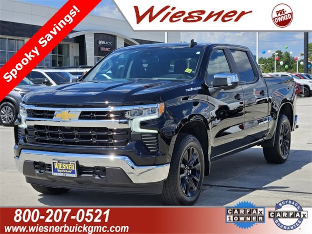 CARFAX One-Owner. Clean CARFAX. Certified. Black 2024 Chevrolet Silverado 1500 LT Texas Edition Plus RWD 10-Speed Automatic EcoTec3 5.3L V8 10-Speed Automatic, Black Leather, 12.3 Multicolor Reconfigurable Digital Display, 2 USB Data Ports, 3.23 Rear Axle Ratio, 4-Wheel Disc Brakes, 6 Speakers, 6-Speaker Audio System, ABS brakes, Adaptive Cruise Control, Air Conditioning, AM/FM radio: SiriusXM with 360L, Auto High-beam Headlights, Auto-Locking Rear Differential, Automatic temperature control, Bluetooth® For Phone, Brake assist, Convenience Package II, Delay-off headlights, Dual front impact airbags, Dual front side impact airbags, Dual Rear USB Ports (Charge Only), Dual-Zone Automatic Climate Control, Electric Rear-Window Defogger, Electrical Steering Column Lock, Electronic Cruise Control, Electronic Stability Control, Electronic Transmission Range Selector Shifter, EZ Lift Power Lock & Release Tailgate, Floor Mounted Center Console, Front Bucket Seats, Front dual zone A/C, Fully automatic headlights, Heated front seats, High Capacity Suspension Package, Hitch Guidance w/Hitch View, In-Vehicle Trailering System App, Integrated Trailer Brake Controller, Keyless Open & Start, Leather Package, Leather-Appointed Front Seat Trim, Low tire pressure warning, Navigation System, Occupant sensing airbag, Panic alarm, Perimeter Lighting, Power driver seat, Power Front Windows w/Driver Express Up/Down, Power Front Windows w/Passenger Express Down, Power Rear Windows w/Express Down, Power Sliding Rear Window w/Rear Defogger, Power steering, Power windows, Premium audio system: Chevrolet Infotainment 3 Premium, Radio data system, Radio: Chevrolet Infotainment 3 Premium System, Rear window defroster, Remote keyless entry, Remote Vehicle Starter System, Security system, SiriusXM w/360L, Speed control, Speed-sensing steering, Steering Wheel Audio Controls, Steering wheel mounted audio controls, Texas Edition Badging, Texas Edition Plus, Theft Deterrent System (Unauthorized Entry), Traction control, Universal Home Remote, Up-Level Rear Seat w/Storage Package, Variably intermittent wipers, Wheels: 20 x 9 Painted Aluminum, Wireless Charging, Wrapped Steering Wheel.