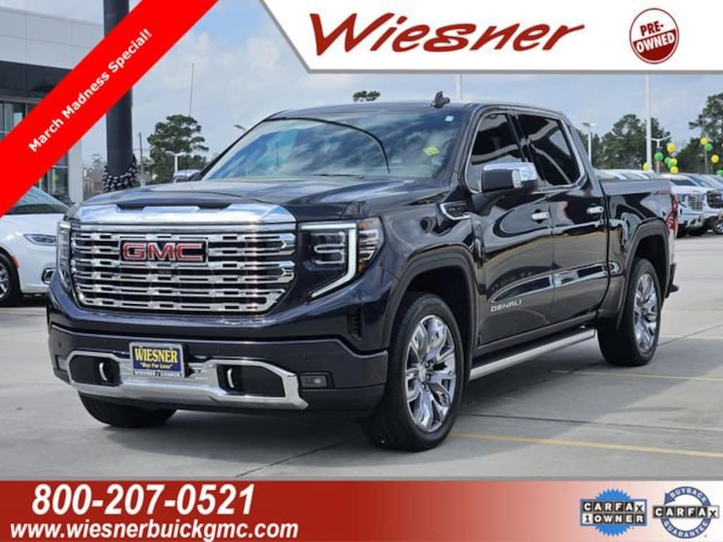 CARFAX One-Owner. Clean CARFAX. Certified. Titanium 2025 GMC Sierra 1500 Denali Reserve Technology 4WD 10-Speed Automatic EcoTec3 5.3L V8 10-Speed Automatic, 4WD, Atmosphere/Brownstone Leather, 12-Way Power Driver Seat Adjuster w/Lumbar, 12-Way Power Passenger Seat Adjuster w/Lumbar, 120-Volt Bed Mounted Power Outlet, 120-Volt Interior Power Outlet, 2 Charge/Data USB Ports Inside Center Console, 2 Type-C Charge-Only Rear USB Ports, 2 USB Ports, 3.23 Rear Axle Ratio, 4-Wheel Disc Brakes, ABS brakes, Adaptive suspension, Air Conditioning, AM/FM radio: SiriusXM with 360L, Apple CarPlay/Android Auto, Auto High-beam Headlights, Auto-dimming door mirrors, Auto-dimming Rear-View mirror, Auto-Locking Rear Differential, Automatic temperature control, Bed View Camera, Brake assist, Buckle to Drive, Bumpers: body-color, Deep-Tinted Glass, Delay-off headlights, Denali Reserve Package, Driver door bin, Driver Memory, Dual front impact airbags, Dual front side impact airbags, Electric Rear-Window Defogger, Electronic Stability Control, Emergency communication system: OnStar, Enhanced Automatic Emergency Braking, Forge Perforated Leather Seat Trim, Front Bucket Seats, Front Center Armrest, Front dual zone A/C, Front fog lights, Front Rain-Sensing Wipers, Fully automatic headlights, GMC MultiPro Power Steps, Heated 2nd Row Outboard Seats, Heated door mirrors, Heated Driver & Front Outboard Passenger Seating, Heated front seats, Heated rear seats, Hill Descent Control, Hitch Guidance, Hitch View, In-Vehicle Trailering System App, Integrated Trailer Brake Controller, IntelliBeam Automatic High Beam On/Off, Keyless Open & Start, LED Cargo Area Lighting, Low tire pressure warning, Memory seat, Multicolor 15 Diagonal Head-Up Display, Navigation System, Occupant sensing airbag, OnStar Services Capable, Outside temperature display, Panic alarm, Perimeter Lighting, Power Door Locks, Power door mirrors, Power driver seat, Power Front Passenger Windows w/Express Up/Down, Power Front Windows w/Driver Express Up/Down, Power passenger seat, Power Rake & Telescoping Steering Column, Power Rear Windows w/Express Down, Power Sliding Rear Window w/Rear Defogger, Power steering, Power Sunroof, Power windows, Premium Bose 7-Speaker Sound System, Push Button Start, Radio data system, Radio: Premium GMC Infotainment Audio System, Rain sensing wipers, Rear Camera Mirror, Rear Cross Traffic Braking, Rear reading lights, Rear seat center armrest, Rear step bumper, Rear window defroster, Remote keyless entry, Remote Vehicle Starter System, Security system, SiriusXM w/360L Trial Subscription, Speed control, Speed-sensing steering, Split folding rear seat, Steering Wheel Audio Controls, Steering wheel mounted audio controls, Technology Package, Traction control, Universal Home Remote, Variably intermittent wipers, Ventilated Driver & Front Passenger Seats, Ventilated front seats, Wheel Locks (Set of 4) (LPO), Wheels: 22 x 9 Painted Aluminum, Wireless Apple CarPlay/Wireless Android Auto.