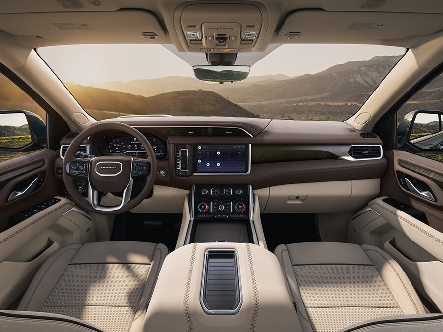 Step inside the 2025 GMC Yukon and be greeted by a spacious and well-appointed interior. The cabin offers generous seating for up to eight passengers, ensuring comfort for everyone on board. Residents of Huntsville will appreciate the tri-zone automatic climate control, allowing personalized temperature settings for the driver, front passenger, and rear occupants. The Yukon also features premium materials throughout, such as perforated leather seating surfaces and genuine wood accents, creating a truly luxurious atmosphere.