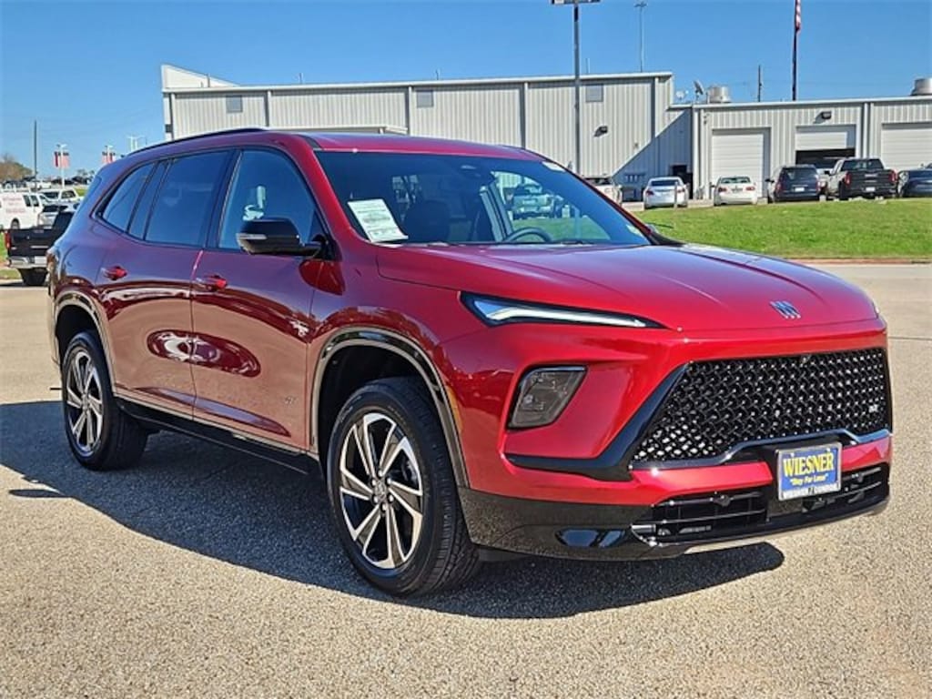 This 2025 Buick Enclave Sport Touring in Cherry Red Tintcoat comes with the following features: 2.5L DOHC 8-Speed Automatic FWD FWD Front Mounting License Plate Bracket Package, Power Package (110-Volt Power Outlet, 2nd Row 1-Touch Flat Folding Seat, 3rd Row 60/40 Power Split-Folding Bench, Head-Up Display, Heated Wiper Park, Memory Settings, and Universal Home Remote), Preferred Equipment Group 1SM, FWD, 12 Speakers, 3rd row seats: split-bench, 4-Wheel Disc Brakes, ABS brakes, Air Conditioning, Alloy wheels, AM/FM radio: SiriusXM with 360L, Auto High-beam Headlights, Auto-dimming door mirrors, Auto-dimming Rear-View mirror, Automatic temperature control, Bose Premium 12-Speaker Audio System, Brake assist, Bumpers: body-color, Compass, Delay-off headlights, Driver 4-Way Power Lumbar Seat Adjuster, Driver 8-Way Power Seat Adjuster, Driver door bin, Driver vanity mirror, Dual front impact airbags, Dual front side impact airbags, Electronic Stability Control, Emergency communication system: OnStar and Buick connected services capable, Four wheel independent suspension, Front anti-roll bar, Front Bucket Seats, Front Center Armrest, Front dual zone A/C, Front Passenger 4-Way Power Lumbar Seat Adjuster, Front Passenger 6-Way Power Seat Adjuster, Front reading lights, Fully automatic headlights, Heated door mirrors, Heated Driver & Front Passenger Seats, Heated front seats, Heated steering wheel, Illuminated entry, Leather steering wheel, Low tire pressure warning, Navigation System, Occupant sensing airbag, Outside temperature display, Overhead airbag, Overhead console, Panic alarm, Passenger door bin, Passenger vanity mirror, Perforated Leatherette Seat Trim, Power door mirrors, Power driver seat, Power Liftgate, Power Panoramic Sunroof w/Sunshade, Power passenger seat, Power steering, Power windows, Premium audio system: Buick Infotainment System, Radio data system, Radio: Infotainment Center, Rear air conditioning, Rear anti-roll bar, Rear reading lights, Rear side impact airbag, Rear window defroster, Rear window wiper, Remote keyless entry, Security system, SiriusXM w/360L Trial Subscription, Speed control, Speed-sensing steering, Spoiler, Sport steering wheel, Steering wheel mounted audio controls, Tachometer, Telescoping steering wheel, Tilt steering wheel, Traction control, Trip computer, Turn signal indicator mirrors, Variably intermittent wipers, Vertical Cargo Net (LPO), Voltmeter, Wheels: 20 Alloy w/High Gloss Black, Wireless Apple CarPlay, and Wireless Google Android Auto.