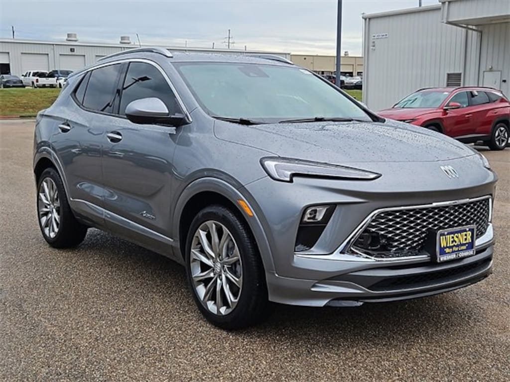 This 2025 Buick Encore GX Avenir in Moonstone Gray Metallic comes with the following features: ECOTEC 1.3L Turbo CVT FWD Avenir Convenience Package (Bose Premium 7-Speaker Audio System, Front Intermittent Rainsense Wipers, Hands Free Power Liftgate, and Rear Park Assist), Avenir Technology Package (Adaptive Cruise Control, HD Surround Vision, Rear Camera Mirror, Rear Camera Mirror Washer, and Wireless Charging), Preferred Equipment Group 1SL, 2 USB Ports (1 Type-A, 1 Type-C), 2-Way Front Passenger Power Lumbar, 2-Way Power Driver Lumbar Control, 4-Wheel Disc Brakes, 5.45 Final Drive Axle Ratio, 6 Speakers, 6-Way Power Front Passenger Seat Adjuster, 8-Way Power Driver Seat Adjuster, ABS brakes, Air Conditioning, Alloy wheels, AM/FM radio: SiriusXM, Auto High-beam Headlights, Auto-dimming Rear-View mirror, Automatic temperature control, Brake assist, Bumpers: body-color, Compass, Delay-off headlights, Driver door bin, Driver vanity mirror, Dual front impact airbags, Dual front side impact airbags, Electronic Stability Control, Emergency communication system: OnStar and Buick connected services capable, Enhanced Performance 6-Speaker System, Front anti-roll bar, Front Bucket Seats, Front Center Armrest, Front dual zone A/C, Front License Plate Bracket, Front reading lights, Front wheel independent suspension, Fully automatic headlights, Garage door transmitter, Heated door mirrors, Heated Driver & Front Passenger Seats, Heated front seats, Heated steering wheel, Illuminated entry, Knee airbag, Low tire pressure warning, Memory seat, Occupant sensing airbag, Outside temperature display, Overhead airbag, Overhead console, Panic alarm, Passenger door bin, Passenger vanity mirror, Perforated Leather-Appointed Seat Trim, Power door mirrors, Power driver seat, Power passenger seat, Power steering, Power windows, Radio data system, Radio: Audio System w/AM/FM, Rear Cargo Net, Rear reading lights, Rear seat center armrest, Rear side impact airbag, Rear window defroster, Rear window wiper, Remote keyless entry, Ride & Handling Suspension, Security system, SiriusXM Trial Subscription, Speed control, Speed-sensing steering, Split folding rear seat, Spoiler, Steering wheel mounted audio controls, Tachometer, Telescoping steering wheel, Tilt steering wheel, Traction control, Trip computer, Variably intermittent wipers, Wheels: 19 Avenir Premium Pearl Nickel Aluminum, and Wireless Apple CarPlay/Wireless Android Auto. 29/31 City/Highway MPG