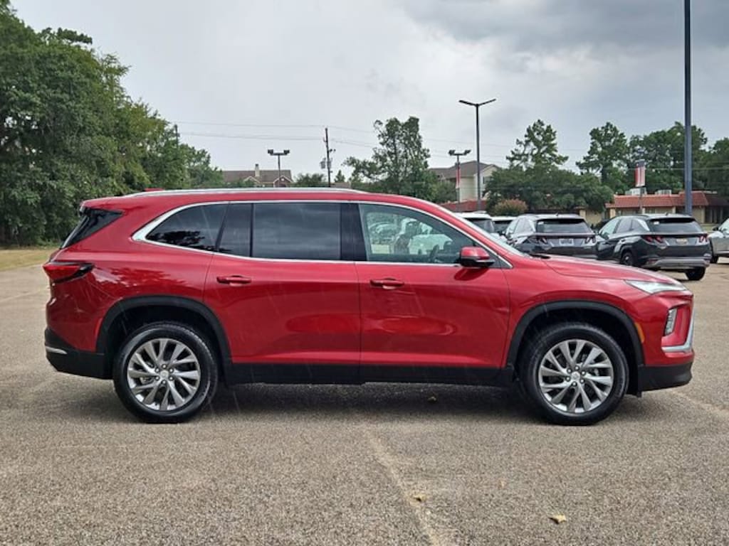 This 2026 Buick Enclave Preferred in cherry red tintcoat comes with the following features: 2.5L DOHC 8-Speed Automatic FWD FWD Front Mounting License Plate Bracket Package, Preferred Equipment Group 1SD, FWD, 12 Speakers, 3rd row seats: split-bench, 4-Wheel Disc Brakes, ABS brakes, Air Conditioning, Alloy wheels, AM/FM radio: SiriusXM with 360L, Apple CarPlay/Android Auto, Auto High-beam Headlights, Auto-dimming door mirrors, Auto-dimming Rear-View mirror, Automatic temperature control, Bose Premium 12-Speaker Audio System with Subwoofer, Brake assist, Bumpers: body-color, Compass, Delay-off headlights, Driver 4-Way Power Lumbar Seat Adjuster, Driver 8-Way Power Seat Adjuster, Driver door bin, Driver vanity mirror, Dual front impact airbags, Dual front side impact airbags, Electronic Stability Control, Emergency communication system: OnStar and Buick connected services capable, Four wheel independent suspension, Front anti-roll bar, Front Bucket Seats, Front Center Armrest, Front dual zone A/C, Front Passenger 4-Way Power Lumbar Seat Adjuster, Front Passenger 6-Way Power Seat Adjuster, Front reading lights, Fully automatic headlights, Heated door mirrors, Heated Driver and Front Passenger Seats, Heated front seats, Heated steering wheel, Illuminated entry, Leather steering wheel, Leatherette Seat Trim, Low tire pressure warning, Navigation System, Occupant sensing airbag, Outside temperature display, Overhead airbag, Overhead console, Panic alarm, Passenger door bin, Passenger vanity mirror, Power door mirrors, Power driver seat, Power Liftgate, Power passenger seat, Power steering, Power windows, Premium audio system: Buick Infotainment System, Radio data system, Radio: Infotainment Center, Rear air conditioning, Rear anti-roll bar, Rear reading lights, Rear side impact airbag, Rear window defroster, Rear window wiper, Remote keyless entry, Security system, SiriusXM with 360L Trial Subscription, Speed control, Speed-sensing steering, Spoiler, Steering wheel mounted audio controls, Tachometer, Telescoping steering wheel, Tilt steering wheel, Traction control, Trip computer, Turn signal indicator mirrors, Variably intermittent wipers, Voltmeter, Wheels: 20 Alloy with Medium Android Finish, Wireless Apple CarPlay, and Wireless Google Android Auto. Price includes: $1250 - Buick GMC Bonus Cash. Exp. 04/30/2026 $500 - Buick & GMC Consumer Cash Program. Exp. 04/30/2026