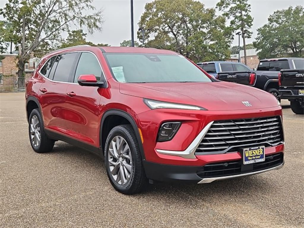 This 2026 Buick Enclave Preferred in cherry red tintcoat comes with the following features: 2.5L DOHC 8-Speed Automatic FWD FWD Power Package (110-Volt Power Outlet, 2nd Row 1-Touch Flat Folding Seat, 3rd Row 60/40 Power Split-Folding Bench Seat, Head-Up Display, Heated Wiper Park, Inside Rearview Auo-Dimming Rear Camera Mirror, Memory Settings, and Universal Home Remote), Preferred Equipment Group 1SD, FWD, 12 Speakers, 3rd row seats: split-bench, 4-Wheel Disc Brakes, ABS brakes, Air Conditioning, Alloy wheels, AM/FM radio: SiriusXM with 360L, Apple CarPlay/Android Auto, Auto High-beam Headlights, Auto-dimming door mirrors, Auto-dimming Rear-View mirror, Automatic temperature control, Bose Premium 12-Speaker Audio System with Subwoofer, Brake assist, Bumpers: body-color, Compass, Delay-off headlights, Driver 4-Way Power Lumbar Seat Adjuster, Driver 8-Way Power Seat Adjuster, Driver door bin, Driver vanity mirror, Dual front impact airbags, Dual front side impact airbags, Electronic Stability Control, Emergency communication system: OnStar and Buick connected services capable, Four wheel independent suspension, Front anti-roll bar, Front Bucket Seats, Front Center Armrest, Front dual zone A/C, Front Passenger 4-Way Power Lumbar Seat Adjuster, Front Passenger 6-Way Power Seat Adjuster, Front reading lights, Fully automatic headlights, Heated door mirrors, Heated Driver and Front Passenger Seats, Heated front seats, Heated steering wheel, Illuminated entry, Leather steering wheel, Leatherette Seat Trim, Low tire pressure warning, Navigation System, Occupant sensing airbag, Outside temperature display, Overhead airbag, Overhead console, Panic alarm, Passenger door bin, Passenger vanity mirror, Power door mirrors, Power driver seat, Power Liftgate, Power passenger seat, Power steering, Power windows, Premium audio system: Buick Infotainment System, Radio data system, Radio: Infotainment Center, Rear air conditioning, Rear anti-roll bar, Rear reading lights, Rear side impact airbag, Rear window defroster, Rear window wiper, Remote keyless entry, Security system, SiriusXM with 360L Trial Subscription, Speed control, Speed-sensing steering, Spoiler, Steering wheel mounted audio controls, Tachometer, Telescoping steering wheel, Tilt steering wheel, Traction control, Trip computer, Turn signal indicator mirrors, Variably intermittent wipers, Voltmeter, Wheels: 20 Alloy with Medium Android Finish, Wireless Apple CarPlay, and Wireless Google Android Auto. Price includes: $1750 - December Buick GMC Holiday Event Bonus Cash. Exp. 01/02/2026