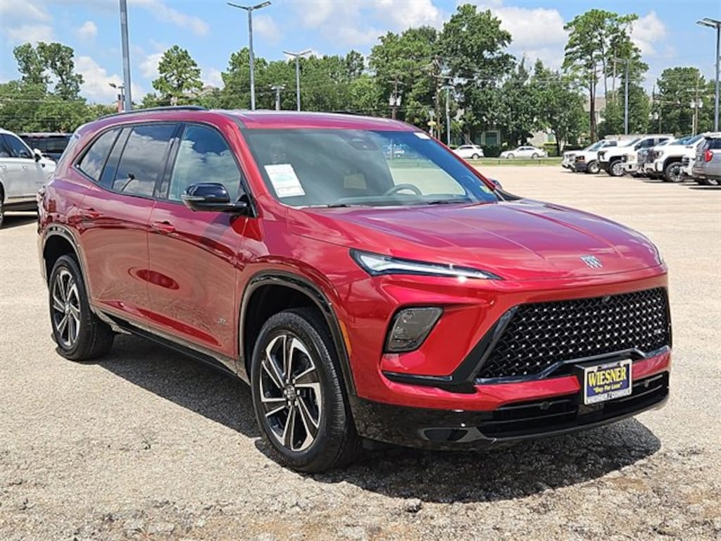 This 2026 Buick Enclave Sport Touring in Cherry Red Tintcoat comes with the following features: 2.5L DOHC 8-Speed Automatic FWD FWD Front Mounting License Plate Bracket Package, Power Package (110-Volt Power Outlet, 2nd Row 1-Touch Flat Folding Seat, 3rd Row 60/40 Power Split-Folding Bench, Head-Up Display, Heated Wiper Park, Inside Rearview Auto-Dimming Rear Camera Mirror, Memory Settings, and Universal Home Remote), Preferred Equipment Group 1SM, FWD, 12 Speakers, 3rd row seats: split-bench, 4-Wheel Disc Brakes, ABS brakes, Air Conditioning, Alloy wheels, AM/FM radio: SiriusXM with 360L, Apple CarPlay/Android Auto, Auto High-beam Headlights, Auto-dimming door mirrors, Auto-dimming Rear-View mirror, Automatic temperature control, Bose Premium 12-Speaker Audio System, Brake assist, Bumpers: body-color, Compass, Delay-off headlights, Driver 4-Way Power Lumbar Seat Adjuster, Driver 8-Way Power Seat Adjuster, Driver door bin, Driver vanity mirror, Dual front impact airbags, Dual front side impact airbags, Electronic Stability Control, Emergency communication system: OnStar and Buick connected services capable, Four wheel independent suspension, Front anti-roll bar, Front Bucket Seats, Front Center Armrest, Front dual zone A/C, Front Passenger 4-Way Power Lumbar Seat Adjuster, Front Passenger 6-Way Power Seat Adjuster, Front reading lights, Fully automatic headlights, Heated door mirrors, Heated Driver & Front Passenger Seats, Heated front seats, Heated steering wheel, Illuminated entry, Leather steering wheel, Low tire pressure warning, Navigation System, Occupant sensing airbag, Outside temperature display, Overhead airbag, Overhead console, Panic alarm, Passenger door bin, Passenger vanity mirror, Perforated Leatherette Seat Trim, Power door mirrors, Power driver seat, Power Liftgate, Power passenger seat, Power steering, Power windows, Premium audio system: Buick Infotainment System, Radio data system, Radio: Infotainment Center, Rear air conditioning, Rear anti-roll bar, Rear reading lights, Rear side impact airbag, Rear window defroster, Rear window wiper, Remote keyless entry, Security system, SiriusXM w/360L Trial Subscription, Speed control, Speed-sensing steering, Spoiler, Sport steering wheel, Steering wheel mounted audio controls, Tachometer, Telescoping steering wheel, Tilt steering wheel, Traction control, Trip computer, Turn signal indicator mirrors, Variably intermittent wipers, Voltmeter, Wheels: 20 Alloy w/High Gloss Black, Wireless Apple CarPlay, and Wireless Google Android Auto.