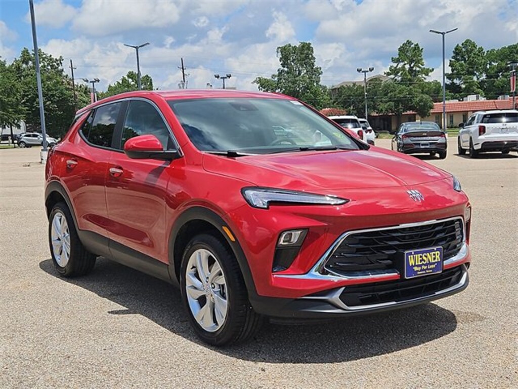 This 2026 Buick Encore GX Preferred in Brilliant Red comes with the following features: ECOTEC 1.3L Turbo CVT FWD Preferred Equipment Group 1SB, 4-Way Manual Passenger Seat Adjuster, 4-Wheel Disc Brakes, 5.45 Final Drive Axle Ratio, 6 Speakers, 6-Way Manual Driver Seat Adjuster, ABS brakes, Air Conditioning, Alloy wheels, AM/FM radio: SiriusXM, Auto High-beam Headlights, Automatic temperature control, Brake assist, Bumpers: body-color, Cloth w/Leatherette Seat Trim, Compass, Delay-off headlights, Driver door bin, Driver vanity mirror, Dual front impact airbags, Dual front side impact airbags, Electric Auxiliary Heating/Defroster, Electronic Stability Control, Emergency communication system: OnStar and Buick connected services capable, Enhanced Performance 6-Speaker System, Front anti-roll bar, Front Bucket Seats, Front Center Armrest, Front License Plate Bracket, Front reading lights, Front wheel independent suspension, Fully automatic headlights, Heated door mirrors, Illuminated entry, Knee airbag, Low tire pressure warning, Mechanical Jack w/Tools, Occupant sensing airbag, Outside temperature display, Overhead airbag, Overhead console, Panic alarm, Passenger door bin, Passenger vanity mirror, Power door mirrors, Power steering, Power windows, Radio data system, Radio: AM/FM Audio System, Rear reading lights, Rear side impact airbag, Rear window defroster, Rear window wiper, Remote keyless entry, Ride & Handling Suspension, Security system, SiriusXM Trial Subscription, Speed control, Speed-sensing steering, Split folding rear seat, Spoiler, Steering wheel mounted audio controls, Tachometer, Telescoping steering wheel, Tilt steering wheel, Traction control, Trip computer, Variably intermittent wipers, Wheels: 18 Bright Silver Painted Aluminum, and Wireless Apple CarPlay/Wireless Android Auto. 29/31 City/Highway MPG