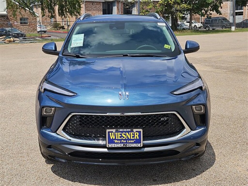 This 2026 Buick Encore GX Sport Touring in Ocean Blue Metallic comes with the following features: ECOTEC 1.3L Turbo CVT FWD Comfort Package (2-Way Power Driver Lumbar Control, 8-Way Power Driver Seat Adjuster, Flat-Folding Front Passenger Seatback, Heated Driver & Front Passenger Seats, Heated Steering Wheel, and Rear Center Armrest), Preferred Equipment Group 1SD, 4-Way Manual Passenger Seat Adjuster, 4-Wheel Disc Brakes, 5.45 Final Drive Axle Ratio, 6 Speakers, 6-Way Manual Driver Seat Adjuster, ABS brakes, Air Conditioning, Alloy wheels, AM/FM radio: SiriusXM, Auto High-beam Headlights, Automatic temperature control, Brake assist, Bumpers: body-color, Compass, Delay-off headlights, Driver door bin, Driver vanity mirror, Dual front impact airbags, Dual front side impact airbags, Electronic Stability Control, Emergency communication system: OnStar and Buick connected services capable, Enhanced Performance 6-Speaker System, Front anti-roll bar, Front Bucket Seats, Front Center Armrest, Front reading lights, Front wheel independent suspension, Fully automatic headlights, Heated door mirrors, Illuminated entry, Knee airbag, Leatherette Seat Trim, Low tire pressure warning, Occupant sensing airbag, Outside temperature display, Overhead airbag, Overhead console, Panic alarm, Passenger door bin, Passenger vanity mirror, Power door mirrors, Power Liftgate, Power steering, Power windows, Radio data system, Radio: AM/FM Audio System, Rear reading lights, Rear side impact airbag, Rear window defroster, Rear window wiper, Remote keyless entry, Ride & Handling Suspension, Security system, SiriusXM Trial Subscription, Speed control, Speed-sensing steering, Split folding rear seat, Spoiler, Sport steering wheel, Steering wheel mounted audio controls, Tachometer, Telescoping steering wheel, Tilt steering wheel, Traction control, Trip computer, Variably intermittent wipers, Wheels: 18 Gloss Black Aluminum, and Wireless Apple CarPlay/Wireless Android Auto. 29/31 City/Highway MPG