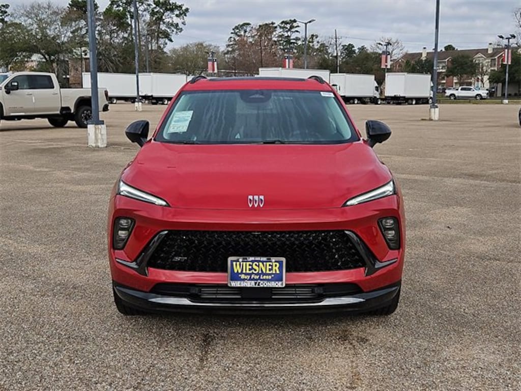 This 2026 Buick Envision Sport Touring in Brilliant Red comes with the following features: 2.0L Turbocharged 9-Speed Automatic AWD Comfort and Convenience Package (3-Channel Programmable Universal Home Remote, Air Quality Indicator Sensor, Automatic Air Recirculation, Dual-Zone Automatic Climate Control Air Conditioning, Hands-Free Power Programmable Liftgate, Heated Driver and Front Passenger Seats, and Heated Steering Wheel), Preferred Equipment Group 1SL, 3.47 Final Drive Axle Ratio, 30 Diagonal LCD Display, 4-Wheel Disc Brakes, 9 Speakers, ABS brakes, Air Conditioning, Alloy wheels, AM/FM radio: SiriusXM, Auto High-beam Headlights, Auto-dimming door mirrors, Auto-dimming Rear-View mirror, Automatic temperature control, Bose Premium 9-Speaker Audio System Feature, Brake assist, Bumpers: body-color, Compass, Delay-off headlights, Driver 4-Way Power Lumbar Seat Adjuster, Driver 8-Way Power Seat Adjuster, Driver door bin, Driver vanity mirror, Dual front impact airbags, Dual front side impact airbags, Electronic Stability Control, Emergency communication system: OnStar and Buick connected services capable, Exterior Parking Camera Rear, Four wheel independent suspension, Front anti-roll bar, Front Bucket Seats, Front Center Armrest, Front Passenger 6-Way Manual Seat Adjuster, Front reading lights, Fully automatic headlights, Heads-Up Display, Heated door mirrors, Illuminated entry, Knee airbag, Leather steering wheel, Low tire pressure warning, Memory seat, Navigation System, Occupant sensing airbag, Outside temperature display, Overhead airbag, Overhead console, Panic alarm, Passenger door bin, Passenger vanity mirror, Perforated Leather-Appointed Seat Trim, Power door mirrors, Power driver seat, Power Liftgate, Power Panoramic Tilt-Sliding Moonroof, Power steering, Power windows, Premium audio system: Buick Infotainment System, Radio data system, Radio: Infotainment Center, Rear anti-roll bar, Rear reading lights, Rear seat center armrest, Rear window defroster, Rear window wiper, Remote keyless entry, Security system, SiriusXM Trial Subscription, Speed control, Split folding rear seat, Spoiler, Sport steering wheel, Steering wheel mounted audio controls, Telescoping steering wheel, Tilt steering wheel, Traction control, Trip computer, Variably intermittent wipers, Wheels: 20 Carbon Flash Metallic Alloy, and Wireless Apple CarPlay/Wireless Android Auto. 22/28 City/Highway MPG Price includes: $500 - Buick GMC Bonus Cash. Exp. 03/31/2026