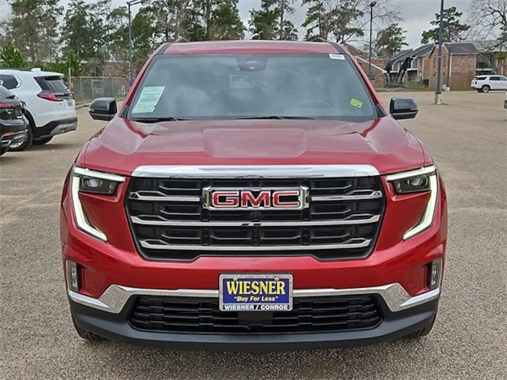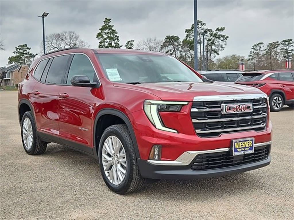This 2025 GMC Acadia Elevation in Volcanic Red Tintcoat comes with the following features: 2.5L DOHC 8-Speed Automatic FWD FWD and After Dark Cloth Elevation Premium Package (3-Channel Programmable Universal Home Remote, 6-Way Power Front Passenger Seat Adjuster, 7-Passenger Seating (2-2-3 Seating Configuration), Auto-Dimming Inside Rear-View Mirror, CoreTec Seat Trim, Front Passenger Power Lumbar Seat Adjuster, and Wheels: 20 x 8 Bright Silver Aluminum), Preferred Equipment Group 4SC, FWD, After Dark Cloth, 12 Speakers, 18 x 7.5 Aluminum Wheels, 2-Way Driver Power Lumbar Seat Adjuster, 3 Years SiriusXM, 3.49 Final Drive Axle Ratio, 3rd row seats: split-bench, 4-Way Manual Front Passenger Seat Adjuster, 4-Wheel Disc Brakes, 8-Passenger Seating (2-3-3 Seating Configuration), 8-Way Power Driver Seat Adjuster, ABS brakes, Air Conditioning, Alloy wheels, AM/FM radio: SiriusXM with 360L, Apple CarPlay/Android Auto, Auto High-beam Headlights, Auto-dimming Rear-View mirror, Automatic temperature control, Bodyside moldings, Bose Premium 12-Speaker System w/Sub-Woofer, Brake assist, Bumpers: body-color, Cloth Seat Trim, Compass, Delay-off headlights, Driver door bin, Driver vanity mirror, Dual front impact airbags, Dual front side impact airbags, Electronic Stability Control, Emergency communication system: OnStar Services capable, Exterior Parking Camera Rear, Four wheel independent suspension, Front anti-roll bar, Front Bucket Seats, Front Center Armrest, Front dual zone A/C, Front fog lights, Front License Plate Bracket, Front reading lights, Fully automatic headlights, Heated door mirrors, Heated Driver & Front Passenger Seats, Heated front seats, Heated steering wheel, Illuminated entry, Leather steering wheel, Low tire pressure warning, Navigation System, Occupant sensing airbag, Outside temperature display, Overhead airbag, Overhead console, Panic alarm, Passenger door bin, Passenger vanity mirror, Power door mirrors, Power driver seat, Power Liftgate, Power steering, Power windows, Radio data system, Radio: 15 Premium GMC Infotainment System, Rear air conditioning, Rear anti-roll bar, Rear reading lights, Rear seat center armrest, Rear side impact airbag, Rear window defroster, Rear window wiper, Remote keyless entry, Security system, SiriusXM w/360L, Speed control, Speed-sensing steering, Split folding rear seat, Spoiler, Sport steering wheel, Steering wheel mounted audio controls, Tachometer, Telescoping steering wheel, Tilt steering wheel, Traction control, Trip computer, Turn signal indicator mirrors, Variably intermittent wipers, and Voltmeter. 20/27 City/Highway MPG