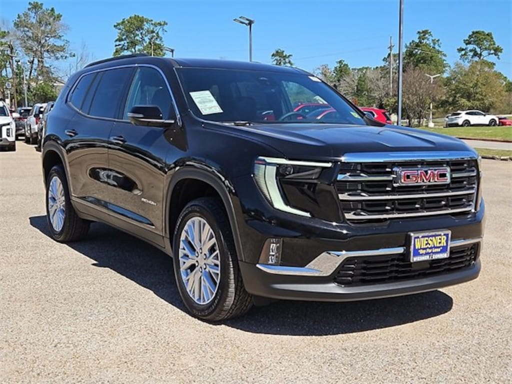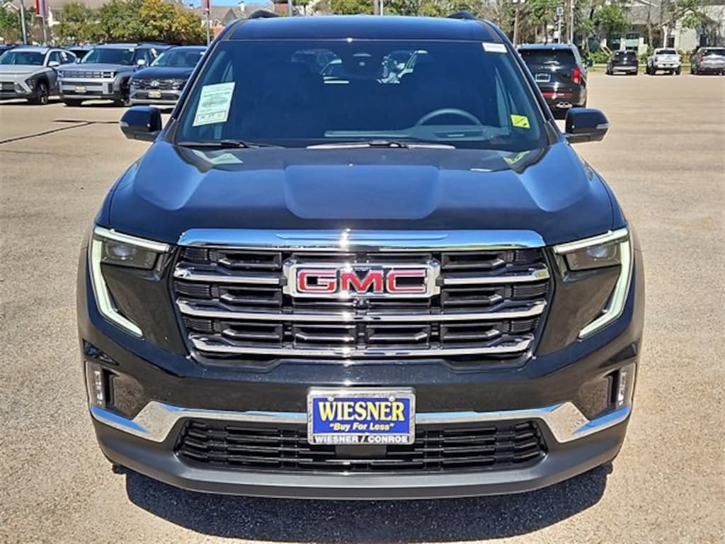 This 2025 GMC Acadia Elevation in Ebony Twilight Metallic comes with the following features: 2.5L DOHC 8-Speed Automatic FWD FWD and After Dark Cloth Elevation Premium Package (3-Channel Programmable Universal Home Remote, 6-Way Power Front Passenger Seat Adjuster, 7-Passenger Seating (2-2-3 Seating Configuration), Auto-Dimming Inside Rear-View Mirror, CoreTec Seat Trim, Front Passenger Power Lumbar Seat Adjuster, and Wheels: 20 x 8 Bright Silver Aluminum), Preferred Equipment Group 4SC, FWD, After Dark Cloth, 12 Speakers, 18 x 7.5 Aluminum Wheels, 2-Way Driver Power Lumbar Seat Adjuster, 3 Years SiriusXM, 3.49 Final Drive Axle Ratio, 3rd row seats: split-bench, 4-Way Manual Front Passenger Seat Adjuster, 4-Wheel Disc Brakes, 8-Passenger Seating (2-3-3 Seating Configuration), 8-Way Power Driver Seat Adjuster, ABS brakes, Air Conditioning, Alloy wheels, AM/FM radio: SiriusXM with 360L, Apple CarPlay/Android Auto, Auto High-beam Headlights, Auto-dimming Rear-View mirror, Automatic temperature control, Bodyside moldings, Bose Premium 12-Speaker System w/Sub-Woofer, Brake assist, Bumpers: body-color, Cloth Seat Trim, Compass, Delay-off headlights, Driver door bin, Driver vanity mirror, Dual front impact airbags, Dual front side impact airbags, Electronic Stability Control, Emergency communication system: OnStar Services capable, Exterior Parking Camera Rear, Four wheel independent suspension, Front anti-roll bar, Front Bucket Seats, Front Center Armrest, Front dual zone A/C, Front fog lights, Front License Plate Bracket, Front reading lights, Fully automatic headlights, Heated door mirrors, Heated Driver & Front Passenger Seats, Heated front seats, Heated steering wheel, Illuminated entry, Leather steering wheel, Low tire pressure warning, Navigation System, Occupant sensing airbag, Outside temperature display, Overhead airbag, Overhead console, Panic alarm, Passenger door bin, Passenger vanity mirror, Power door mirrors, Power driver seat, Power Liftgate, Power steering, Power windows, Radio data system, Radio: 15 Premium GMC Infotainment System, Rear air conditioning, Rear anti-roll bar, Rear reading lights, Rear seat center armrest, Rear side impact airbag, Rear window defroster, Rear window wiper, Remote keyless entry, Security system, SiriusXM w/360L, Speed control, Speed-sensing steering, Split folding rear seat, Spoiler, Sport steering wheel, Steering wheel mounted audio controls, Tachometer, Telescoping steering wheel, Tilt steering wheel, Traction control, Trip computer, Turn signal indicator mirrors, Variably intermittent wipers, and Voltmeter. 20/27 City/Highway MPG