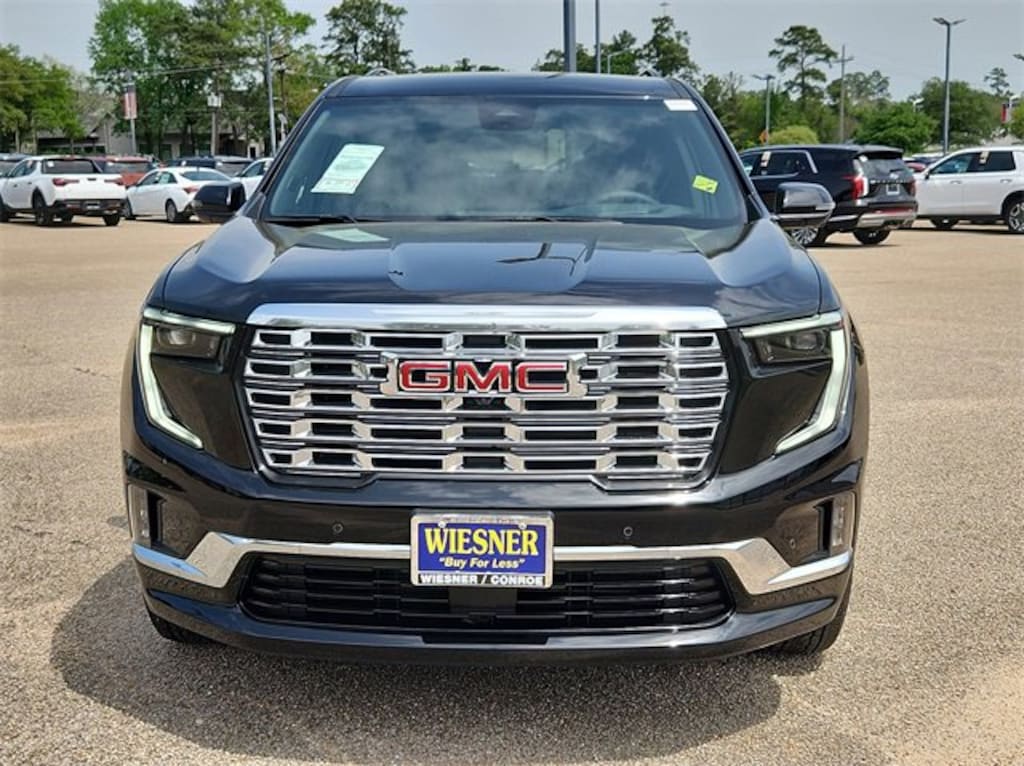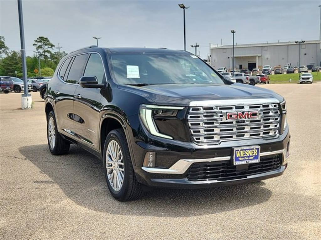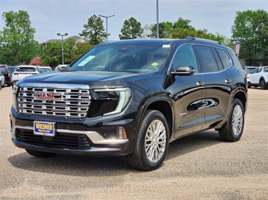 This 2025 GMC Acadia Denali in Ebony Twilight Metallic comes with the following features: 2.5L DOHC 8-Speed Automatic FWD FWD and After Dark Leather Memory Package, Preferred Equipment Group 5SA, Super Cruise Package (Driver Attention Assist, Enhanced Automatic Parking Assist, Rear Camera Mirror, and Super Cruise), FWD, After Dark Leather, 12 Speakers, 3 Years SiriusXM, 3.49 Final Drive Axle Ratio, 3rd Row 60/40 Power Split-Folding Bench, 3rd row seats: split-bench, 4-Wheel Disc Brakes, 6-Way Power Front Passenger Seat Adjuster, 7-Passenger Seating (2-2-3 Seating Configuration), 8-Way Power Driver Seat Adjuster, ABS brakes, Air Conditioning, Alloy wheels, AM/FM radio: SiriusXM with 360L, Apple CarPlay/Android Auto, Auto High-beam Headlights, Auto-dimming door mirrors, Auto-dimming Rear-View mirror, Automatic temperature control, Bodyside moldings, Bose Premium 12-Speaker System w/Sub-Woofer, Brake assist, Bumpers: body-color, Compass, Delay-off headlights, Driver 4-Way Power Lumbar Seat Adjuster, Driver door bin, Driver vanity mirror, Dual front impact airbags, Dual front side impact airbags, Electronic Stability Control, Emergency communication system: OnStar Services capable, Exterior Parking Camera Rear, Four wheel independent suspension, Front anti-roll bar, Front Bucket Seats, Front Center Armrest, Front dual zone A/C, Front fog lights, Front License Plate Bracket, Front Passenger 4-Way Power Lumbar Seat Adjuster, Front reading lights, Fully automatic headlights, Garage door transmitter, Genuine wood console insert, Genuine wood dashboard insert, Genuine wood door panel insert, Heads-Up Display, Heated & Ventilated Driver & Front Passenger Seats, Heated door mirrors, Heated Driver & Front Passenger Seats, Heated front seats, Heated rear seats, Heated steering wheel, Illuminated entry, Leather steering wheel, Low tire pressure warning, Memory seat, Navigation System, Occupant sensing airbag, Outside temperature display, Overhead airbag, Overhead console, Panic alarm, Passenger door bin, Passenger vanity mirror, Perforated Leather-Appointed Seat Trim, Power door mirrors, Power driver seat, Power Liftgate, Power passenger seat, Power steering, Power windows, Radio data system, Radio: 15 Premium GMC Infotainment System, Rain sensing wipers, Rear air conditioning, Rear anti-roll bar, Rear reading lights, Rear side impact airbag, Rear window defroster, Rear window wiper, Remote keyless entry, Security system, SiriusXM w/360L, Speed control, Speed-sensing steering, Split folding rear seat, Spoiler, Sport steering wheel, Steering wheel memory, Steering wheel mounted audio controls, Tachometer, Telescoping steering wheel, Tilt steering wheel, Traction control, Trip computer, Turn signal indicator mirrors, Variably intermittent wipers, Ventilated front seats, Voltmeter, and Wheels: 20 x 8 Pearl Nickel Machined Aluminum. 20/27 City/Highway MPG