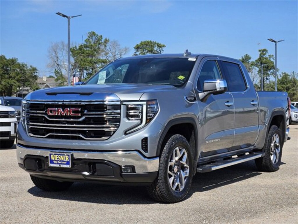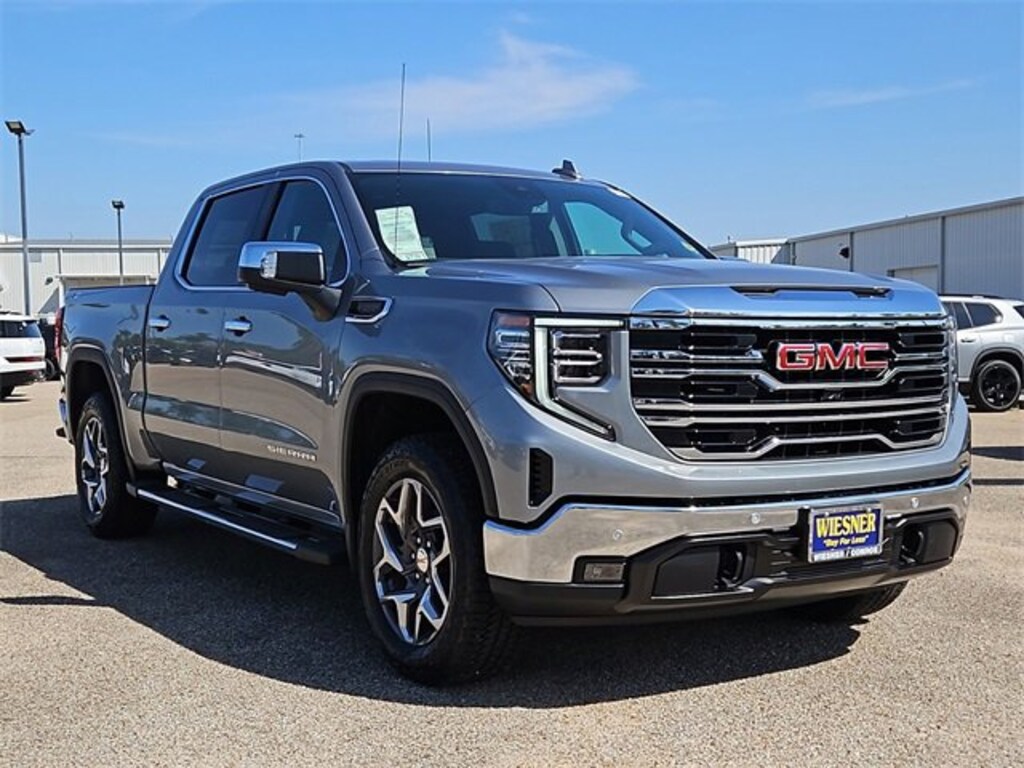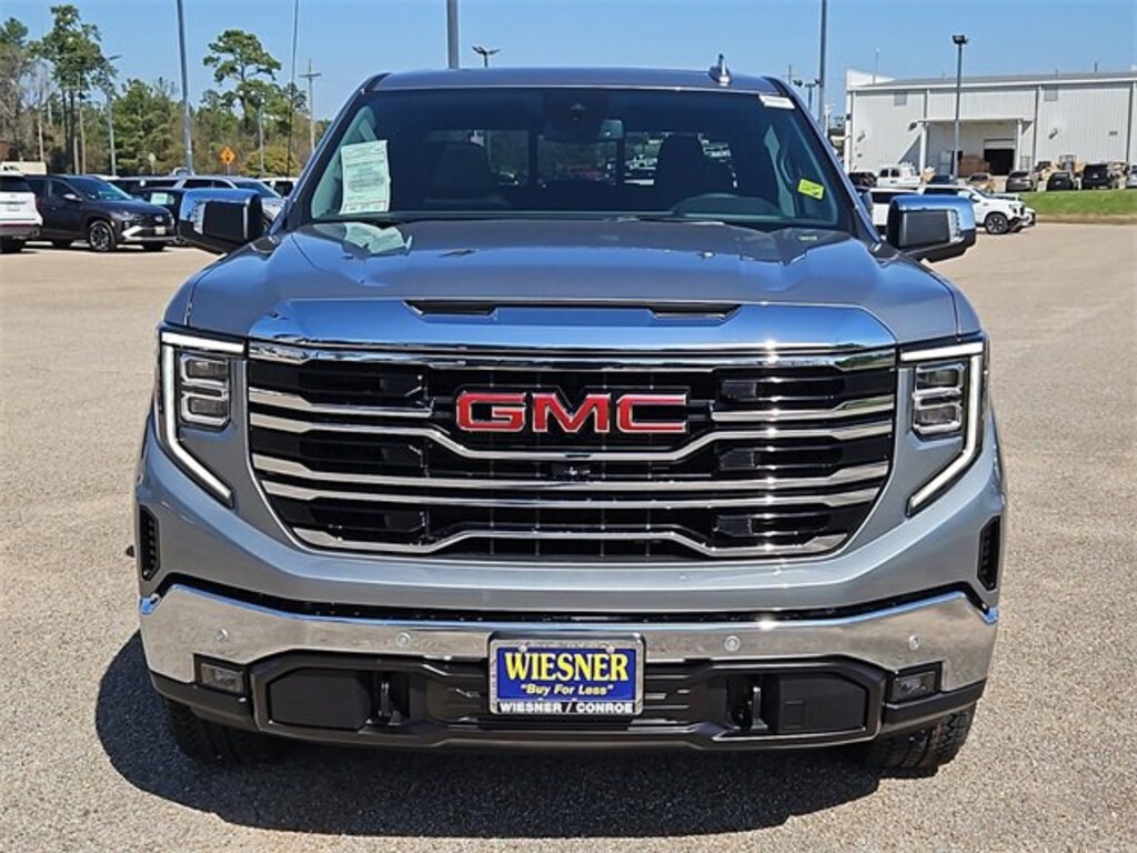 This 2025 GMC Sierra 1500 SLT in Sterling Metallic comes with the following features: EcoTec3 6.2L V8 10-Speed Automatic 4WD 10-Speed Automatic, 4WD, and Jet Black Leather High Capacity Suspension Package, Preferred Equipment Group 4SA (120-Volt Bed Mounted Power Outlet, 120-Volt Interior Power Outlet, 170 Amp Alternator, 2 Charge/Data USB Ports, 2 Type-C Charge-Only Rear USB Ports, 6-Speaker Audio System Feature, Auto-Locking Rear Differential, Auxiliary External Transmission Oil Cooler, Chrome Header & Chrome Grille Insert Bars, Color-Keyed Carpeting Floor Covering, Deep-Tinted Glass, Electric Rear-Window Defogger, Front Frame-Mounted Black Recovery Hooks, Front Rain-Sensing Wipers, HD Rear Vision Camera, Integrated Trailer Brake Controller, Keyless Open & Start, LED Cargo Area Lighting, Manual Tilt-Wheel & Telescoping Steering Column, OnStar Services Capable, Perimeter Lighting, Power Door Locks, Power Front Passenger Windows w/Express Up/Down, Power Front Windows w/Driver Express Up/Down, Power Rear Windows w/Express Down, Push Button Start, Rear Wheelhouse Liners, Remote Vehicle Starter System, SiriusXM w/360L Trial Subscription, Steering Wheel Audio Controls, Theft Deterrent System (Unauthorized Entry), and Wi-Fi Hotspot Capable), ProGrade Trailering System (Hitch View and In-Vehicle Trailering System App), Sierra Safety Plus Package (HD Surround Vision, Rear Cross Traffic Braking, Rear Pedestrian Detection, Safety Alert Seat, Trailer Camera Provisions, Trailer Side Blind Zone Alert, and Ultrasonic Front & Rear Park Assist), SLT Convenience Package (2 Charge/Data USB Ports Inside Center Console, Electronic Precision Shift, Floor-Mounted Center Console, Front Bucket Seats, Power Rake & Telescoping Steering Column, Premium Bose 7-Speaker Sound System, Ventilated Driver & Front Passenger Seats, and Wireless Charging), SLT Preferred Package (Adaptive Cruise Control, Heated 2nd Row Outboard Seats, Power Sliding Rear Window w/Rear Defogger, and Universal Home Remote), Standard Suspension Package, Texas Edition SLT Premium Plus Package (20 Polished Aluminum Wheels, Chrome Wheel To Wheel Assist Steps, Spray-On Pickup Bedliner w/GMC Logo, and Texas Edition Badging), Trailering Package (Hitch Guidance), X31 Off-Road Package (Dual Exhaust System, Heavy-Duty Air Filter, Hill Descent Control, Off-Road Suspension, and X31 Hard Badge), 10-Speed Automatic, 4WD, Jet Black Leather, 10-Way Power Driver Seat Adjuster w/Lumbar, 10-Way Power Passenger Seat Adjuster w/Lumbar, 3.23 Rear Axle Ratio, 4-Wheel Disc Brakes, 6 Speakers, ABS brakes, Air Conditioning, Alloy wheels, AM/FM radio: SiriusXM with 360L, Apple CarPlay/Android Auto, Auto High-beam Headlights, Auto-dimming door mirrors, Auto-dimming Rear-View mirror, Automatic Emergency Braking, Automatic temperature control, Brake assist, Buckle to Drive, Bumpers: chrome, Compass, Delay-off headlights, Driver door bin, Driver Memory, Driver vanity mirror, Dual Active Exhaust, Dual front impact airbags, Dual front side impact airbags, Electronic Stability Control, Emergency communication system: OnStar, Following Distance Indicator, Forward Collision Alert, Front 40/20/40 Split-Bench Seat, Front anti-roll bar, Front Center Armrest w/Storage, Front dual zone A/C, Front fog lights, Front License Plate Kit, Front Pedestrian Braking, Front reading lights, Front wheel independent suspension, Fully automatic headlights, Heated door mirrors, Heated Driver & Front Outboard Passenger Seating, Heated front seats, Heated steering wheel, Illuminated entry, IntelliBeam Automatic High Beam On/Off, Lane Keep Assist w/Lane Departure Warning, Low tire pressure warning, Memory seat, Navigation System, Occupant sensing airbag, Outside temperature display, Overhead airbag, Overhead console, Panic alarm, Passenger door bin, Passenger vanity mirror, Perf Leather-Appointed Front Outboard Seat Trim, Power door mirrors, Power driver seat, Power passenger seat, Power steering, Power Sunroof, Power windows, Radio da