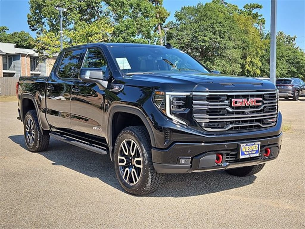 This 2025 GMC Sierra 1500 AT4 in Onyx Black comes with the following features: 3.0L I6 10-Speed Automatic 4WD 10-Speed Automatic, 4WD, and Jet Black With Kalahari Accents Leather AT4 Preferred Package (Power Sliding Rear Window w/Rear Defogger and Universal Home Remote), AT4 Premium Package (Off-Road High Clearance Step (LPO)), Preferred Equipment Group 4SB (120-Volt Bed Mounted Power Outlet, 120-Volt Interior Power Outlet, 2 Charge/Data USB Ports Inside Center Console, 2 Type-C Charge-Only Rear USB Ports, 2 USB Ports, 220 Amp Alternator, Auto-Locking Rear Differential, Black Chrome Grille Insert Bars, Color-Keyed Carpeting Floor Covering, Deep-Tinted Glass, Electric Rear-Window Defogger, Floor-Mounted Center Console, Front Prem Floor Liners w/Removable Carpet Insert, Front Rain-Sensing Wipers, HD Surround Vision, Heated 2nd Row Outboard Seats, Heated Driver & Front Outboard Passenger Seating, Heavy-Duty Air Filter, Hill Descent Control, Hitch View, In-Vehicle Trailering System App, Integrated Trailer Brake Controller, Keyless Open & Start, LED Cargo Area Lighting, OnStar Services Capable, Perimeter Lighting, Power Door Locks, Power Front Passenger Windows w/Express Up/Down, Power Front Windows w/Driver Express Up/Down, Power Rake & Telescoping Steering Column, Power Rear Windows w/Express Down, Premium Bose 7-Speaker Sound System, Push Button Start, Rear Cross Traffic Braking, Rear Pedestrian Detection, Rear Prem Floor Liners w/Removable Carpet Insert, Rear Wheelhouse Liners, Red Recovery Hooks, Remote Vehicle Starter System, SiriusXM w/360L Trial Subscription, Spray-On Pickup Bedliner w/GMC Logo, Steering Wheel Audio Controls, Theft Deterrent System (Unauthorized Entry), Trailer Camera Provisions, Trailer Side Blind Zone Alert, Ultrasonic Front & Rear Park Assist, Ventilated Driver & Front Passenger Seats, Wi-Fi Hotspot Capable, and Wireless Charging), Technology Package (Bed View Camera, Multicolor 15 Diagonal Head-Up Display, and Rear Camera Mirror), Trailering Package (Hitch Guidance), 10-Speed Automatic, 4WD, Jet Black With Kalahari Accents Leather, 10-Way Power Driver Seat Adjuster w/Lumbar, 10-Way Power Passenger Seat Adjuster w/Lumbar, 3.23 Rear Axle Ratio, 4-Wheel Disc Brakes, 7 Speakers, ABS brakes, Air Conditioning, Alloy wheels, AM/FM radio: SiriusXM with 360L, Apple CarPlay/Android Auto, Auto High-beam Headlights, Auto-dimming door mirrors, Auto-dimming Rear-View mirror, Automatic Emergency Braking, Automatic temperature control, Block heater, Brake assist, Buckle to Drive, Bumpers: body-color, Compass, Delay-off headlights, Driver door bin, Driver Memory, Driver vanity mirror, Dual front impact airbags, Dual front side impact airbags, Electronic Stability Control, Emergency communication system: OnStar, Engine Block Heater, Following Distance Indicator, Forward Collision Alert, Front anti-roll bar, Front Bucket Seats, Front Center Armrest, Front dual zone A/C, Front fog lights, Front License Plate Kit, Front Pedestrian Braking, Front reading lights, Front wheel independent suspension, Fully automatic headlights, Heated door mirrors, Heated front seats, Heated rear seats, Heated steering wheel, Illuminated entry, IntelliBeam Automatic High Beam On/Off, Lane Keep Assist w/Lane Departure Warning, Low tire pressure warning, Memory seat, Navigation System, Occupant sensing airbag, Off-Road Suspension, Outside temperature display, Overhead airbag, Overhead console, Panic alarm, Passenger door bin, Passenger vanity mirror, Perforated Front Leather Seat Trim, Power door mirrors, Power driver seat, Power passenger seat, Power steering, Power Sunroof, Power windows, Radio data system, Radio: Premium GMC Infotainment Audio System, Rain sensing wipers, Rear reading lights, Rear seat center armrest, Rear step bumper, Rea Price includes: $2750 - Buick & GMC Consumer Cash Program. Exp. 09/30/2025