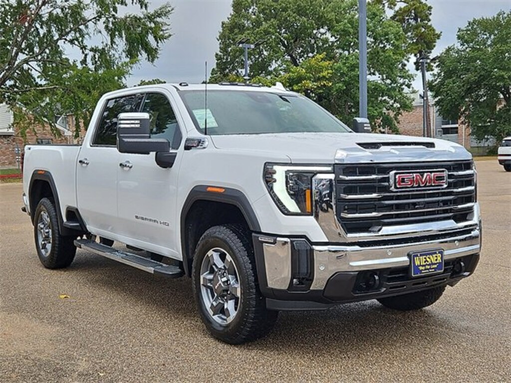 This 2025 GMC Sierra 2500HD SLT in Summit White comes with the following features: Duramax 6.6L V8 Turbodiesel 10-Speed Automatic 4WD 10-Speed Automatic, 4WD, and Black Leather Gooseneck/5th Wheel Prep Package (Spray-On Pickup Bedliner w/GMC Logo), Max Trailering Package, Preferred Equipment Group 4SA (120-Volt Bed Mounted Power Outlet, 120-Volt Instrument Panel Power Outlet, 2 Charge-Only Rear USB Ports, 2 Charge/Data USB Ports, 2-Speed Active Transfer Case, 6-Speaker Audio System Feature, Chrome Surround Grille w/Chrome Insert Bars, Deep-Tinted Glass, Electric Rear-Window Defogger, Front Rain-Sensing Wipers, Heated Driver & Front Outboard Passenger Seats, Keyless Open & Start, LED Cargo Area Lighting, Manual Tilt-Wheel/Telescoping Steering Column, OnStar Services Capable, Power Front Passenger Windows w/Express Up/Down, Push Button Start, Rear Wheelhouse Liners, Remote Vehicle Starter System, SiriusXM w/360L Trial Subscription, Steering Wheel Audio Controls, Unauthorized Entry Theft-Deterrent System, and Wireless Phone Projection), Sierra HD Pro Safety Plus Package (Bed View Camera w/2 Trailer Camera Provisions, HD Rear Vision Camera Delete, HD Surround Vision, Rear Cross Traffic Alert, Safety Alert Seat, Trailer Cam Provisions & Trailer Viewing Software, Trailer Side Blind Zone Alert, and Ultrasonic Front & Rear Park Assist), SLT Convenience Package (2 Charge/Data USB Ports Inside Center Console, Bose Premium 7-Speaker Sound System, Floor-Mounted Center Console, Front Bucket Seats, LED Smoked Amber Roof Marker Lamps, Ventilated Driver & Front Passenger Seats, and Wireless Charging), SLT Preferred Package (Adaptive Cruise Control, Heated 2nd Row Outboard Seats, Power Sliding Rear Window w/Defogger, and Universal Home Remote), Suspension Package, Texas SLT Premium Package (6 Rectangular Chromed Tubular Assist Steps and Texas Edition Badging), X31 Off-Road & Protection Package (All-Weather Floor Liners (LPO) and Wheels: 20 Bright Face w/Dark Painted Pockets), X31 Off-Road Package (Hill Descent Control and Off-Road Suspension), 10-Speed Automatic, 4WD, Black Leather, 10-Way Power Driver Seat Adjuster w/Lumbar, 10-Way Power Passenger Seat Adjuster w/Lumbar, 18 Machined Aluminum Wheels, 220-Amp Alternator, 4-Wheel Disc Brakes, 6 Speakers, ABS brakes, Air Conditioning, Alloy wheels, AM/FM radio: SiriusXM with 360L, Apple CarPlay/Android Auto, Auto High-beam Headlights, Auto-dimming door mirrors, Auto-dimming Rear-View mirror, Automatic Emergency Braking, Automatic temperature control, Brake assist, Buckle to Drive, Bumpers: chrome, Compass, Delay-off headlights, Driver door bin, Driver Memory, Driver vanity mirror, Dual front impact airbags, Dual front side impact airbags, Electronic Stability Control, Emergency communication system: OnStar, Engine Block Heater, Exhaust Brake, Following Distance Indicator, Forward Collision Alert, Front 40/20/40 Split-Bench Seats, Front anti-roll bar, Front Center Armrest w/Storage, Front dual zone A/C, Front fog lights, Front License Plate Kit, Front Pedestrian Braking, Front reading lights, Front wheel independent suspension, Fully automatic headlights, Heated door mirrors, Heated front seats, Heated steering wheel, Heavy-Duty 80 Amp Battery, High Idle Switch, Hitch Guidance w/Hitch View, Illuminated entry, In-Vehicle Trailering System App, IntelliBeam Automatic High Beam On/Off, Lane Departure Warning System, Low tire pressure warning, Memory seat, Occupant sensing airbag, Outside temperature display, Overhead airbag, Overhead console, Panic alarm, Passenger door bin, Passenger vanity mirror, Perf Leather-Appointed Front Outboard Seat Trim, Pickup Box, Power door mirrors, Power driver seat, Power passenger seat, Power steering, Power Sunroof, Power windows, Radio: AM/FM w/Premium GMC Infotainment System, Rain sensing wipers, Price includes: $1000 - Buick & GMC Consumer Cash Program. Exp. 09/30/2025