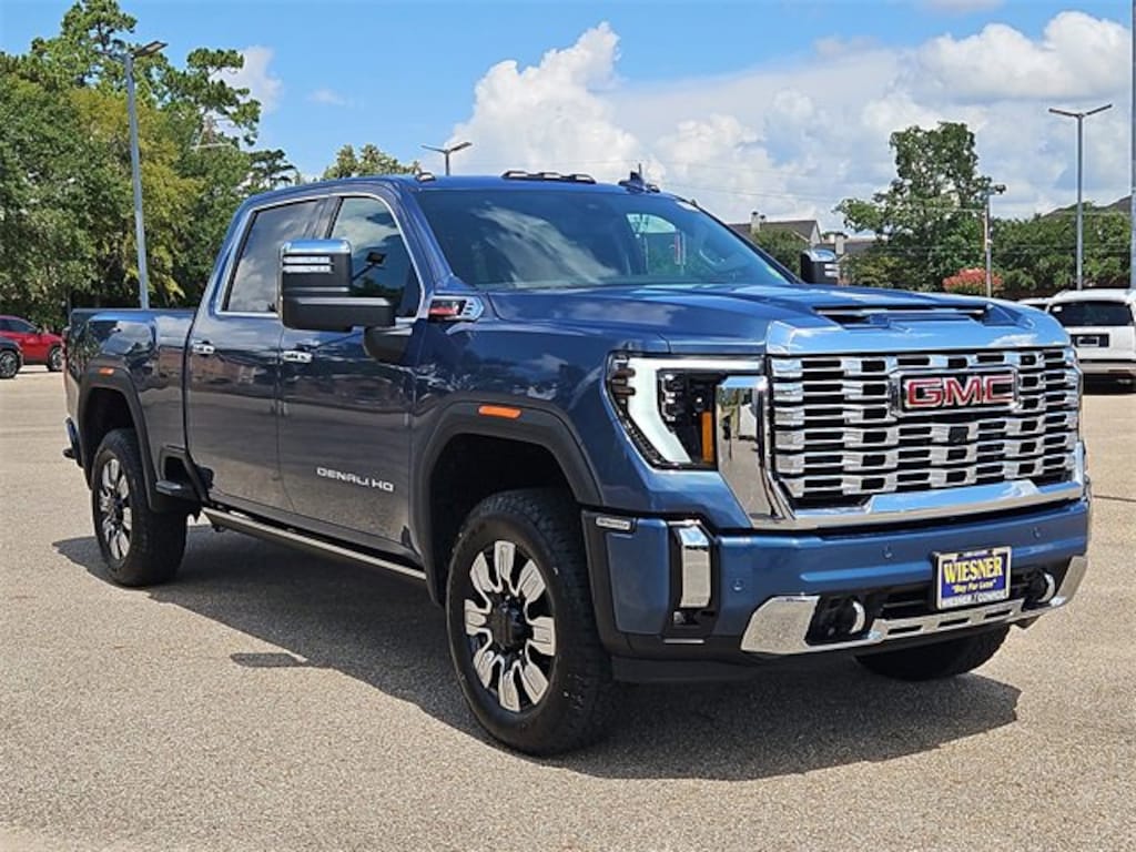 This 2025 GMC Sierra 2500HD Denali in Downpour Metallic comes with the following features: Duramax 6.6L V8 Turbodiesel 10-Speed Automatic 4WD 10-Speed Automatic, 4WD, and Black Leather Denali Reserve Package (Power Sunroof), Gooseneck/5th Wheel Prep Package, Max Trailering Package, Preferred Equipment Group 5SA (120-Volt Bed Mounted Power Outlet, 120-Volt Instrument Panel Power Outlet, 2 Charge-Only Rear USB Ports, 2 Charge/Data USB Ports Inside Center Console, 2 USB Ports, 2-Speed Active Transfer Case, Bed View Camera w/2 Trailer Camera Provisions, Bose Premium 7-Speaker Sound System, Deep-Tinted Glass, Electric Rear-Window Defogger, Floor-Mounted Center Console, Front Rain-Sensing Wipers, HD Surround Vision, Heated 2nd Row Outboard Seats, Heated Driver & Front Outboard Passenger Seats, Keyless Open & Start, LED Cargo Area Lighting, LED Smoked Amber Roof Marker Lamps, Manual Tilt-Wheel/Telescoping Steering Column, OnStar Services Capable, Polished Exhaust Tip, Power Front Passenger Windows w/Express Up/Down, Power Sliding Rear Window w/Defogger, Push Button Start, Rear Cross Traffic Alert, Rear Wheelhouse Liners, Remote Vehicle Starter System, Safety Alert Seat, Signature Chrome Denali Grille, SiriusXM w/360L Trial Subscription, Spray-On Pickup Bedliner w/GMC Logo, Steering Wheel Audio Controls, Trailer Cam Provisions & Trailer Viewing Software, Trailer Side Blind Zone Alert, Ultrasonic Front & Rear Park Assist, Unauthorized Entry Theft-Deterrent System, Universal Home Remote, Ventilated Driver & Front Passenger Seats, Wireless Charging, and Wireless Phone Projection), Technology Package (Inside Rearview Auto-Dimming Rear Camera Mirror and Multicolor 15 Diagonal Head-Up Display), X31 Off-Road Package (Hill Descent Control), 10-Speed Automatic, 4WD, Black Leather, 12-Way Power Driver Seat Adjuster w/Lumbar, 12-Way Power Passenger Seat Adjuster w/Lumbar, 220-Amp Alternator, 4-Wheel Disc Brakes, 7 Speakers, ABS brakes, Air Conditioning, Alloy wheels, AM/FM radio: SiriusXM with 360L, Apple CarPlay/Android Auto, Auto High-beam Headlights, Auto-dimming door mirrors, Auto-dimming Rear-View mirror, Automatic Emergency Braking, Automatic temperature control, Brake assist, Buckle to Drive, Bumpers: body-color, Compass, Delay-off headlights, Driver door bin, Driver Memory, Driver vanity mirror, Dual front impact airbags, Dual front side impact airbags, Electronic Stability Control, Emergency communication system: OnStar, Engine Block Heater, Exhaust Brake, Following Distance Indicator, Forge Perforated Leather-Appointed Front Seat Trim, Forward Collision Alert, Front anti-roll bar, Front Bucket Seats, Front Center Armrest, Front dual zone A/C, Front fog lights, Front License Plate Kit, Front Pedestrian Braking, Front reading lights, Front wheel independent suspension, Fully automatic headlights, Garage door transmitter, Genuine wood dashboard insert, Genuine wood door panel insert, Heated door mirrors, Heated front seats, Heated rear seats, Heated steering wheel, Heavy-Duty 80 Amp Battery, High Idle Switch, Hitch Guidance w/Hitch View, Illuminated entry, In-Vehicle Trailering System App, IntelliBeam Automatic High Beam On/Off, Lane Departure Warning System, Low tire pressure warning, Memory seat, Occupant sensing airbag, Off-Road Suspension, Outside temperature display, Overhead airbag, Overhead console, Panic alarm, Passenger door bin, Passenger vanity mirror, Pickup Box, Power door mirrors, Power driver seat, Power passenger seat, Power steering, Power windows, Power-Retractable Assist Steps, Radio: AM/FM w/Premium GMC Infotainment System, Rain sensing wipers, Rear reading lights, Rear seat center armrest, Rear step bumper, Rear window defroster, Remote keyless entry, Security system, Speed control, Speed-sensing steering, Split Price includes: $1000 - Buick & GMC Consumer Cash Program. Exp. 11/03/2025