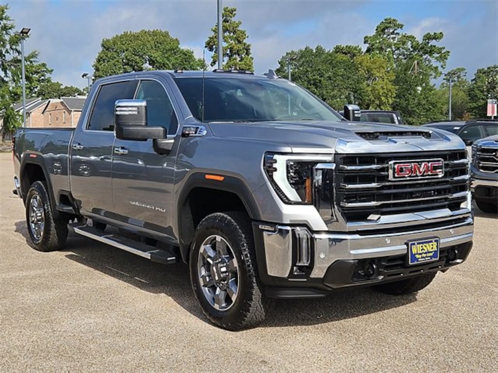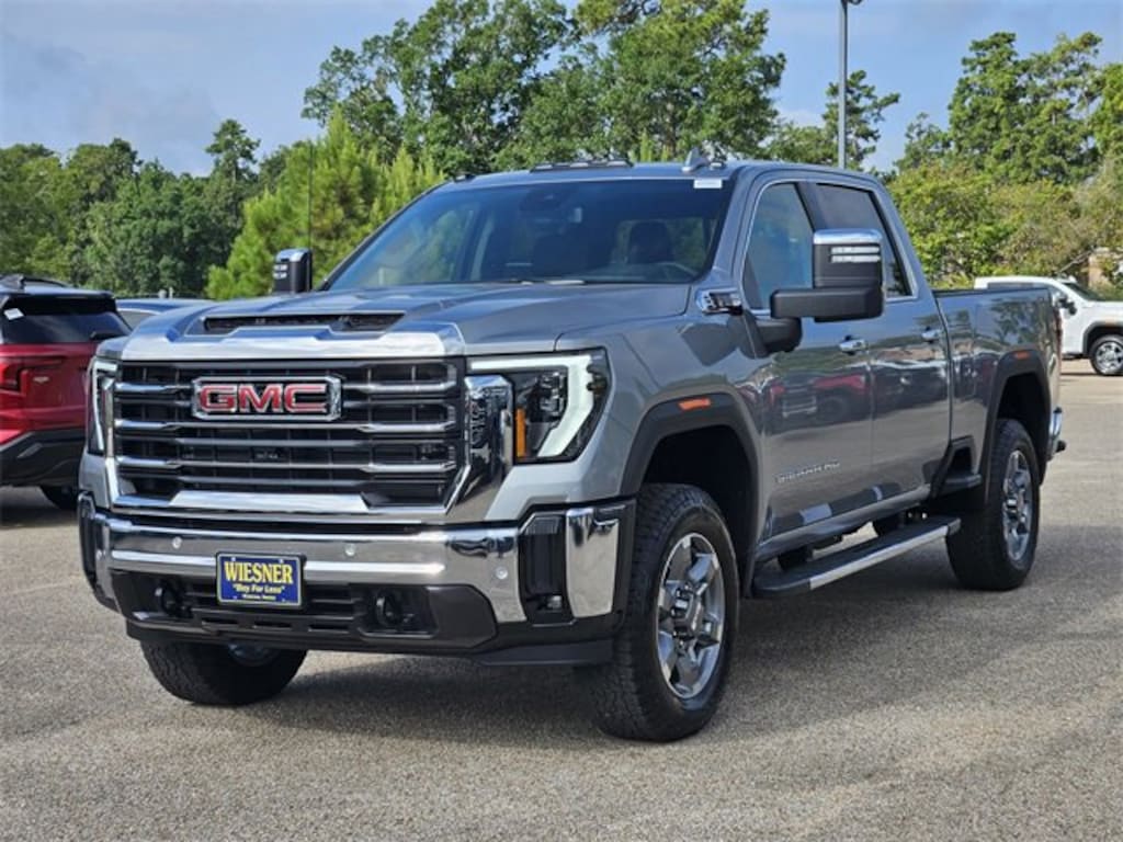 This 2025 GMC Sierra 2500HD SLT in Sterling Metallic comes with the following features: Duramax 6.6L V8 Turbodiesel 10-Speed Automatic 4WD 10-Speed Automatic, 4WD, and Black Leather Gooseneck/5th Wheel Prep Package (Spray-On Pickup Bedliner w/GMC Logo), Max Trailering Package, Preferred Equipment Group 4SA (120-Volt Bed Mounted Power Outlet, 120-Volt Instrument Panel Power Outlet, 2 Charge-Only Rear USB Ports, 2 Charge/Data USB Ports, 2-Speed Active Transfer Case, 6-Speaker Audio System Feature, Chrome Surround Grille w/Chrome Insert Bars, Deep-Tinted Glass, Electric Rear-Window Defogger, Front Rain-Sensing Wipers, Heated Driver & Front Outboard Passenger Seats, Keyless Open & Start, LED Cargo Area Lighting, Manual Tilt-Wheel/Telescoping Steering Column, OnStar Services Capable, Power Front Passenger Windows w/Express Up/Down, Push Button Start, Rear Wheelhouse Liners, Remote Vehicle Starter System, SiriusXM w/360L Trial Subscription, Steering Wheel Audio Controls, Unauthorized Entry Theft-Deterrent System, and Wireless Phone Projection), Sierra HD Pro Safety Plus Package (Bed View Camera w/2 Trailer Camera Provisions, HD Rear Vision Camera Delete, HD Surround Vision, Rear Cross Traffic Alert, Safety Alert Seat, Trailer Cam Provisions & Trailer Viewing Software, Trailer Side Blind Zone Alert, and Ultrasonic Front & Rear Park Assist), SLT Convenience Package (2 Charge/Data USB Ports Inside Center Console, Bose Premium 7-Speaker Sound System, Floor-Mounted Center Console, Front Bucket Seats, LED Smoked Amber Roof Marker Lamps, Ventilated Driver & Front Passenger Seats, and Wireless Charging), SLT Preferred Package (Adaptive Cruise Control, Heated 2nd Row Outboard Seats, Power Sliding Rear Window w/Defogger, and Universal Home Remote), Suspension Package, Texas SLT Premium Package (6 Rectangular Chromed Tubular Assist Steps and Texas Edition Badging), X31 Off-Road & Protection Package (All-Weather Floor Liners (LPO) and Wheels: 20 Bright Face w/Dark Painted Pockets), X31 Off-Road Package (Hill Descent Control and Off-Road Suspension), 10-Speed Automatic, 4WD, Black Leather, 10-Way Power Driver Seat Adjuster w/Lumbar, 10-Way Power Passenger Seat Adjuster w/Lumbar, 18 Machined Aluminum Wheels, 220-Amp Alternator, 4-Wheel Disc Brakes, 6 Speakers, ABS brakes, Air Conditioning, Alloy wheels, AM/FM radio: SiriusXM with 360L, Apple CarPlay/Android Auto, Auto High-beam Headlights, Auto-dimming door mirrors, Auto-dimming Rear-View mirror, Automatic Emergency Braking, Automatic temperature control, Brake assist, Buckle to Drive, Bumpers: chrome, Compass, Delay-off headlights, Driver door bin, Driver Memory, Driver vanity mirror, Dual front impact airbags, Dual front side impact airbags, Electronic Stability Control, Emergency communication system: OnStar, Engine Block Heater, Exhaust Brake, Following Distance Indicator, Forward Collision Alert, Front 40/20/40 Split-Bench Seats, Front anti-roll bar, Front Center Armrest w/Storage, Front dual zone A/C, Front fog lights, Front License Plate Kit, Front Pedestrian Braking, Front reading lights, Front wheel independent suspension, Fully automatic headlights, Heated door mirrors, Heated front seats, Heated steering wheel, Heavy-Duty 80 Amp Battery, High Idle Switch, Hitch Guidance w/Hitch View, Illuminated entry, In-Vehicle Trailering System App, IntelliBeam Automatic High Beam On/Off, Lane Departure Warning System, Low tire pressure warning, Memory seat, Occupant sensing airbag, Outside temperature display, Overhead airbag, Overhead console, Panic alarm, Passenger door bin, Passenger vanity mirror, Perf Leather-Appointed Front Outboard Seat Trim, Pickup Box, Power door mirrors, Power driver seat, Power passenger seat, Power steering, Power Sunroof, Power windows, Radio: AM/FM w/Premium GMC Infotainment System, Rain sensing wip Price includes: $1000 - Buick & GMC Consumer Cash Program. Exp. 11/03/2025