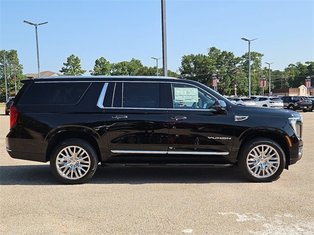 This 2025 GMC Yukon XL in Onyx Black comes with the following features: EcoTec3 5.3L V8 10-Speed Automatic with Overdrive 4WD 4WD License Plate Front Mounting Package, Preferred Equipment Group 4SA, 4WD, 10 Speakers, 3.23 Rear Axle Ratio, 3rd row seats: split-bench, 4-Wheel Disc Brakes, ABS brakes, Air Conditioning, Alloy wheels, AM/FM radio: SiriusXM with 360L, Apple CarPlay/Android Auto, Audio memory, Auto High-beam Headlights, Auto-dimming door mirrors, Auto-dimming Rear-View mirror, Automatic temperature control, Bodyside moldings, Bose 10-Speaker Surround w/CenterPoint, Brake assist, Bumpers: body-color, Compass, CoreTec/Perforated Leather-Appointed Seating, Delay-off headlights, Driver door bin, Driver vanity mirror, Dual front impact airbags, Dual front side impact airbags, Electronic Stability Control, Emergency communication system: OnStar and GMC connected services capable, Exterior Parking Camera Rear, Floor Console, Four wheel independent suspension, Front anti-roll bar, Front Bucket Seats, Front Center Armrest, Front dual zone A/C, Front fog lights, Front reading lights, Fully automatic headlights, Garage door transmitter, Heated door mirrors, Heated Driver & Front Passenger Seats, Heated front seats, Heated rear seats, Heated steering wheel, Illuminated entry, Low tire pressure warning, Memory seat, Navigation system: GMC Connected Navigation, Occupant sensing airbag, Outside temperature display, Overhead airbag, Overhead console, Panic alarm, Passenger door bin, Passenger vanity mirror, Power door mirrors, Power driver seat, Power Liftgate, Power passenger seat, Power Release 2nd Row Bucket Seats, Power steering, Power windows, Premium Smooth Ride Suspension, Radio: 16.8 Diagonal Premium GMC Infotainment Sys, Rain sensing wipers, Rear air conditioning, Rear anti-roll bar, Rear reading lights, Rear seat center armrest, Rear window defroster, Rear window wiper, Remote keyless entry, Security system, SiriusXM w/360L, Speed control, Speed-sensing steering, Split folding rear seat, Spoiler, Steering wheel mounted audio controls, Tachometer, Telescoping steering wheel, Tilt steering wheel, Traction control, Trip computer, Turn signal indicator mirrors, Variably intermittent wipers, Voltmeter, Wheel Locks (Set of 4) (LPO), Wheels: 20 x 9 Machined & Painted, and Wheels: 22 x 9 Polished Aluminum.