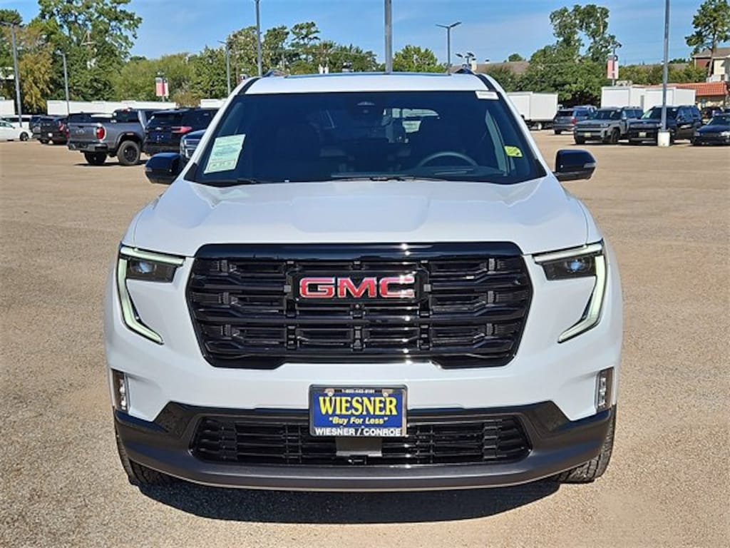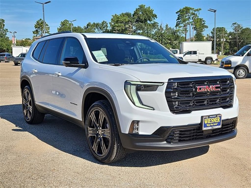 This 2026 GMC Acadia Elevation in Glacier White Tricoat comes with the following features: 2.5L DOHC 8-Speed Automatic FWD FWD and After Dark Cloth Black Edition (Front & Rear Black GMC Emblems (LPO), Gloss Black Roof Rails, High Gloss Black Door Upper Molding, and Wheels: 22 x 8.5 Gloss Black Aluminum), Elevation Premium Package (3-Channel Programmable Universal Home Remote, 6-Way Power Front Passenger Seat Adjuster, 7-Passenger Seating (2-2-3 Seating Configuration), CoreTec Seat Trim, and Front Passenger Power Lumbar Seat Adjuster), Luxury Package (8 Diagonal Head-Up Display, Heated Rear Outboard Seating Positions, Heated Wiper Park, and Laminated Acoustic Glass), Preferred Equipment Group 4SC, FWD, After Dark Cloth, 12 Speakers, 18 x 7.5 Aluminum Wheels, 2-Way Driver Power Lumbar Seat Adjuster, 3.49 Final Drive Axle Ratio, 3rd row seats: split-bench, 4-Way Manual Front Passenger Seat Adjuster, 4-Wheel Disc Brakes, 8-Passenger Seating (2-3-3 Seating Configuration), 8-Way Power Driver Seat Adjuster, ABS brakes, Air Conditioning, Alloy wheels, AM/FM radio: SiriusXM with 360L, Apple CarPlay/Android Auto, Auto High-beam Headlights, Automatic temperature control, Bodyside moldings, Bose Premium 12-Speaker System w/Sub-Woofer, Brake assist, Bumpers: body-color, Cloth Seat Trim, Compass, Delay-off headlights, Driver door bin, Driver vanity mirror, Dual front impact airbags, Dual front side impact airbags, Electronic Stability Control, Emergency communication system: OnStar Services capable, Exterior Parking Camera Rear, Four wheel independent suspension, Front anti-roll bar, Front Bucket Seats, Front Center Armrest, Front dual zone A/C, Front fog lights, Front License Plate Bracket, Front reading lights, Fully automatic headlights, Heated door mirrors, Heated Driver & Front Passenger Seats, Heated front seats, Heated steering wheel, Illuminated entry, Leather steering wheel, Low tire pressure warning, Navigation System, Occupant sensing airbag, Outside temperature display, Overhead airbag, Overhead console, Panic alarm, Panoramic Power Sunroof w/Sunshade, Passenger door bin, Passenger vanity mirror, Performance Suspension, Power door mirrors, Power driver seat, Power Liftgate, Power steering, Power windows, Radio data system, Radio: 15 Premium GMC Infotainment System, Rear air conditioning, Rear anti-roll bar, Rear reading lights, Rear seat center armrest, Rear side impact airbag, Rear window defroster, Rear window wiper, Remote keyless entry, Security system, SiriusXM w/360L, Speed control, Speed-sensing steering, Split folding rear seat, Spoiler, Sport steering wheel, Steering wheel mounted audio controls, Tachometer, Telescoping steering wheel, Tilt steering wheel, Traction control, Trip computer, Turn signal indicator mirrors, Variably intermittent wipers, and Voltmeter. 20/27 City/Highway MPG