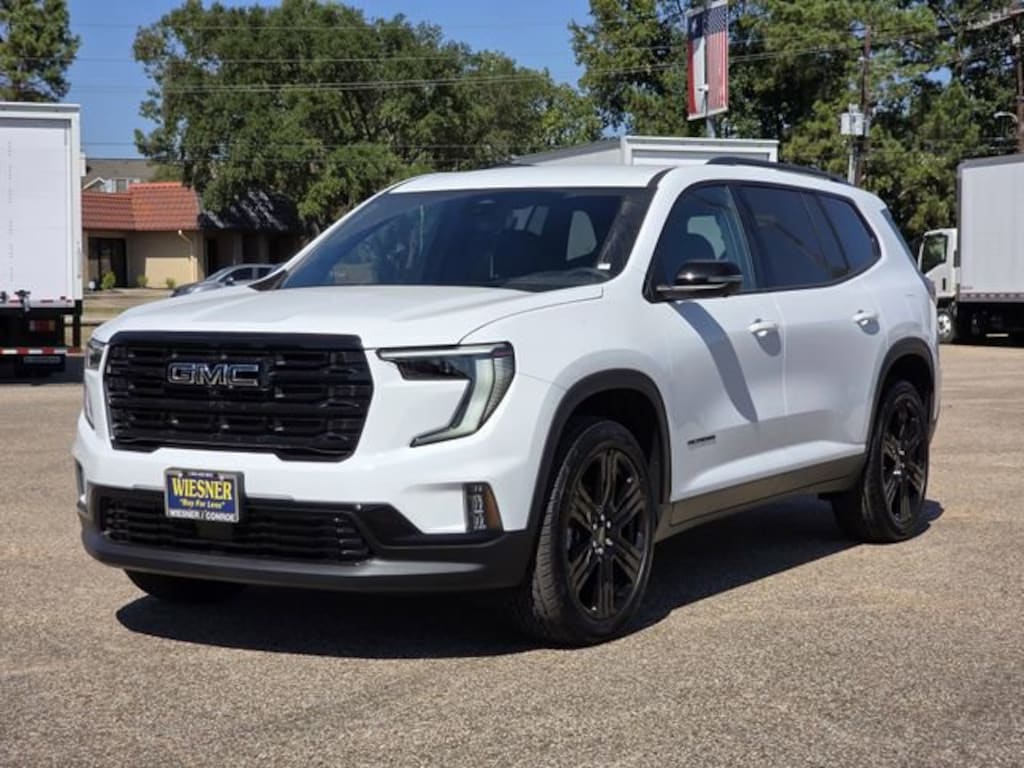 This 2026 GMC Acadia Elevation in Summit White comes with the following features: 2.5L DOHC 8-Speed Automatic FWD FWD and After Dark Cloth Black Edition (Front and Rear Black GMC Emblems, Gloss Black Roof Rails, High Gloss Black Door Upper Moldings, and Wheels: 22 x 8.5 Gloss Black Aluminum), Elevation Premium Package (3-Channel Programmable Universal Home Remote, 6-Way Power Front Passenger Seat Adjuster, 7-Passenger Seating (2-2-3 Seating Configuration), CoreTec Seat Trim, and Front Passenger Power Lumbar Seat Adjuster), Luxury Package (8 Diagonal Head-Up Display, Heated Rear Outboard Seating Positions, Heated Wiper Park, and Laminated Acoustic Glass), Preferred Equipment Group 4SC, FWD, After Dark Cloth, 12 Speakers, 18 x 7.5 Aluminum Wheels, 3.49 Final Drive Axle Ratio, 3rd row seats: split-bench, 4-Way Manual Front Passenger Seat Adjuster, 4-Wheel Disc Brakes, 8-Passenger Seating (2-3-3 Seating Configuration), 8-Way Power Driver Seat Adjuster, ABS brakes, Air Conditioning, Alloy wheels, AM/FM radio: SiriusXM with 360L, Apple CarPlay/Android Auto, Auto High-beam Headlights, Automatic temperature control, Bodyside moldings, Bose Premium 12-Speaker System with Sub-Woofer, Brake assist, Bumpers: body-color, Cloth Seat Trim, Compass, Delay-off headlights, Driver 2-Way Power Lumbar Seat Adjuster, Driver door bin, Driver vanity mirror, Dual front impact airbags, Dual front side impact airbags, Electronic Stability Control, Emergency communication system: OnStar Services capable, Exterior Parking Camera Rear, Four wheel independent suspension, Front anti-roll bar, Front Bucket Seats, Front Center Armrest, Front dual zone A/C, Front fog lights, Front License Plate Bracket, Front reading lights, Fully automatic headlights, Heated door mirrors, Heated Driver and Front Passenger Seats, Heated front seats, Heated steering wheel, Illuminated entry, Leather steering wheel, Low tire pressure warning, Navigation System, Occupant sensing airbag, Outside temperature display, Overhead airbag, Overhead console, Panic alarm, Passenger door bin, Passenger vanity mirror, Performance Suspension, Power door mirrors, Power driver seat, Power Liftgate, Power steering, Power windows, Radio data system, Radio: 15 Diagonal Premium GMC Infotainment System, Rear air conditioning, Rear anti-roll bar, Rear reading lights, Rear seat center armrest, Rear side impact airbag, Rear window defroster, Rear window wiper, Remote keyless entry, Security system, SiriusXM with 360L, Speed control, Speed-sensing steering, Split folding rear seat, Spoiler, Sport steering wheel, Steering wheel mounted audio controls, Tachometer, Telescoping steering wheel, Tilt steering wheel, Traction control, Trip computer, Turn signal indicator mirrors, Variably intermittent wipers, and Voltmeter. 20/26 City/Highway MPG