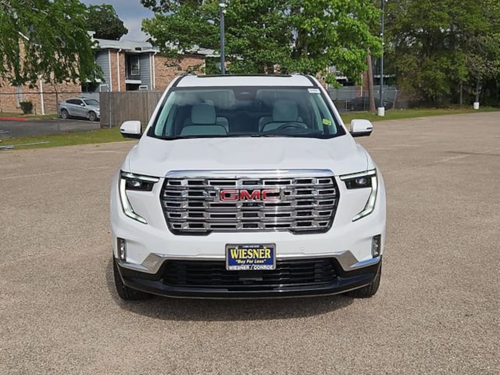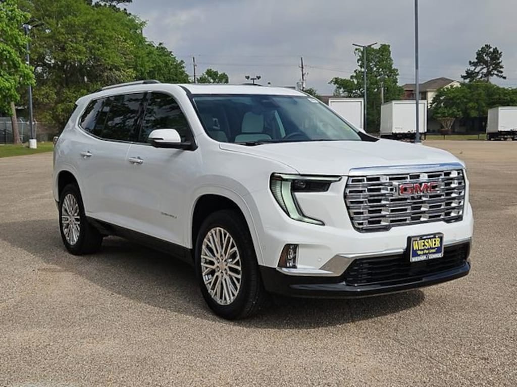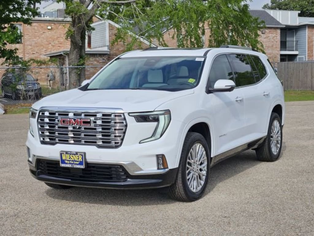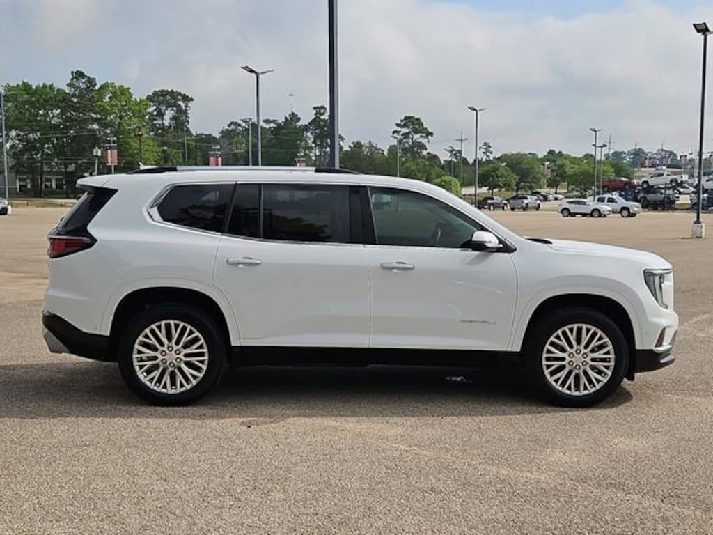 This 2026 GMC Acadia Denali in Summit White comes with the following features: 2.5L DOHC 8-Speed Automatic AWD AWD and Sheer/Very Dk Atmosphere Leather Memory Package, Preferred Equipment Group 5SB, Super Cruise Package (3 Years of OnStar One, Driver Attention Assist, Enhanced Automatic Parking Assist, and Super Cruise), AWD, Sheer/Very Dk Atmosphere Leather, 12 Speakers, 3.49 Final Drive Axle Ratio, 3rd Row 60/40 Power Split-Folding Bench, 3rd row seats: split-bench, 4-Wheel Disc Brakes, 6-Way Power Front Passenger Seat Adjuster, 7-Passenger Seating (2-2-3 Seating Configuration), 8-Way Power Driver Seat Adjuster, ABS brakes, Air Conditioning, Alloy wheels, AM/FM radio: SiriusXM with 360L, Apple CarPlay/Android Auto, Auto High-beam Headlights, Auto-dimming door mirrors, Auto-dimming Rear-View mirror, Automatic temperature control, Bodyside moldings, Bose Premium 12-Speaker System w/Sub-Woofer, Brake assist, Bumpers: body-color, Compass, Delay-off headlights, Deleted Mobile Service Plus, Driver 4-Way Power Lumbar Seat Adjuster, Driver door bin, Driver vanity mirror, Dual front impact airbags, Dual front side impact airbags, Electronic Stability Control, Emergency communication system: OnStar Services capable, Exterior Parking Camera Rear, Four wheel independent suspension, Front anti-roll bar, Front Bucket Seats, Front Center Armrest, Front dual zone A/C, Front fog lights, Front License Plate Bracket, Front Passenger 4-Way Power Lumbar Seat Adjuster, Front reading lights, Fully automatic headlights, Garage door transmitter, Genuine wood console insert, Genuine wood dashboard insert, Genuine wood door panel insert, Heads-Up Display, Heated & Ventilated Driver & Front Passenger Seats, Heated door mirrors, Heated Driver & Front Passenger Seats, Heated front seats, Heated rear seats, Heated steering wheel, Illuminated entry, Leather steering wheel, Low tire pressure warning, Memory seat, Navigation System, Occupant sensing airbag, Outside temperature display, Overhead airbag, Overhead console, Panic alarm, Panoramic Power Sunroof w/Sunshade, Passenger door bin, Passenger vanity mirror, Perforated Leather-Appointed Seat Trim, Power door mirrors, Power driver seat, Power Liftgate, Power passenger seat, Power steering, Power windows, Radio data system, Radio: 15 Premium GMC Infotainment System, Rain sensing wipers, Rear air conditioning, Rear anti-roll bar, Rear reading lights, Rear side impact airbag, Rear window defroster, Rear window wiper, Remote keyless entry, Security system, SiriusXM w/360L, Speed control, Speed-sensing steering, Split folding rear seat, Spoiler, Sport steering wheel, Steering wheel memory, Steering wheel mounted audio controls, Tachometer, Telescoping steering wheel, Tilt steering wheel, Traction control, Trip computer, Turn signal indicator mirrors, Variably intermittent wipers, Ventilated front seats, Voltmeter, and Wheels: 20 x 8 Pearl Nickel Machined Aluminum.