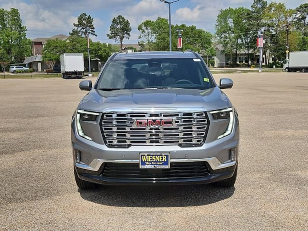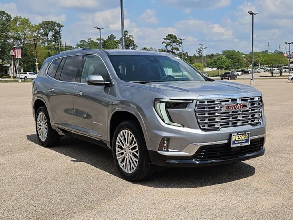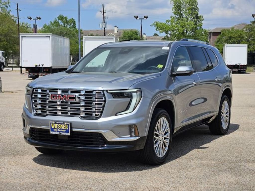 This 2026 GMC Acadia Denali in Sterling Metallic comes with the following features: 2.5L DOHC 8-Speed Automatic FWD FWD and After Dk Perforated Lth-A Leather Floor Liner Package (1st and 2nd Row All-Weather Floor Liner, 3rd Row All-Weather Floor Liner, and Integrated Cargo Liner), Memory Package, Preferred Equipment Group 5SA, Super Cruise Package (3 Years of OnStar One, Driver Attention Assist, Enhanced Automatic Parking Assist, and Super Cruise), FWD, After Dk Perforated Lth-A Leather, 12 Speakers, 3.49 Final Drive Axle Ratio, 3rd Row 60/40 Power Split-Folding Bench, 3rd row seats: split-bench, 4-Wheel Disc Brakes, 6-Way Power Front Passenger Seat Adjuster, 7-Passenger Seating (2-2-3 Seating Configuration), 8-Way Power Driver Seat Adjuster, ABS brakes, Air Conditioning, Alloy wheels, AM/FM radio: SiriusXM with 360L, Apple CarPlay/Android Auto, Auto High-beam Headlights, Auto-dimming door mirrors, Auto-dimming Rear-View mirror, Automatic temperature control, Bodyside moldings, Bose Premium 12-Speaker System with Sub-Woofer, Brake assist, Bumpers: body-color, Compass, Delay-off headlights, Driver 4-Way Power Lumbar Seat Adjuster, Driver door bin, Driver vanity mirror, Dual front impact airbags, Dual front side impact airbags, Electronic Stability Control, Emergency communication system: OnStar Services capable, Exterior Parking Camera Rear, Four wheel independent suspension, Front anti-roll bar, Front Bucket Seats, Front Center Armrest, Front dual zone A/C, Front fog lights, Front Passenger 4-Way Power Lumbar Seat Adjuster, Front reading lights, Fully automatic headlights, Garage door transmitter, Genuine wood console insert, Genuine wood dashboard insert, Genuine wood door panel insert, Heads-Up Display, Heated and Ventilated Driver and Front Passenger Seats, Heated door mirrors, Heated Driver and Front Passenger Seats, Heated front seats, Heated rear seats, Heated steering wheel, Illuminated entry, Leather steering wheel, Low tire pressure warning, Memory seat, Navigation System, Occupant sensing airbag, Outside temperature display, Overhead airbag, Overhead console, Panic alarm, Panoramic Power Sunroof with Sunshade, Passenger door bin, Passenger vanity mirror, Perforated Leather-Appointed Seat Trim, Power door mirrors, Power driver seat, Power Liftgate, Power passenger seat, Power steering, Power windows, Radio data system, Radio: 15 Diagonal Premium GMC Infotainment System, Rain sensing wipers, Rear air conditioning, Rear anti-roll bar, Rear reading lights, Rear side impact airbag, Rear window defroster, Rear window wiper, Remote keyless entry, Security system, SiriusXM with 360L, Speed control, Speed-sensing steering, Split folding rear seat, Spoiler, Sport steering wheel, Steering wheel memory, Steering wheel mounted audio controls, Tachometer, Telescoping steering wheel, Tilt steering wheel, Traction control, Trip computer, Turn signal indicator mirrors, Variably intermittent wipers, Ventilated front seats, Voltmeter, and Wheels: 20 x 8 Pearl Nickel Machined Aluminum. 20/26 City/Highway MPG