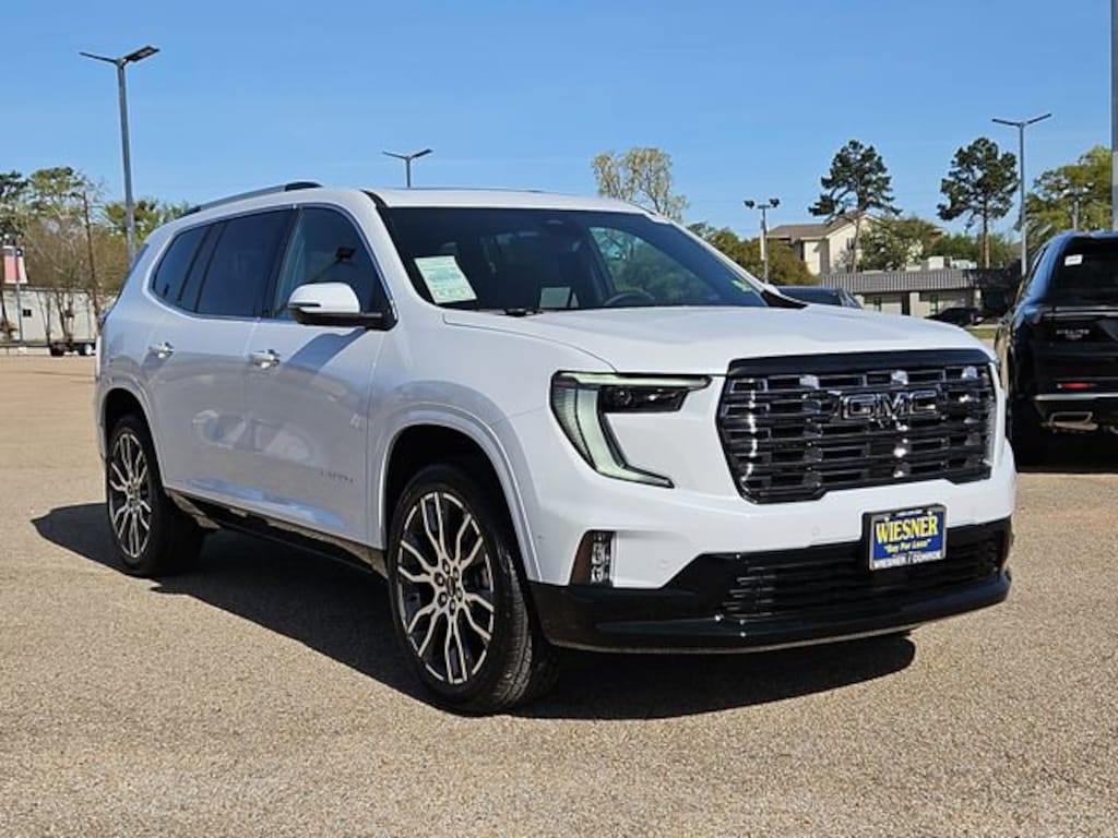 This 2026 GMC Acadia Denali Ultimate in Glacier White Tricoat comes with the following features: 2.5L DOHC 8-Speed Automatic FWD FWD and Woodland Mahogany Full Lt Leather Memory Package, FWD, Woodland Mahogany Full Lt Leather, 16 Speakers, 3.49 Final Drive Axle Ratio, 3rd Row 60/40 Power Split-Folding Bench, 3rd row seats: split-bench, 4-Wheel Disc Brakes, 6-Way Power Front Passenger Seat Adjuster, 7-Passenger Seating (2-2-3 Seating Configuration), 8-Way Power Driver Seat Adjuster, ABS brakes, Air Conditioning, Alloy wheels, AM/FM radio: SiriusXM with 360L, Apple CarPlay/Android Auto, Auto High-beam Headlights, Auto-dimming door mirrors, Automatic temperature control, Bodyside moldings, Bose Performance 16-Speaker System with Sub-Woofer, Brake assist, Bumpers: body-color, Compass, Delay-off headlights, Driver 4-Way Power Lumbar Seat Adjuster, Driver door bin, Driver Power Massage Seat, Driver vanity mirror, Dual front impact airbags, Dual front side impact airbags, Electronic Stability Control, Emergency communication system: OnStar Services capable, Exterior Parking Camera Rear, Four wheel independent suspension, Front anti-roll bar, Front Bucket Seats, Front Center Armrest, Front dual zone A/C, Front fog lights, Front Passenger 4-Way Power Lumbar Seat Adjuster, Front Passenger Power Massage Seat, Front reading lights, Full Leather Seat Trim, Fully automatic headlights, Garage door transmitter, Genuine wood console insert, Genuine wood dashboard insert, Genuine wood door panel insert, Heads-Up Display, Heated and Ventilated Driver and Front Passenger Seats, Heated door mirrors, Heated Driver and Front Passenger Seats, Heated front seats, Heated rear seats, Heated steering wheel, Illuminated entry, Leather steering wheel, Low tire pressure warning, Memory seat, Navigation System, Occupant sensing airbag, Outside temperature display, Overhead airbag, Overhead console, Panic alarm, Passenger door bin, Passenger vanity mirror, Power door mirrors, Power driver seat, Power Liftgate, Power moonroof, Power passenger seat, Power steering, Power windows, Radio data system, Radio: 15 Diagonal Premium GMC Infotainment System, Rain sensing wipers, Rear air conditioning, Rear anti-roll bar, Rear reading lights, Rear side impact airbag, Rear window defroster, Rear window wiper, Remote keyless entry, Security system, SiriusXM with 360L, Speed control, Speed-sensing steering, Split folding rear seat, Spoiler, Sport steering wheel, Steering wheel memory, Steering wheel mounted audio controls, Tachometer, Telescoping steering wheel, Tilt steering wheel, Traction control, Trip computer, Turn signal indicator mirrors, Variably intermittent wipers, Ventilated front seats, Voltmeter, and Wheels: 22 x 8.5 After Midnight Machined Aluminum. 20/26 City/Highway MPG
