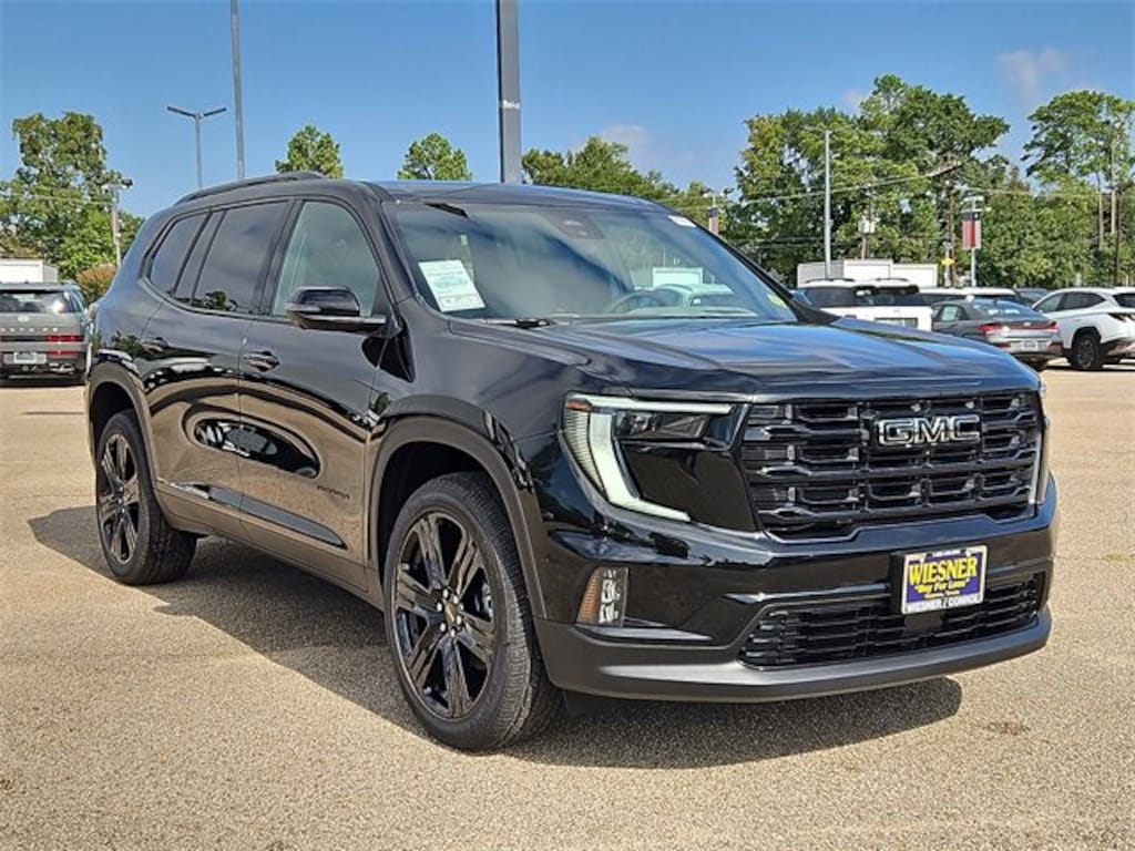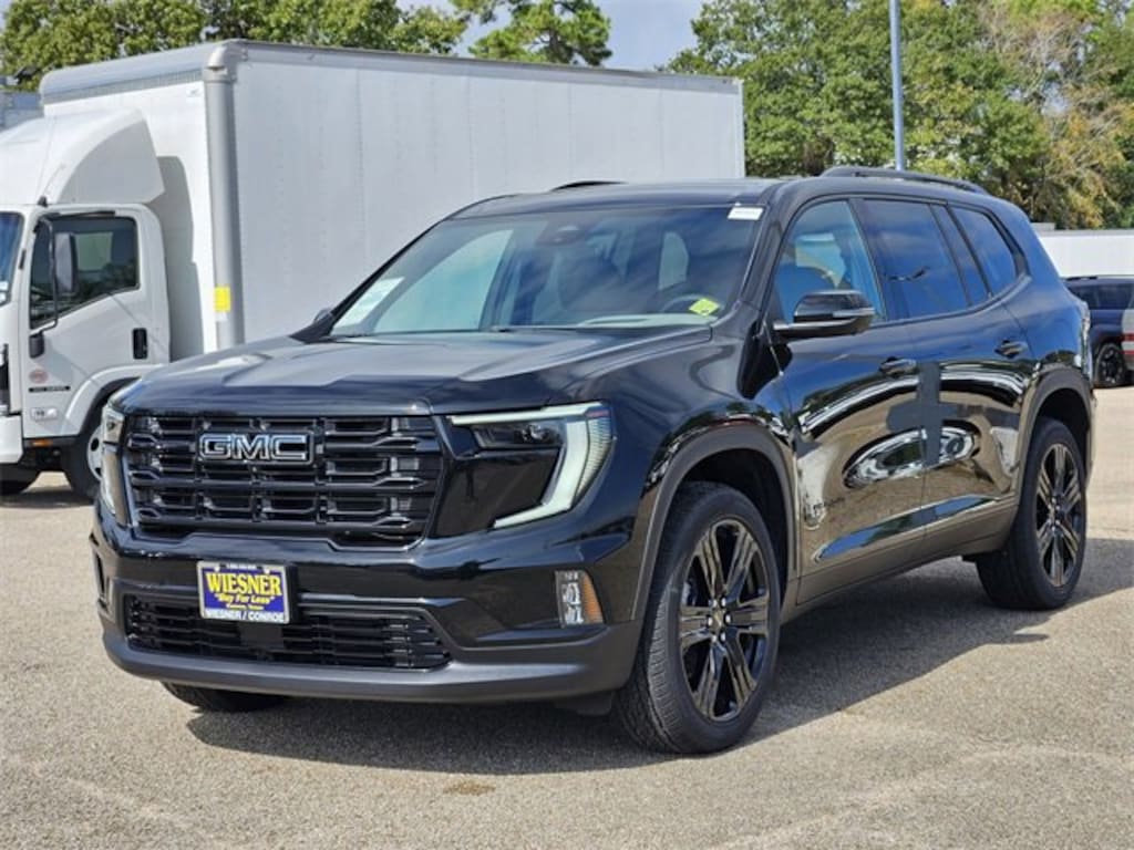 This 2026 GMC Acadia Elevation in Ebony Twilight Metallic comes with the following features: 2.5L DOHC 8-Speed Automatic FWD FWD and Gideon Gry Coretec Cloth Black Edition (Front & Rear Black GMC Emblems (LPO), Gloss Black Roof Rails, High Gloss Black Door Upper Moldings, and Wheels: 22 x 8.5 Gloss Black Aluminum), Elevation Premium Package (3-Channel Programmable Universal Home Remote, 6-Way Power Front Passenger Seat Adjuster, 7-Passenger Seating (2-2-3 Seating Configuration), CoreTec Seat Trim, and Front Passenger Power Lumbar Seat Adjuster), Luxury Package (8 Diagonal Head-Up Display, Heated Rear Outboard Seating Positions, Heated Wiper Park, and Laminated Acoustic Glass), Preferred Equipment Group 4SC, FWD, Gideon Gry Coretec Cloth, 12 Speakers, 18 x 7.5 Aluminum Wheels, 3.49 Final Drive Axle Ratio, 3rd row seats: split-bench, 4-Way Manual Front Passenger Seat Adjuster, 4-Wheel Disc Brakes, 8-Passenger Seating (2-3-3 Seating Configuration), 8-Way Power Driver Seat Adjuster, ABS brakes, Air Conditioning, Alloy wheels, AM/FM radio: SiriusXM with 360L, Apple CarPlay/Android Auto, Auto High-beam Headlights, Automatic temperature control, Bodyside moldings, Bose Premium 12-Speaker System w/Sub-Woofer, Brake assist, Bumpers: body-color, Cloth Seat Trim, Compass, Delay-off headlights, Driver 2-Way Power Lumbar Seat Adjuster, Driver door bin, Driver vanity mirror, Dual front impact airbags, Dual front side impact airbags, Electronic Stability Control, Emergency communication system: OnStar Services capable, Exterior Parking Camera Rear, Four wheel independent suspension, Front anti-roll bar, Front Bucket Seats, Front Center Armrest, Front dual zone A/C, Front fog lights, Front reading lights, Fully automatic headlights, Heated door mirrors, Heated Driver & Front Passenger Seats, Heated front seats, Heated steering wheel, Illuminated entry, Leather steering wheel, Low tire pressure warning, Navigation System, Occupant sensing airbag, Outside temperature display, Overhead airbag, Overhead console, Panic alarm, Passenger door bin, Passenger vanity mirror, Performance Suspension, Power door mirrors, Power driver seat, Power Liftgate, Power steering, Power windows, Radio data system, Radio: 15 Premium GMC Infotainment System, Rear air conditioning, Rear anti-roll bar, Rear reading lights, Rear seat center armrest, Rear side impact airbag, Rear window defroster, Rear window wiper, Remote keyless entry, Security system, SiriusXM w/360L, Speed control, Speed-sensing steering, Split folding rear seat, Spoiler, Sport steering wheel, Steering wheel mounted audio controls, Tachometer, Telescoping steering wheel, Tilt steering wheel, Traction control, Trip computer, Turn signal indicator mirrors, Variably intermittent wipers, and Voltmeter. 20/26 City/Highway MPG