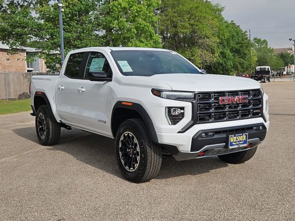 This 2026 GMC Canyon AT4 in Summit White comes with the following features: 2.7L I4 Turbocharged DOHC 16V LEV3-SULEV30 310hp 8-Speed Automatic 4WD 4WD AT4 Premium Package (6-Way Power Passenger Seat Adjuster, Driver and Front Passenger Ventilated Seats, Driver Memory, Driver Seatback Map Pocket, Heated Steering Wheel, Perforated Leather-Appointed Seat Trim, Power Passenger Lumbar Control Seat Adjuster, Rear Center Fold-Down Armrest with 2 Cupholders, and Wireless Phone Charging), Canyon Safety Plus Package (Blind Zone Steering Assist with Trailering, Rear Cross Traffic Braking, and Ultrasonic Rear Park Assist), Preferred Equipment Group 4SG (120-Volt Bed Mounted Power Outlet, 2 Rear USB Ports in Center Console (Charge-Only), 8-Way Power Driver Seat Adjuster, Automatic Emergency Braking, Canyon Pro Safety, Driver and Front Passenger Illuminated Visors, Dual-Zone Automatic Climate Control Air Conditioning, EZ-Lift and Lower Tailgate, Following Distance Indicator, Forward Collision Alert, Front LED Fog Lamps, Front Pedestrian and Bicyclist Braking, Heated Driver and Front Passenger Seats, Inside Rear-View Auto-Dimming Mirror, IntelliBeam Automatic High Beam on/Off, Interior Overhead Courtesy Light with Dual Reading Lamp, Lane Keep Assist with Lane Departure Warning, MultiStow Tailgate Storage Compartment, Power Driver Lumbar Control Seat Adjuster, Rear of Console 120-Volt Power Outlet, Remote Vehicle Starter System, Tailgate Keyed Cylinder Lock, and Til and Telescopic Manual Steering Column), Technology Plus Package (Adaptive Cruise Control, HD Surround Vision, Laminated Windshield Acoustic Glass, Multicolor 6.3 Diagonal Head-Up Display, Power Inner Sliding Glass Sunroof with Manual Shade, Premium 7-Speaker Bose Sound System, and Rear Pedestrian Alert), 4WD, 2 1st Row USB Charge/Data Ports, 3.42 Rear Axle Ratio, 4-Way Manual Front Passenger Seat Adjuster, 4-Wheel Disc Brakes, 6 Speakers, 6-Speaker Audio System Feature, ABS brakes, Air Conditioning, Alloy wheels, AM/FM radio: SiriusXM with 360L, Apple CarPlay/Android Auto, Auto High-beam Headlights, Auto-dimming Rear-View mirror, Automatic Stop/Start, Automatic temperature control, Brake assist, Bumpers: body-color, Cloth/CoreTec Seat Trim, Compass, Delay-off headlights, Driver door bin, Driver Mode Selector, Driver vanity mirror, Dual front impact airbags, Dual front side impact airbags, Electronic Stability Control, Emergency communication system: OnStar, Front anti-roll bar, Front Bucket Seats, Front Center Armrest, Front dual zone A/C, Front fog lights, Front License Plate Kit, Front Passenger Seatback Map Pocket, Front reading lights, Front wheel independent suspension, Heated door mirrors, Heated front seats, Illuminated entry, Low tire pressure warning, Navigation System, Occupant sensing airbag, Off-Road Suspension, Outside temperature display, Overhead airbag, Overhead console, Panic alarm, Passenger door bin, Passenger vanity mirror, Power door mirrors, Power driver seat, Power steering, Power windows, Radio data system, Radio: 11.3 Diagonal Premium GMC Infotainment System, Rear reading lights, Rear step bumper, Rear window defroster, Remote keyless entry, Security system, SiriusXM with 360L, Speed control, Speed-sensing steering, Split folding rear seat, Spray-on Bedliner with GMC Logo, Steering wheel mounted audio controls, Stop/Start System Disable Button Engine Control, Tachometer, Telescoping steering wheel, Tilt steering wheel, Traction control, Trip computer, Variably intermittent wipers, Wheels: 18 x 8.5 Gloss Black Aluminum, and Wireless Apple CarPlay/Wireless Android Auto.