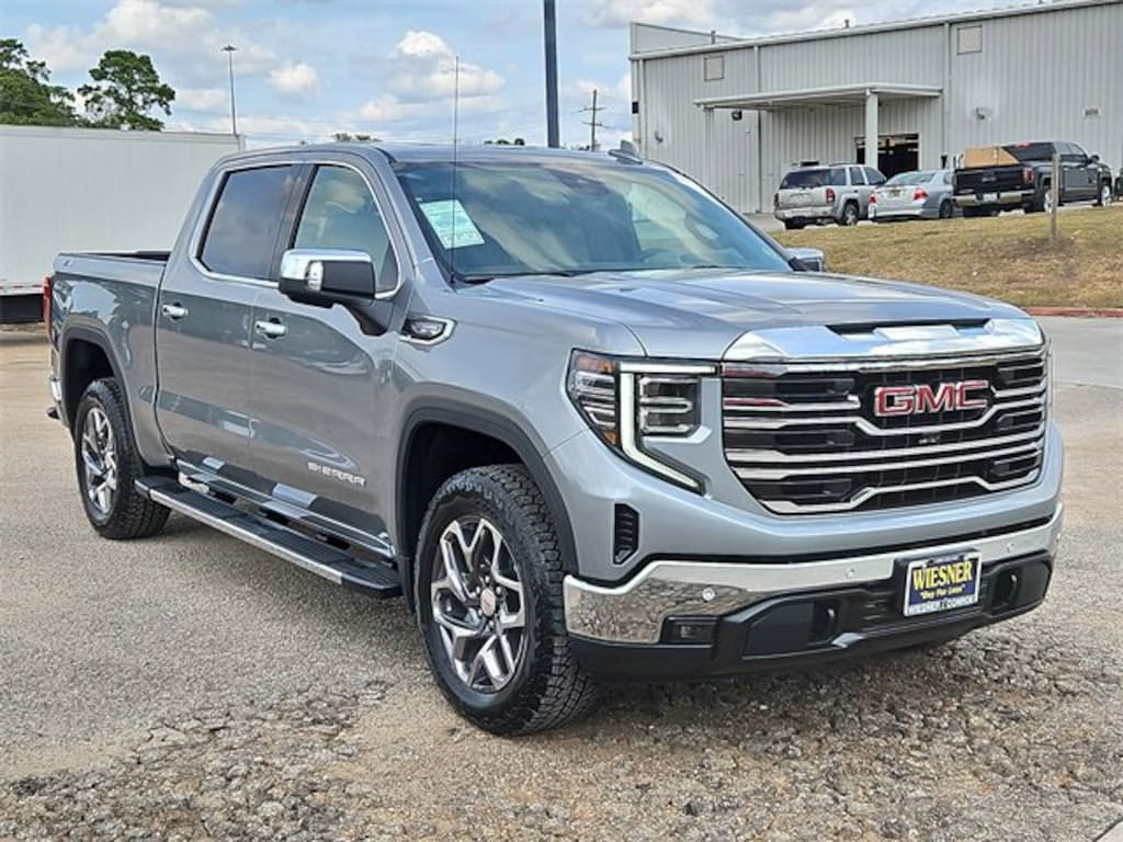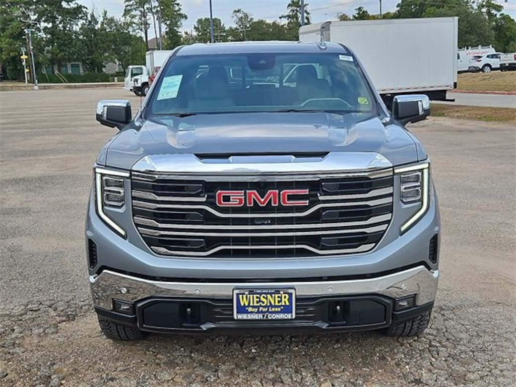 This 2026 GMC Sierra 1500 SLT in Sterling Metallic comes with the following features: EcoTec3 5.3L V8 10-Speed Automatic 4WD 10-Speed Automatic, 4WD, and Dk Walnut/Slate Perforate Leather High Capacity Suspension Package, Preferred Equipment Group 4SA (120-Volt Bed Mounted Power Outlet, 120-Volt Interior Power Outlet, 170 Amp Alternator, 2 Charge/Data USB Ports, 2 Type-C Charge-Only Rear USB Ports, 6-Speaker Audio System Feature, Auto-Locking Rear Differential, Auxiliary External Transmission Oil Cooler, Chrome Header & Chrome Grille Insert Bars, Color-Keyed Carpeting Floor Covering, Deep-Tinted Glass, Electric Rear-Window Defogger, Front Frame-Mounted Black Recovery Hooks, Front Rain-Sensing Wipers, HD Rear Vision Camera, Integrated Trailer Brake Controller, Keyless Open & Start, LED Cargo Area Lighting, Manual Tilt-Wheel & Telescoping Steering Column, OnStar Services Capable, Perimeter Lighting, Power Door Locks, Power Front Passenger Windows w/Express Up/Down, Power Front Windows w/Driver Express Up/Down, Power Rear Windows w/Express Down, Push Button Start, Rear Wheelhouse Liners, Remote Vehicle Starter System, SiriusXM w/360L Trial Subscription, Steering Wheel Audio Controls, Theft Deterrent System (Unauthorized Entry), and Wi-Fi Hotspot Capable), ProGrade Trailering System (Hitch View and In-Vehicle Trailering System App), Sierra Safety Plus Package (HD Surround Vision, Rear Cross Traffic Braking, Rear Pedestrian Detection, Safety Alert Seat, Trailer Camera Provisions, Trailer Side Blind Zone Alert, and Ultrasonic Front & Rear Park Assist), SLT Convenience Package (2 Charge/Data USB Ports Inside Center Console, Electronic Precision Shift, Floor-Mounted Center Console, Front Bucket Seats, Power Rake & Telescoping Steering Column, Premium Bose 7-Speaker Sound System, Ventilated Driver & Front Passenger Seats, and Wireless Charging), SLT Preferred Package (Adaptive Cruise Control, Heated 2nd Row Outboard Seats, Power Sliding Rear Window w/Rear Defogger, and Universal Home Remote), Standard Suspension Package, Texas Edition SLT Premium Plus Package (20 Polished Aluminum Wheels, Chrome Wheel To Wheel Assist Steps, Spray-On Pickup Bedliner w/GMC Logo, and Texas Edition Badging), Trailering Package (Hitch Guidance), X31 Off-Road Package (Dual Exhaust System, Heavy-Duty Air Filter, Hill Descent Control, Off-Road Suspension, and X31 Hard Badge), 10-Speed Automatic, 4WD, Dk Walnut/Slate Perforate Leather, 10-Way Power Driver Seat Adjuster w/Lumbar, 10-Way Power Passenger Seat Adjuster w/Lumbar, 3.23 Rear Axle Ratio, 4-Wheel Disc Brakes, 6 Speakers, ABS brakes, Air Conditioning, Alloy wheels, AM/FM radio: SiriusXM with 360L, Apple CarPlay/Android Auto, Auto High-beam Headlights, Auto-dimming door mirrors, Auto-dimming Rear-View mirror, Automatic Emergency Braking, Automatic temperature control, Brake assist, Buckle to Drive, Bumpers: chrome, Compass, Delay-off headlights, Driver door bin, Driver Memory, Driver vanity mirror, Dual front impact airbags, Dual front side impact airbags, Electronic Stability Control, Emergency communication system: OnStar, Following Distance Indicator, Forward Collision Alert, Front 40/20/40 Split-Bench Seat, Front anti-roll bar, Front Center Armrest w/Storage, Front dual zone A/C, Front fog lights, Front License Plate Kit, Front Pedestrian Braking, Front reading lights, Front wheel independent suspension, Fully automatic headlights, Heated door mirrors, Heated Driver & Front Outboard Passenger Seating, Heated front seats, Heated steering wheel, Illuminated entry, IntelliBeam Automatic High Beam On/Off, Lane Keep Assist w/Lane Departure Warning, Low tire pressure warning, Memory seat, Navigation System, Occupant sensing airbag, Outside temperature display, Overhead airbag, Overhead console, Panic a Price includes: $1500 - GM Bonus Cash. Exp. 12/01/2025 $1750 - Buick & GMC Consumer Cash Program. Exp. 12/01/2025