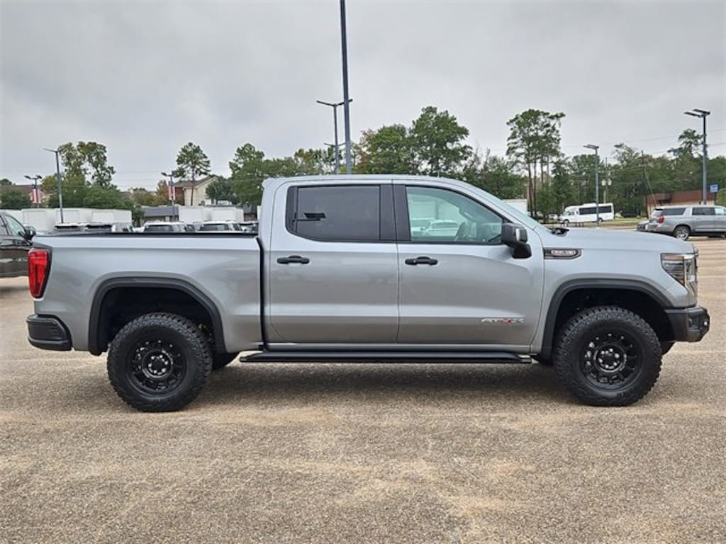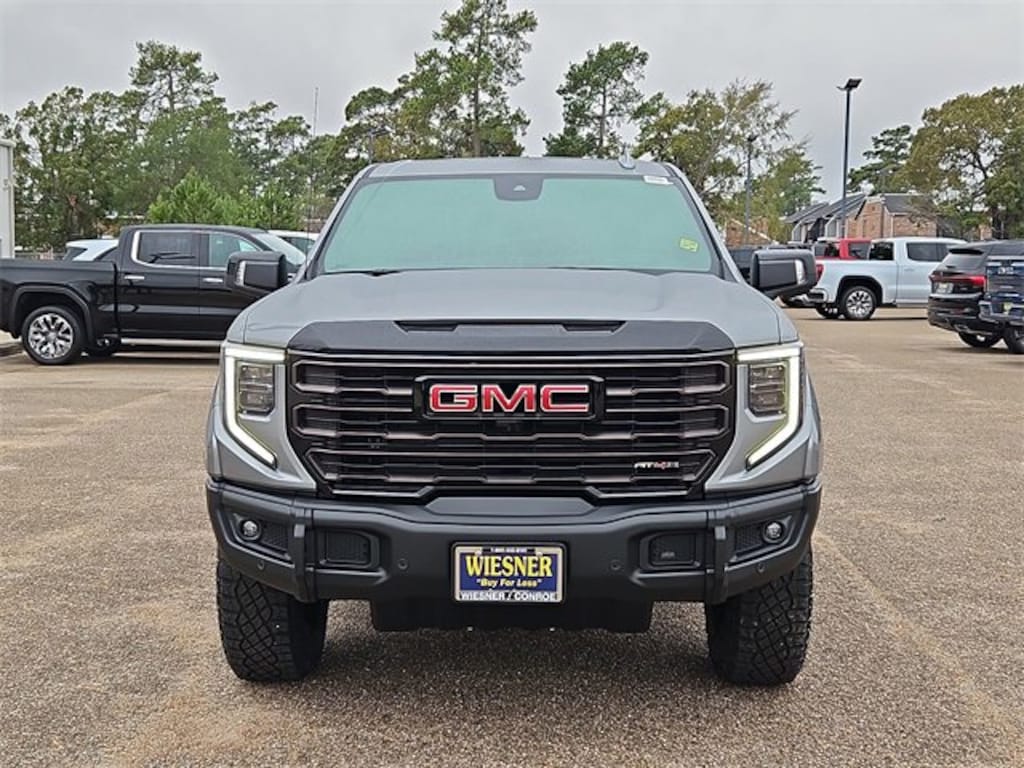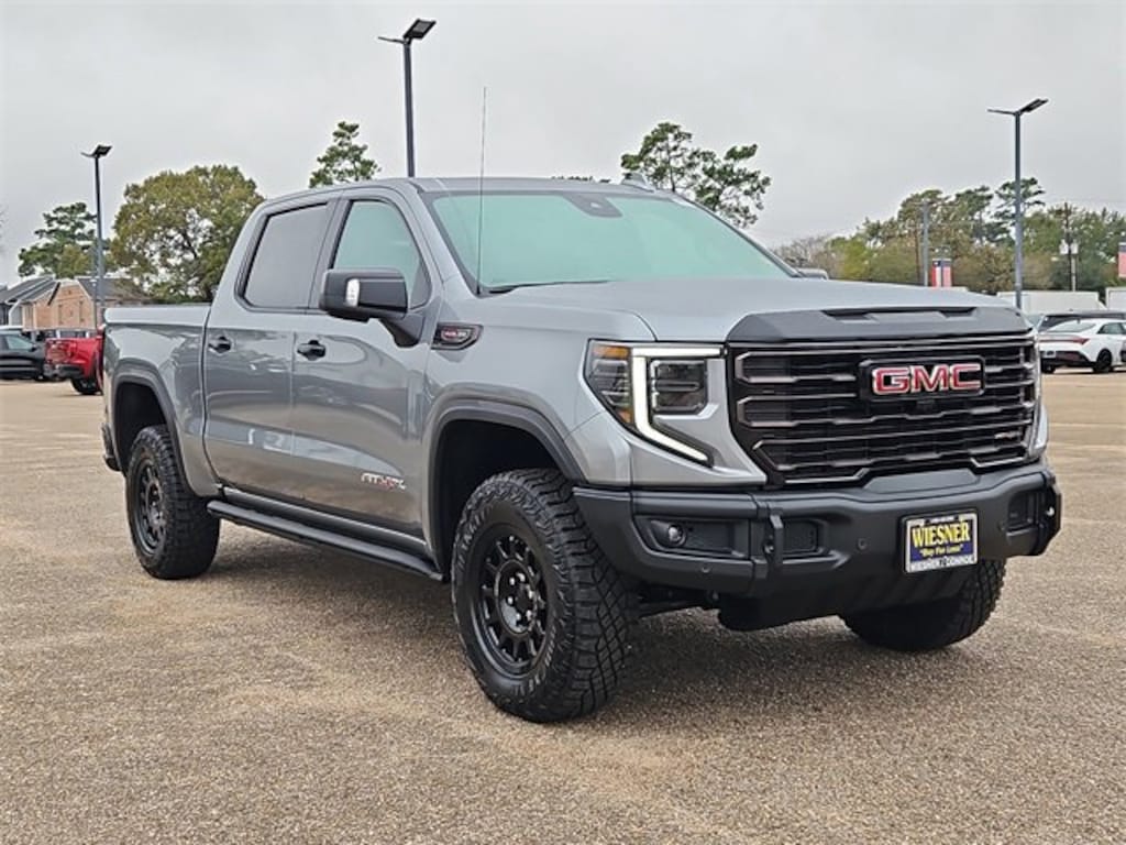 This 2026 GMC Sierra 1500 AT4X in Sterling Metallic comes with the following features: EcoTec3 6.2L V8 10-Speed Automatic 4WD 10-Speed Automatic, 4WD, and Obsidian Rush Full Grain Leather AT4X AEV Edition (1st & 2nd Row AEV All-Weather Floor Liners (LPO), AEV Branded Front Head Restraints, AEV Stamped-Steel Rear Bumper, AEV Tailgate Decal w/Exterior Badging, Gloss Black Door Handles, Rocker Protection (LPO), and Wheels: 18 x 8.5 12-Spoke High Gloss Black Alum), Preferred Equipment Group 4SG (120-Volt Bed Mounted Power Outlet, 120-Volt Interior Power Outlet, 2 Charge/Data USB Ports Inside Center Console, 2 Type-C Charge-Only Rear USB Ports, 2 USB Ports, Bed View Camera, Bose Premium Series w/12-Speaker System, Color-Keyed Carpeting Floor Covering, Deep-Tinted Glass, Driver-Selectable Full-Locking Front Differential, Driver-Selectable Full-Locking Rear Differential, Electric Rear-Window Defogger, Floor-Mounted Center Console, Front Prem Floor Liners w/Removable Carpet Insert, Front Rain-Sensing Wipers, Gloss Black Header w/Drk Nickel Grille Insert Bars, HD Surround Vision, Heated 2nd Row Outboard Seats, Heated Driver & Front Outboard Passenger Seating, Heavy-Duty Air Filter, Hill Descent Control, Hitch View, In-Vehicle Trailering System App, Integrated Trailer Brake Controller, Keyless Open & Start, LED Cargo Area Lighting, Multicolor 15 Diagonal Head-Up Display, MultiPro Tailgate Audio System by Kicker (LPO), OnStar Services Capable, Perimeter Lighting, Power Door Locks, Power Front Passenger Windows w/Express Up/Down, Power Front Windows w/Driver Express Up/Down, Power Rake & Telescoping Steering Column, Power Rear Windows w/Express Down, Power Sliding Rear Window w/Rear Defogger, Power Sunroof, Push Button Start, Rear Cross Traffic Braking, Rear Pedestrian Detection, Rear Prem Floor Liners w/Removable Carpet Insert, Rear Wheelhouse Liners, Remote Vehicle Starter System, SiriusXM w/360L Trial Subscription, Spray-On Pickup Bedliner w/GMC Logo, Steering Wheel Audio Controls, Theft Deterrent System (Unauthorized Entry), Trailer Camera Provisions, Trailer Side Blind Zone Alert, Trailer Tire Pressure Monitor System, Ultrasonic Front & Rear Park Assist, Universal Home Remote, Ventilated Driver & Front Passenger Seats, Wi-Fi Hotspot Capable, and Wireless Charging), Trailering Package (Hitch Guidance), 10-Speed Automatic, 4WD, Obsidian Rush Full Grain Leather, 12 Speakers, 16-Way Power Driver Seat Adjuster w/Lumbar, 16-Way Power Passenger Seat Adjuster w/Lumbar, 220 Amp Alternator, 3.23 Rear Axle Ratio, 4-Wheel Disc Brakes, ABS brakes, Air Conditioning, Alloy wheels, AM/FM radio: SiriusXM with 360L, Apple CarPlay/Android Auto, Auto High-beam Headlights, Auto-dimming door mirrors, Auto-dimming Rear-View mirror, Automatic Emergency Braking, Automatic temperature control, Block heater, Brake assist, Buckle to Drive, Compass, Delay-off headlights, Driver door bin, Driver Memory, Driver vanity mirror, Dual Active Exhaust, Dual front impact airbags, Dual front side impact airbags, Electronic Stability Control, Emergency communication system: OnStar, Following Distance Indicator, Forward Collision Alert, Front anti-roll bar, Front Bucket Seats, Front Center Armrest, Front dual zone A/C, Front fog lights, Front Pedestrian Braking, Front reading lights, Front wheel independent suspension, Full Grain Leather Seat Trim, Fully automatic headlights, Garage door transmitter, Genuine wood dashboard insert, Genuine wood door panel insert, Heads-Up Display, Heated door mirrors, Heated front seats, Heated rear seats, Heated steering wheel, Illuminated entry, IntelliBeam Automatic High Beam On/Off, Lane Keep Assist w/Lane Departure Warning, Leather steering wheel, Low tire pressur Price includes: $1500 - Buick & GMC Consumer Cash Program. Exp. 01/02/2026