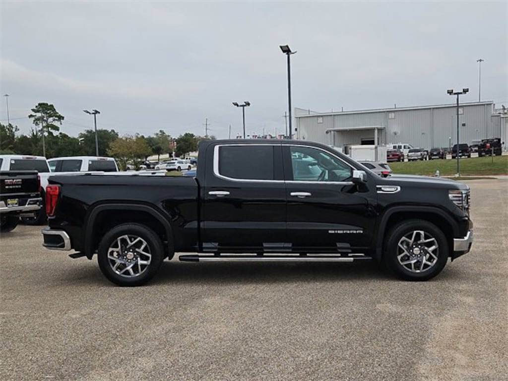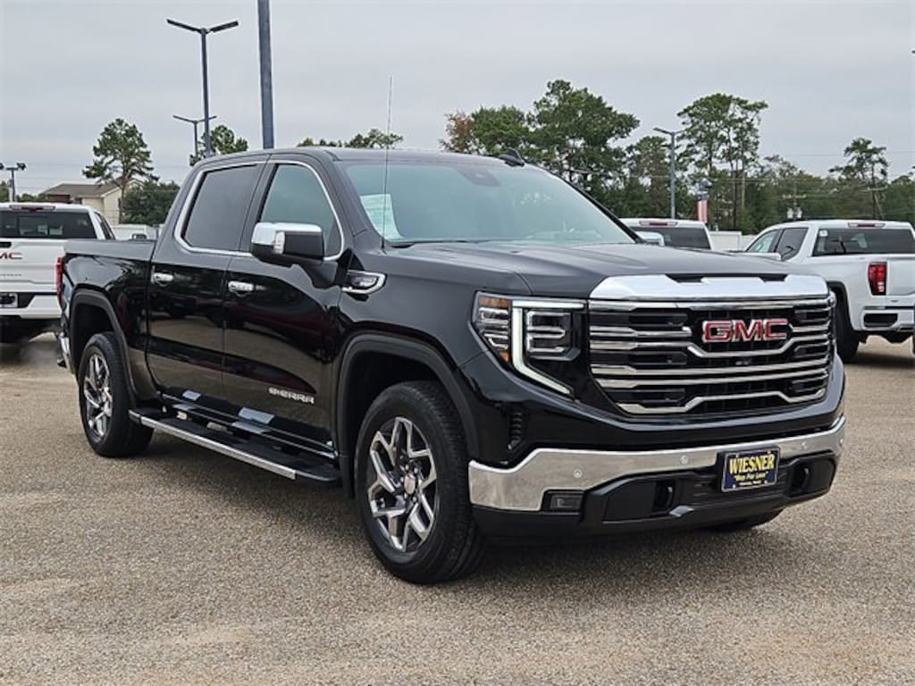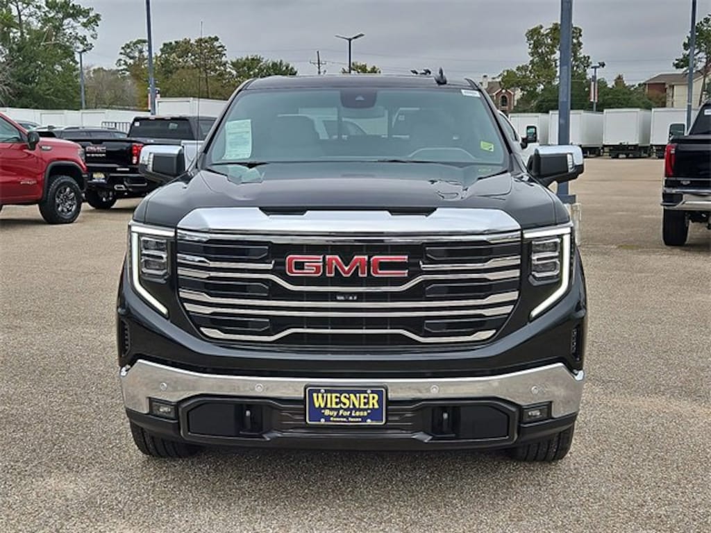 This 2026 GMC Sierra 1500 SLT in Onyx Black comes with the following features: EcoTec3 5.3L V8 10-Speed Automatic RWD 10-Speed Automatic and Dk Walnut/Slate Perforate Leather High Capacity Suspension Package, Preferred Equipment Group 4SA (10-Way Power Driver Seat Adjuster with Lumbar, 10-Way Power Passenger Seat Adjuster with Lumbar, 120-Volt Bed Mounted Power Outlet, 120-Volt Interior Power Outlet, 170 Amp Alternator, 2 Charge/Data USB Ports, 2 Type-C Charge-Only Rear USB Ports, 6-Speaker Audio System Feature, Auto-Locking Rear Differential, Auxiliary External Transmission Oil Cooler, Chrome Header and Chrome Grille Insert Bars, Color-Keyed Carpeting Floor Covering, Deep-Tinted Glass, Driver Memory, Electric Rear-Window Defogger, Front 40/20/40 Split-Bench Seat, Front Frame-Mounted Black Recovery Hooks, Front Rain-Sensing Wipers, HD Rear Vision Camera, Heated Driver and Front Outboard Passenger Seating, Integrated Trailer Brake Controller, Keyless Open and Start, LED Cargo Area Lighting, Manual Tilt-Wheel and Telescoping Steering Column, OnStar Services Capable, Perimeter Lighting, Power Door Locks, Power Front Passenger Windows with Express Up/Down, Power Front Windows with Driver Express Up/Down, Power Rear Windows with Express Down, Push Button Start, Rear Wheelhouse Liners, Remote Vehicle Starter System, SiriusXM with 360L Trial Subscription, Steering Wheel Audio Controls, Theft Deterrent System (unauthorized Entry), Wheels: 18 x 8.5 6-Spoke Machined Aluminum, and Wi-Fi Hotspot Capable), ProGrade Trailering System (Hitch View and in-Vehicle Trailering System App), Sierra Safety Plus Package (HD Surround Vision, Rear Cross Traffic Braking, Rear Pedestrian Detection, Safety Alert Seat, Trailer Camera Provisions, Trailer Side Blind Zone Alert, and Ultrasonic Front and Rear Park Assist), SLT Convenience Package (2 Charge/Data USB Ports Inside Center Console, Electronic Precision Shift, Floor-Mounted Center Console, Front Bucket Seats, Power Rake and Telescoping Steering Column, Premium Bose 7-Speaker Sound System, Ventilated Driver and Front Passenger Seats, and Wireless Charging), SLT Preferred Package (Adaptive Cruise Control, Heated 2nd Row Outboard Seats, Power Sliding Rear Window with Rear Defogger, and Universal Home Remote), Standard Suspension Package, Texas Edition SLT Premium Plus Package (20 Polished Aluminum Wheels, Chrome Wheel to Wheel Assist Steps, Spray-on Pickup Bedliner with GMC Logo, and Texas Edition Badging), Trailering Package (Hitch Guidance), 10-Speed Automatic, Dk Walnut/Slate Perforate Leather, 3.23 Rear Axle Ratio, 4-Wheel Disc Brakes, 6 Speakers, ABS brakes, Air Conditioning, Alloy wheels, AM/FM radio: SiriusXM with 360L, Apple CarPlay/Android Auto, Auto High-beam Headlights, Auto-dimming door mirrors, Auto-dimming Rear-View mirror, Automatic Emergency Braking, Automatic temperature control, Brake assist, Buckle to Drive, Bumpers: chrome, Compass, Delay-off headlights, Driver door bin, Driver vanity mirror, Dual front impact airbags, Dual front side impact airbags, Electronic Stability Control, Emergency communication system: OnStar, Following Distance Indicator, Forward Collision Alert, Front anti-roll bar, Front Center Armrest w/Storage, Front dual zone A/C, Front fog lights, Front Pedestrian Braking, Front reading lights, Front wheel independent suspension, Fully automatic headlights, Heated door mirrors, Heated front seats, Heated steering wheel, Illuminated entry, IntelliBeam Automatic High Beam on/Off, Lane Keep Assist with Lane Departure Warning, Low tire pressure warning, Memory seat, Navigation System, Occupant sensing airbag, Outside temperature display, Overhead airbag, Overhead console, Panic alarm, Passenger do Price includes: $1500 - Buick & GMC Consumer Cash Program. Exp. 01/02/2026
