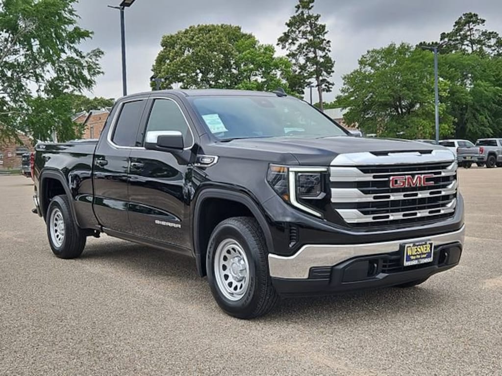 This 2026 GMC Sierra 1500 SLE in Onyx Black comes with the following features: 2.7L I4 Turbocharged DOHC 16V LEV3-SULEV30 310hp 8-Speed Automatic 4WD 8-Speed Automatic, 4WD, and Jet Blk Clth Cloth Preferred Equipment Group 3SA (10-Way Power Driver Seat Adjuster with Lumbar, 120-Volt Bed Mounted Power Outlet, 120-Volt Interior Power Outlet, 2 Charge/Data USB Ports, 2 Type-C Charge-Only Rear USB Ports, 4-Way Manual Passenger Seat Adjuster, Chrome Header with Medium Silver Grille Insert Bars, Color-Keyed Carpeting Floor Covering, Deep-Tinted Glass, Front 40/20/40 Split-Bench Seat, Front Frame-Mounted Black Recovery Hooks, Front Rubberized-Vinyl Floor Mats, HD Rear Vision Camera, Heated Driver and Front Outboard Passenger Seating, Integrated Trailer Brake Controller, Keyless Open and Start, Manual Tilt-Wheel and Telescoping Steering Column, OnStar Services Capable, Power Door Locks, Power Front Windows with Driver Express Up/Down, Power Front Windows with Passenger Express Down, Power Rear Windows with Express Down, Push Button Start, Rear Rubberized-Vinyl Floor Mats, SiriusXM with 360L Trial Subscription, Steering Wheel Audio Controls, Wheels: 17 x 8 Bright Silver Painted Aluminum, Wi-Fi Hotspot Capable, and Wireless Apple CarPlay/Wireless Android Auto), Remote Start Package (Electric Rear-Window Defogger, Remote Vehicle Starter System, and Theft Deterrent System (unauthorized Entry)), SLE Convenience Package (Dual-Zone Automatic Climate Control and LED Cargo Area Lighting), SLE Value Package (Auto-Locking Rear Differential), Standard Suspension Package, Trailering Package (Hitch Guidance), 8-Speed Automatic, 4WD, Jet Blk Clth Cloth, 220 Amp Alternator, 3.42 Rear Axle Ratio, 4-Wheel Disc Brakes, 6 Speakers, 6-Speaker Audio System Feature, ABS brakes, Air Conditioning, Alloy wheels, AM/FM radio: SiriusXM with 360L, Apple CarPlay/Android Auto, Auto High-beam Headlights, Automatic Emergency Braking, Automatic temperature control, Brake assist, Buckle to Drive, Bumpers: chrome, Cloth Seat Trim, Compass, Delay-off headlights, Driver door bin, Driver vanity mirror, Dual front impact airbags, Dual front side impact airbags, Electronic Stability Control, Emergency communication system: OnStar, Following Distance Indicator, Forward Collision Alert, Front anti-roll bar, Front Center Armrest w/Storage, Front dual zone A/C, Front Pedestrian Braking, Front reading lights, Front wheel independent suspension, Fully automatic headlights, Heated door mirrors, Heated front seats, Heated steering wheel, Illuminated entry, IntelliBeam Automatic High Beam on/Off, Lane Keep Assist with Lane Departure Warning, Low tire pressure warning, Navigation System, Occupant sensing airbag, Outside temperature display, Overhead airbag, Overhead console, Panic alarm, Passenger door bin, Passenger vanity mirror, Power door mirrors, Power driver seat, Power steering, Power windows, Radio data system, Radio: Premium GMC Infotainment Audio System, Rear reading lights, Rear step bumper, Rear window defroster, Remote keyless entry, Security system, Speed control, Speed-sensing steering, Split folding rear seat, Steering wheel mounted audio controls, Tachometer, Telescoping steering wheel, Tilt steering wheel, Traction control, Trip computer, Variably intermittent wipers, Voltmeter, and Wheels: 17 x 8 Silver Painted Steel. Price includes: $1750 - Buick & GMC Consumer Cash Program. Exp. 04/30/2026