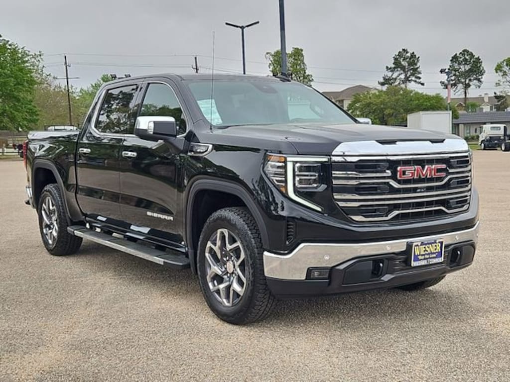This 2026 GMC Sierra 1500 SLT in Onyx Black comes with the following features: EcoTec3 5.3L V8 10-Speed Automatic 4WD 10-Speed Automatic, 4WD, and Jet Blk Perforated Lth-Ap Leather High Capacity Suspension Package, Preferred Equipment Group 4SA (10-Way Power Driver Seat Adjuster with Lumbar, 10-Way Power Passenger Seat Adjuster with Lumbar, 120-Volt Bed Mounted Power Outlet, 120-Volt Interior Power Outlet, 170 Amp Alternator, 2 Charge/Data USB Ports, 2 Type-C Charge-Only Rear USB Ports, 6-Speaker Audio System Feature, Auto-Locking Rear Differential, Auxiliary External Transmission Oil Cooler, Chrome Header and Chrome Grille Insert Bars, Color-Keyed Carpeting Floor Covering, Deep-Tinted Glass, Driver Memory, Electric Rear-Window Defogger, Front 40/20/40 Split-Bench Seat, Front Frame-Mounted Black Recovery Hooks, Front Rain-Sensing Wipers, HD Rear Vision Camera, Heated Driver and Front Outboard Passenger Seating, Integrated Trailer Brake Controller, Keyless Open and Start, LED Cargo Area Lighting, Manual Tilt-Wheel and Telescoping Steering Column, OnStar Services Capable, Perimeter Lighting, Power Door Locks, Power Front Passenger Windows with Express Up/Down, Power Front Windows with Driver Express Up/Down, Power Rear Windows with Express Down, Push Button Start, Rear Wheelhouse Liners, Remote Vehicle Starter System, SiriusXM with 360L Trial Subscription, Steering Wheel Audio Controls, Theft Deterrent System (unauthorized Entry), Wheels: 18 x 8.5 6-Spoke Machined Aluminum, and Wi-Fi Hotspot Capable), ProGrade Trailering System (Hitch View and in-Vehicle Trailering System App), Sierra Safety Plus Package (HD Surround Vision, Rear Cross Traffic Braking, Rear Pedestrian Detection, Safety Alert Seat, Trailer Camera Provisions, Trailer Side Blind Zone Alert, and Ultrasonic Front and Rear Park Assist), SLT Convenience Package (2 Charge/Data USB Ports Inside Center Console, Electronic Precision Shift, Floor-Mounted Center Console, Front Bucket Seats, Power Rake and Telescoping Steering Column, Premium Bose 7-Speaker Sound System, Ventilated Driver and Front Passenger Seats, and Wireless Charging), SLT Preferred Package (Adaptive Cruise Control, Heated 2nd Row Outboard Seats, Power Sliding Rear Window with Rear Defogger, and Universal Home Remote), Standard Suspension Package, Texas Edition SLT Premium Plus Package (20 Polished Aluminum Wheels, Chrome Wheel to Wheel Assist Steps, Spray-on Pickup Bedliner with GMC Logo, and Texas Edition Badging), Trailering Package (Hitch Guidance), X31 Off-Road Package (Dual Exhaust System, Heavy-Duty Air Filter, Hill Descent Control, Off-Road Suspension, and X31 Hard Badge), 10-Speed Automatic, 4WD, Jet Blk Perforated Lth-Ap Leather, 3.23 Rear Axle Ratio, 4-Wheel Disc Brakes, 6 Speakers, ABS brakes, Air Conditioning, Alloy wheels, AM/FM radio: SiriusXM with 360L, Apple CarPlay/Android Auto, Auto High-beam Headlights, Auto-dimming door mirrors, Auto-dimming Rear-View mirror, Automatic Emergency Braking, Automatic temperature control, Brake assist, Buckle to Drive, Bumpers: chrome, Compass, Delay-off headlights, Driver door bin, Driver vanity mirror, Dual front impact airbags, Dual front side impact airbags, Electronic Stability Control, Emergency communication system: OnStar, Following Distance Indicator, Forward Collision Alert, Front anti-roll bar, Front Center Armrest w/Storage, Front dual zone A/C, Front fog lights, Front Pedestrian Braking, Front reading lights, Front wheel independent suspension, Fully automatic headlights, Heated door mirrors, Heated front seats, Heated steering wheel, Illuminated entry, IntelliBeam Automatic High Beam on/Off, Lane Keep Assist with Lane Departure Warning, Low tire pressure warning, Memory seat, Navigation System, Occupant sensing airbag, Outside t Price includes: $1750 - Buick & GMC Consumer Cash Program. Exp. 04/30/2026