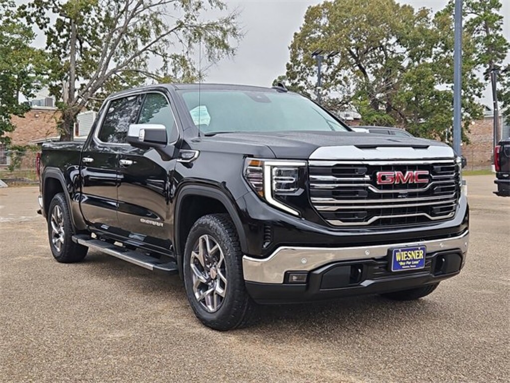 This 2026 GMC Sierra 1500 SLT in Onyx Black comes with the following features: EcoTec3 5.3L V8 10-Speed Automatic 4WD 10-Speed Automatic, 4WD, and Jet Blk Perforated Lth-Ap Leather High Capacity Suspension Package, Preferred Equipment Group 4SA (120-Volt Bed Mounted Power Outlet, 120-Volt Interior Power Outlet, 170 Amp Alternator, 2 Charge/Data USB Ports, 2 Type-C Charge-Only Rear USB Ports, 6-Speaker Audio System Feature, Auto-Locking Rear Differential, Auxiliary External Transmission Oil Cooler, Chrome Header & Chrome Grille Insert Bars, Color-Keyed Carpeting Floor Covering, Deep-Tinted Glass, Electric Rear-Window Defogger, Front Frame-Mounted Black Recovery Hooks, Front Rain-Sensing Wipers, HD Rear Vision Camera, Integrated Trailer Brake Controller, Keyless Open & Start, LED Cargo Area Lighting, Manual Tilt-Wheel & Telescoping Steering Column, OnStar Services Capable, Perimeter Lighting, Power Door Locks, Power Front Passenger Windows w/Express Up/Down, Power Front Windows w/Driver Express Up/Down, Power Rear Windows w/Express Down, Push Button Start, Rear Wheelhouse Liners, Remote Vehicle Starter System, SiriusXM w/360L Trial Subscription, Steering Wheel Audio Controls, Theft Deterrent System (Unauthorized Entry), and Wi-Fi Hotspot Capable), ProGrade Trailering System (Hitch View and In-Vehicle Trailering System App), Sierra Safety Plus Package (HD Surround Vision, Rear Cross Traffic Braking, Rear Pedestrian Detection, Safety Alert Seat, Trailer Camera Provisions, Trailer Side Blind Zone Alert, and Ultrasonic Front & Rear Park Assist), SLT Convenience Package (2 Charge/Data USB Ports Inside Center Console, Electronic Precision Shift, Floor-Mounted Center Console, Front Bucket Seats, Power Rake & Telescoping Steering Column, Premium Bose 7-Speaker Sound System, Ventilated Driver & Front Passenger Seats, and Wireless Charging), SLT Preferred Package (Adaptive Cruise Control, Heated 2nd Row Outboard Seats, Power Sliding Rear Window w/Rear Defogger, and Universal Home Remote), Standard Suspension Package, Texas Edition SLT Premium Plus Package (20 Polished Aluminum Wheels, Chrome Wheel To Wheel Assist Steps, Spray-On Pickup Bedliner w/GMC Logo, and Texas Edition Badging), Trailering Package (Hitch Guidance), X31 Off-Road Package (Dual Exhaust System, Heavy-Duty Air Filter, Hill Descent Control, Off-Road Suspension, and X31 Hard Badge), 10-Speed Automatic, 4WD, Jet Blk Perforated Lth-Ap Leather, 10-Way Power Driver Seat Adjuster w/Lumbar, 10-Way Power Passenger Seat Adjuster w/Lumbar, 3.23 Rear Axle Ratio, 4-Wheel Disc Brakes, 6 Speakers, ABS brakes, Air Conditioning, Alloy wheels, AM/FM radio: SiriusXM with 360L, Apple CarPlay/Android Auto, Auto High-beam Headlights, Auto-dimming door mirrors, Auto-dimming Rear-View mirror, Automatic Emergency Braking, Automatic temperature control, Brake assist, Buckle to Drive, Bumpers: chrome, Compass, Delay-off headlights, Driver door bin, Driver Memory, Driver vanity mirror, Dual front impact airbags, Dual front side impact airbags, Electronic Stability Control, Emergency communication system: OnStar, Following Distance Indicator, Forward Collision Alert, Front 40/20/40 Split-Bench Seat, Front anti-roll bar, Front Center Armrest w/Storage, Front dual zone A/C, Front fog lights, Front Pedestrian Braking, Front reading lights, Front wheel independent suspension, Fully automatic headlights, Heated door mirrors, Heated Driver & Front Outboard Passenger Seating, Heated front seats, Heated steering wheel, Illuminated entry, IntelliBeam Automatic High Beam On/Off, Lane Keep Assist w/Lane Departure Warning, Low tire pressure warning, Memory seat, Navigation System, Occupant sensing airbag, Outside Price includes: $1500 - Buick & GMC Consumer Cash Program. Exp. 01/02/2026