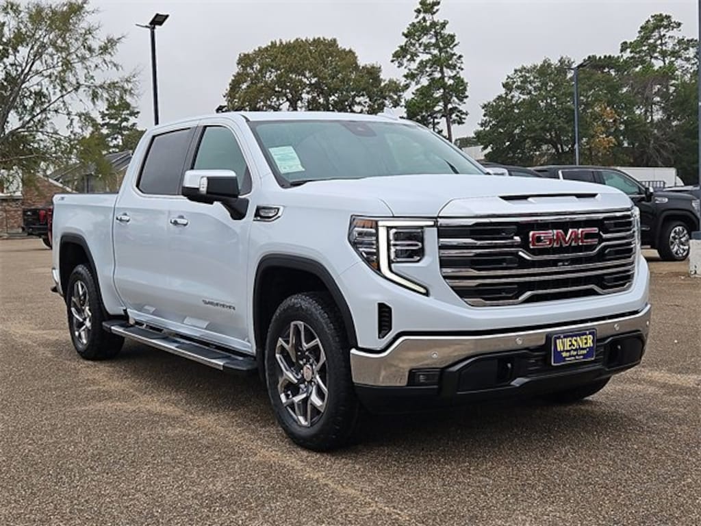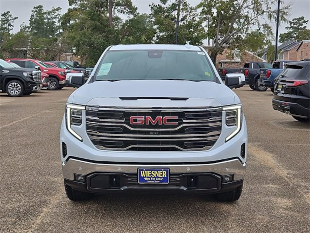 This 2026 GMC Sierra 1500 SLT in Glacier White Tricoat comes with the following features: EcoTec3 5.3L V8 10-Speed Automatic 4WD 10-Speed Automatic, 4WD, and Jet Blk Perforated Lth-Ap Leather High Capacity Suspension Package, Preferred Equipment Group 4SA (120-Volt Bed Mounted Power Outlet, 120-Volt Interior Power Outlet, 170 Amp Alternator, 2 Charge/Data USB Ports, 2 Type-C Charge-Only Rear USB Ports, 6-Speaker Audio System Feature, Auto-Locking Rear Differential, Auxiliary External Transmission Oil Cooler, Chrome Header & Chrome Grille Insert Bars, Color-Keyed Carpeting Floor Covering, Deep-Tinted Glass, Electric Rear-Window Defogger, Front Frame-Mounted Black Recovery Hooks, Front Rain-Sensing Wipers, HD Rear Vision Camera, Integrated Trailer Brake Controller, Keyless Open & Start, LED Cargo Area Lighting, Manual Tilt-Wheel & Telescoping Steering Column, OnStar Services Capable, Perimeter Lighting, Power Door Locks, Power Front Passenger Windows w/Express Up/Down, Power Front Windows w/Driver Express Up/Down, Power Rear Windows w/Express Down, Push Button Start, Rear Wheelhouse Liners, Remote Vehicle Starter System, SiriusXM w/360L Trial Subscription, Steering Wheel Audio Controls, Theft Deterrent System (Unauthorized Entry), and Wi-Fi Hotspot Capable), ProGrade Trailering System (Hitch View and In-Vehicle Trailering System App), Sierra Safety Plus Package (HD Surround Vision, Rear Cross Traffic Braking, Rear Pedestrian Detection, Safety Alert Seat, Trailer Camera Provisions, Trailer Side Blind Zone Alert, and Ultrasonic Front & Rear Park Assist), SLT Convenience Package (2 Charge/Data USB Ports Inside Center Console, Electronic Precision Shift, Floor-Mounted Center Console, Front Bucket Seats, Power Rake & Telescoping Steering Column, Premium Bose 7-Speaker Sound System, Ventilated Driver & Front Passenger Seats, and Wireless Charging), SLT Preferred Package (Adaptive Cruise Control, Heated 2nd Row Outboard Seats, Power Sliding Rear Window w/Rear Defogger, and Universal Home Remote), Standard Suspension Package, Texas Edition SLT Premium Plus Package (20 Polished Aluminum Wheels, Chrome Wheel To Wheel Assist Steps, Spray-On Pickup Bedliner w/GMC Logo, and Texas Edition Badging), Trailering Package (Hitch Guidance), X31 Off-Road Package (Dual Exhaust System, Heavy-Duty Air Filter, Hill Descent Control, Off-Road Suspension, and X31 Hard Badge), 10-Speed Automatic, 4WD, Jet Blk Perforated Lth-Ap Leather, 10-Way Power Driver Seat Adjuster w/Lumbar, 10-Way Power Passenger Seat Adjuster w/Lumbar, 3.23 Rear Axle Ratio, 4-Wheel Disc Brakes, 6 Speakers, ABS brakes, Air Conditioning, Alloy wheels, AM/FM radio: SiriusXM with 360L, Apple CarPlay/Android Auto, Auto High-beam Headlights, Auto-dimming door mirrors, Auto-dimming Rear-View mirror, Automatic Emergency Braking, Automatic temperature control, Brake assist, Buckle to Drive, Bumpers: chrome, Compass, Delay-off headlights, Driver door bin, Driver Memory, Driver vanity mirror, Dual front impact airbags, Dual front side impact airbags, Electronic Stability Control, Emergency communication system: OnStar, Following Distance Indicator, Forward Collision Alert, Front 40/20/40 Split-Bench Seat, Front anti-roll bar, Front Center Armrest w/Storage, Front dual zone A/C, Front fog lights, Front Pedestrian Braking, Front reading lights, Front wheel independent suspension, Fully automatic headlights, Heated door mirrors, Heated Driver & Front Outboard Passenger Seating, Heated front seats, Heated steering wheel, Illuminated entry, IntelliBeam Automatic High Beam On/Off, Lane Keep Assist w/Lane Departure Warning, Low tire pressure warning, Memory seat, Navigation System, Occupant sensing airbag, Outside temperature display, Overhead airbag, Overhead console, Panic alarm, Passenger door Price includes: $1500 - GM Bonus Cash. Exp. 02/02/2026 $1750 - Buick & GMC Consumer Cash Program. Exp. 02/02/2026