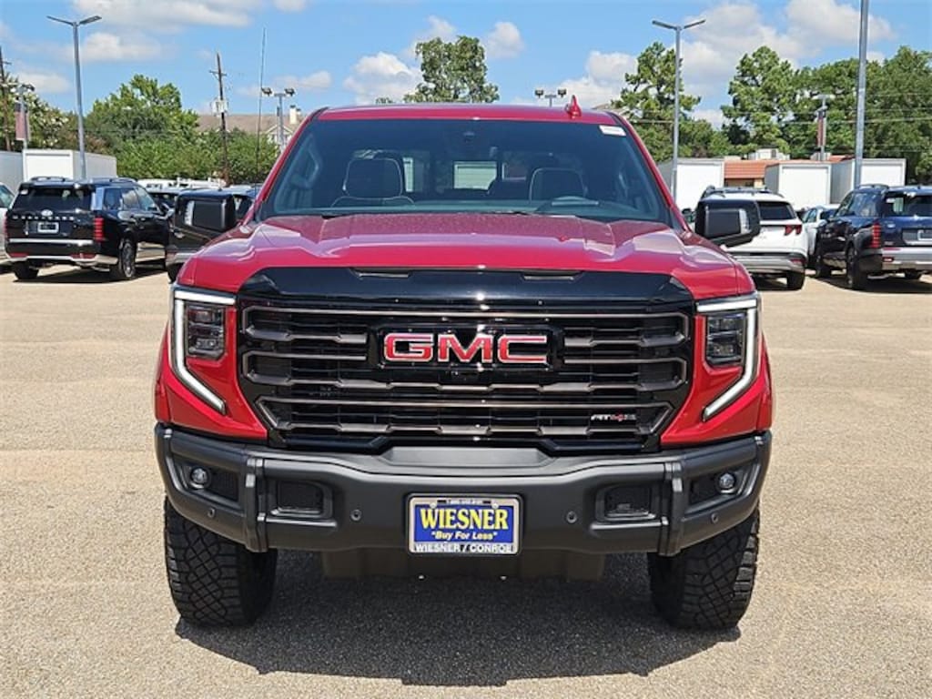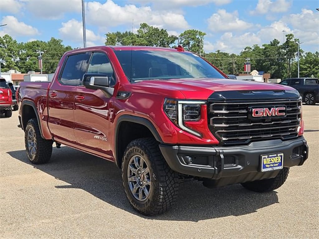 This 2026 GMC Sierra 1500 AT4X in Volcanic Red Tintcoat comes with the following features: 3.0L I6 10-Speed Automatic 4WD 10-Speed Automatic, 4WD, and Obsidian Rush Leather Preferred Equipment Group 4SG (120-Volt Bed Mounted Power Outlet, 120-Volt Interior Power Outlet, 2 Charge/Data USB Ports Inside Center Console, 2 Type-C Charge-Only Rear USB Ports, 2 USB Ports, Bed View Camera, Bose Premium Series w/12-Speaker System, Color-Keyed Carpeting Floor Covering, Deep-Tinted Glass, Driver-Selectable Full-Locking Front Differential, Driver-Selectable Full-Locking Rear Differential, Electric Rear-Window Defogger, Floor-Mounted Center Console, Front Prem Floor Liners w/Removable Carpet Insert, Front Rain-Sensing Wipers, Gloss Black Header w/Drk Nickel Grille Insert Bars, HD Surround Vision, Heated 2nd Row Outboard Seats, Heated Driver & Front Outboard Passenger Seating, Heavy-Duty Air Filter, Hill Descent Control, Hitch View, In-Vehicle Trailering System App, Integrated Trailer Brake Controller, Keyless Open & Start, LED Cargo Area Lighting, Multicolor 15 Diagonal Head-Up Display, MultiPro Tailgate Audio System by Kicker (LPO), OnStar Services Capable, Perimeter Lighting, Power Door Locks, Power Front Passenger Windows w/Express Up/Down, Power Front Windows w/Driver Express Up/Down, Power Rake & Telescoping Steering Column, Power Rear Windows w/Express Down, Power Sliding Rear Window w/Rear Defogger, Power Sunroof, Push Button Start, Rear Cross Traffic Braking, Rear Pedestrian Detection, Rear Prem Floor Liners w/Removable Carpet Insert, Rear Wheelhouse Liners, Remote Vehicle Starter System, SiriusXM w/360L Trial Subscription, Spray-On Pickup Bedliner w/GMC Logo, Steering Wheel Audio Controls, Theft Deterrent System (Unauthorized Entry), Trailer Camera Provisions, Trailer Side Blind Zone Alert, Trailer Tire Pressure Monitor System, Ultrasonic Front & Rear Park Assist, Universal Home Remote, Ventilated Driver & Front Passenger Seats, Wi-Fi Hotspot Capable, and Wireless Charging), Trailering Package (Hitch Guidance), 10-Speed Automatic, 4WD, Obsidian Rush Leather, 12 Speakers, 16-Way Power Driver Seat Adjuster w/Lumbar, 16-Way Power Passenger Seat Adjuster w/Lumbar, 220 Amp Alternator, 3.23 Rear Axle Ratio, 4-Wheel Disc Brakes, ABS brakes, Air Conditioning, Alloy wheels, AM/FM radio: SiriusXM with 360L, Apple CarPlay/Android Auto, Auto High-beam Headlights, Auto-dimming door mirrors, Auto-dimming Rear-View mirror, Automatic Emergency Braking, Automatic temperature control, Block heater, Brake assist, Buckle to Drive, Compass, Delay-off headlights, Driver door bin, Driver Memory, Driver vanity mirror, Dual front impact airbags, Dual front side impact airbags, Electronic Stability Control, Emergency communication system: OnStar, Engine Block Heater, Following Distance Indicator, Forward Collision Alert, Front anti-roll bar, Front Bucket Seats, Front Center Armrest, Front dual zone A/C, Front fog lights, Front License Plate Kit, Front Pedestrian Braking, Front reading lights, Front wheel independent suspension, Full Grain Leather Seat Trim, Fully automatic headlights, Garage door transmitter, Genuine wood dashboard insert, Genuine wood door panel insert, Heads-Up Display, Heated door mirrors, Heated front seats, Heated rear seats, Heated steering wheel, Illuminated entry, IntelliBeam Automatic High Beam On/Off, Lane Keep Assist w/Lane Departure Warning, Leather steering wheel, Low tire pressure warning, Memory seat, Navigation System, Occupant sensing airbag, Off-Road Suspension, Outside temperature display, Overhead airbag, Overhead console, Panic alarm, Passenger door bin, Passenger vanity mirror, Power door mirrors, Power driver seat, Power moonroof, Power passenger seat, Power steering, Power windows, Radio data system, Radio: Premium GMC Infotainment Audio System, Rai Price includes: $1750 - Buick & GMC Consumer Cash Program. Exp. 11/03/2025