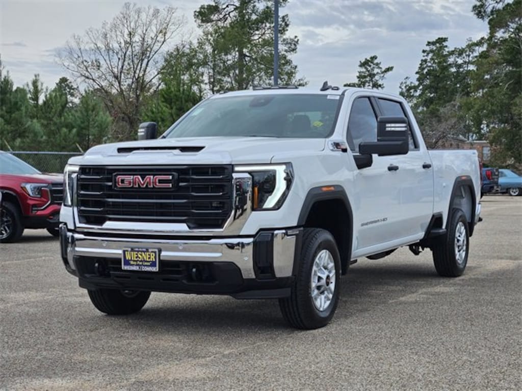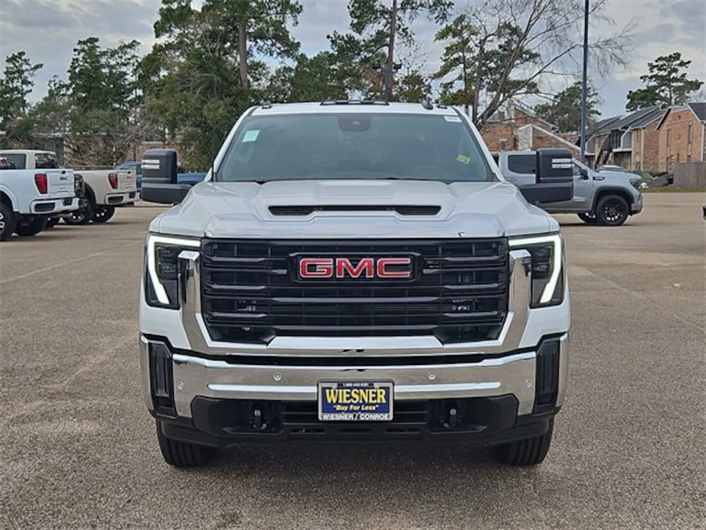 This 2026 GMC Sierra 2500HD Pro in Summit White comes with the following features: Duramax 6.6L V8 Turbodiesel 10-Speed Automatic 4WD 10-Speed Automatic, 4WD, and Black Cloth 1SA Pro Safety Plus Package (Auto-Dimming Inside Rear-View Mirror, Lane Change Alert with Side Blind Zone Alert, Perimeter Lighting, Power-Adjustable Black Outside Mirrors, Rear Cross Traffic Alert, and Ultrasonic Front and Rear Park Assist), Convenience Package (Deep-Tinted Glass, Electric Rear-Window Defogger, EZ Lift Power Lock and Release Tailgate, and LED Cargo Area Lighting), Gooseneck/5th Wheel Prep Package (Spray-on Pickup Bedliner), Preferred Equipment Group 1SA (2 Charge/Data USB Ports, 2-Speed Electronic Shift Transfer Case, Chrome Grille with Flat Black Grille Insert Bars, OnStar Services Capable, Push Button Start, Remote Keyless Entry, Solar Absorbing Tinted Glass, and Wireless Phone Projection), Suspension Package, 10-Speed Automatic, 4WD, Black Cloth, 120-Volt Bed Mounted Power Outlet, 120-Volt Instrument Panel Power Outlet, 17 Machined Aluminum Wheels, 2 Charge-Only Rear USB Ports, 220-Amp Alternator, 4-Way Manual Driver Seat Adjuster, 4-Way Manual Passenger Seat Adjuster, 4-Wheel Disc Brakes, 6 Speakers, 6-Speaker Audio System Feature, ABS brakes, Air Conditioning, AM/FM radio, Apple CarPlay/Android Auto, Auto High-beam Headlights, Automatic Emergency Braking, Brake assist, Buckle to Drive, Bumpers: chrome, Color-Keyed Carpeting Floor Covering, Compass, Delay-off headlights, Driver door bin, Dual front impact airbags, Dual front side impact airbags, Electronic Stability Control, Emergency communication system: OnStar, Engine Block Heater, Exhaust Brake, Following Distance Indicator, Forward Collision Alert, Front 40/20/40 Split-Bench Seats, Front anti-roll bar, Front Center Armrest w/Storage, Front License Plate Kit, Front Pedestrian Braking, Front reading lights, Front Rubberized-Vinyl Floor Mats, Front wheel independent suspension, Fully automatic headlights, Heavy-Duty 80 Amp Battery, High Idle Switch, Illuminated entry, IntelliBeam Automatic High Beam on/Off, Lane Departure Warning System, LED Smoked Amber Roof Marker Lamps, Low tire pressure warning, Occupant sensing airbag, Outside temperature display, Overhead airbag, Overhead console, Panic alarm, Passenger door bin, Passenger vanity mirror, Pickup Box, Power steering, Power windows, Premium audio system: GMC Infotainment System, Radio: AM/FM with GMC Infotainment System, Rear reading lights, Rear Rubberized-Vinyl Floor Mats, Rear step bumper, Remote keyless entry, Speed control, Split folding rear seat, Tachometer, Tilt steering wheel, Traction control, Trip computer, Variably intermittent wipers, Vinyl Seat Trim, Voltmeter, Wheels: 17 Silver Painted Steel, and Winter Grille Cover. Price includes: $500 - Buick & GMC Consumer Cash Program. Exp. 03/02/2026