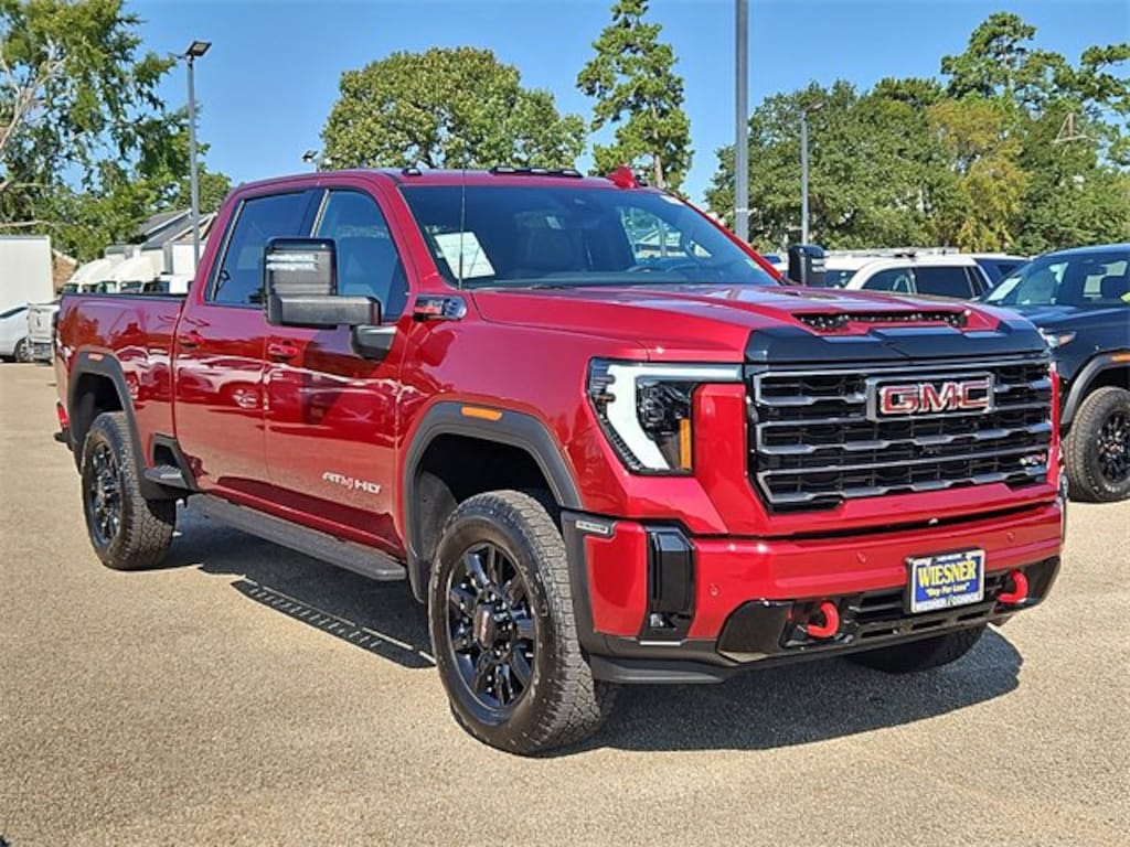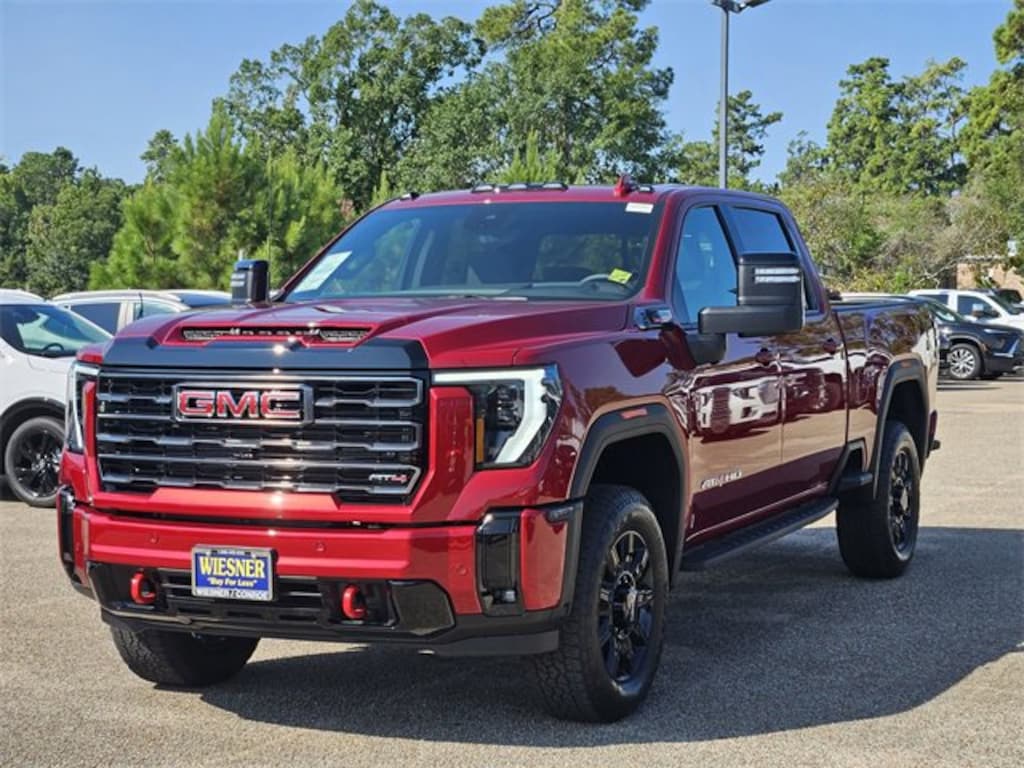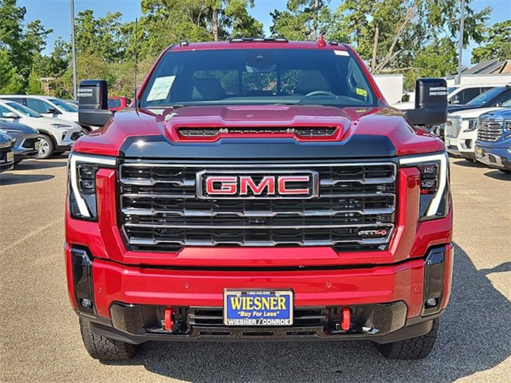 This 2026 GMC Sierra 2500HD AT4 in Volcanic Red Tintcoat comes with the following features: Duramax 6.6L V8 Turbodiesel 10-Speed Automatic 4WD 10-Speed Automatic, 4WD, and Jet Black With Kalahari Accents Leather AT4 Preferred Package (LED Smoked Amber Roof Marker Lamps, Power Sliding Rear Window w/Defogger, and Universal Home Remote), AT4 Premium Plus Package (Off-Road High Clearance Step (LPO) and Power Sunroof), Gooseneck/5th Wheel Prep Package, Max Trailering Package, Preferred Equipment Group 4SB (120-Volt Bed Mounted Power Outlet, 120-Volt Instrument Panel Power Outlet, 2 Charge-Only Rear USB Ports, 2 Charge/Data USB Ports Inside Center Console, 2 USB Ports, 2-Speed Active Transfer Case, Bed View Camera w/2 Trailer Camera Provisions, Bose Premium 7-Speaker Sound System, Deep-Tinted Glass, Electric Rear-Window Defogger, Floor-Mounted Center Console, Front Prem Floor Liners w/Removable Carpet Insert, Front Rain-Sensing Wipers, Gloss Black Header Grille & Grille Insert Bars, HD Surround Vision, Heated 2nd Row Outboard Seats, Heated Driver & Front Outboard Passenger Seats, Keyless Open & Start, LED Cargo Area Lighting, Manual Tilt-Wheel/Telescoping Steering Column, OnStar Services Capable, Power Front Passenger Windows w/Express Up/Down, Push Button Start, Rear Cross Traffic Alert, Rear Prem Floor Liners w/Removable Carpet Insert, Rear Wheelhouse Liners, Remote Vehicle Starter System, Safety Alert Seat, SiriusXM w/360L Trial Subscription, Spray-On Pickup Bedliner w/GMC Logo, Steering Wheel Audio Controls, Trailer Cam Provisions & Trailer Viewing Software, Trailer Side Blind Zone Alert, Ultrasonic Front & Rear Park Assist, Unauthorized Entry Theft-Deterrent System, Ventilated Driver & Front Passenger Seats, Wireless Charging, and Wireless Phone Projection), Technology Package (Inside Rearview Auto-Dimming Rear Camera Mirror and Multicolor 15 Diagonal Head-Up Display), X31 Off-Road Package (Hill Descent Control), 10-Speed Automatic, 4WD, Jet Black With Kalahari Accents Leather, 10-Way Power Driver Seat Adjuster w/Lumbar, 10-Way Power Passenger Seat Adjuster w/Lumbar, 220-Amp Alternator, 4-Wheel Disc Brakes, 7 Speakers, ABS brakes, Air Conditioning, Alloy wheels, AM/FM radio: SiriusXM with 360L, Apple CarPlay/Android Auto, Auto High-beam Headlights, Auto-dimming door mirrors, Auto-dimming Rear-View mirror, Automatic Emergency Braking, Automatic temperature control, Brake assist, Buckle to Drive, Bumpers: body-color, Compass, Delay-off headlights, Driver door bin, Driver Memory, Driver vanity mirror, Dual front impact airbags, Dual front side impact airbags, Electronic Stability Control, Emergency communication system: OnStar, Engine Block Heater, Exhaust Brake, Following Distance Indicator, Forward Collision Alert, Front anti-roll bar, Front Bucket Seats, Front Center Armrest, Front dual zone A/C, Front fog lights, Front License Plate Kit, Front Pedestrian Braking, Front reading lights, Front wheel independent suspension, Fully automatic headlights, Heated door mirrors, Heated front seats, Heated rear seats, Heated steering wheel, Heavy-Duty 80 Amp Battery, High Idle Switch, Hitch Guidance w/Hitch View, Illuminated entry, In-Vehicle Trailering System App, IntelliBeam Automatic High Beam On/Off, Lane Departure Warning System, Low tire pressure warning, Memory seat, Occupant sensing airbag, Off-Road Suspension, Outside temperature display, Overhead airbag, Overhead console, Panic alarm, Passenger door bin, Passenger vanity mirror, Perforated Leather-Appointed Front Seat Trim, Pickup Box, Power door mirrors, Power driver seat, Power passenger seat, Power steering, Power windows, Radio: AM/FM w/Premium GMC Infotainment System, Rain sensing wipers, Rear reading lights, Rear seat center armrest, Rear step bumper, Rear window defroster, Remote keyless entry, Security sy Price includes: $500 - Buick & GMC Consumer Cash Program. Exp. 11/03/2025