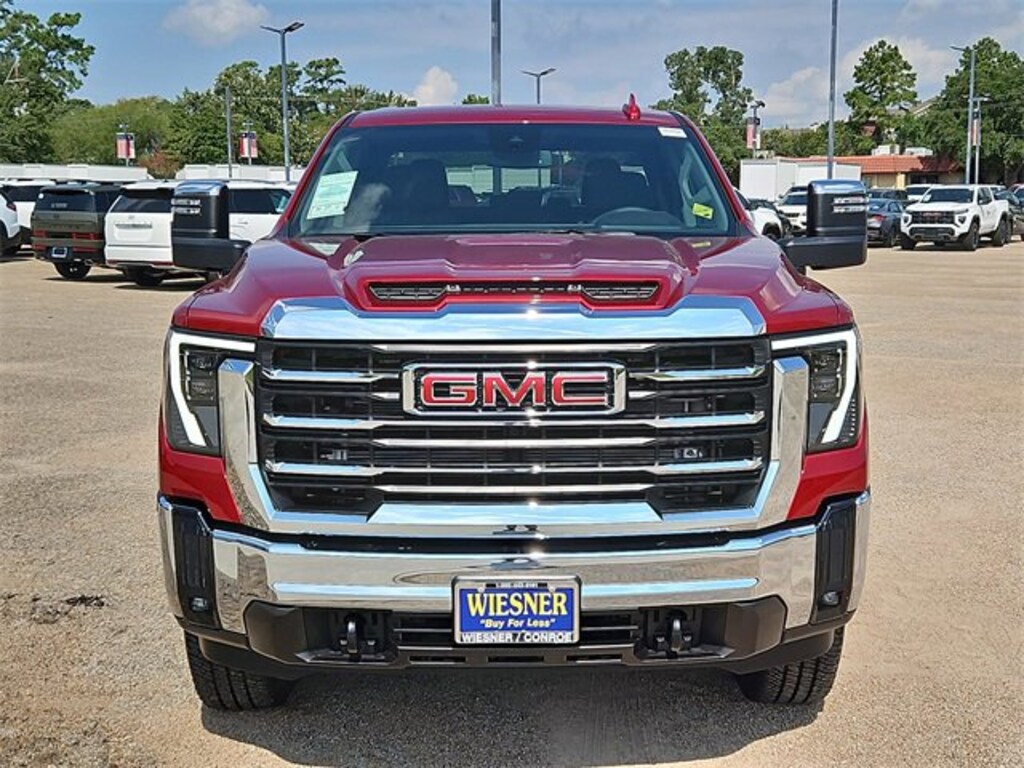 This 2026 GMC Sierra 2500HD SLT in Volcanic Red Tintcoat comes with the following features: Duramax 6.6L V8 Turbodiesel 10-Speed Automatic 4WD 10-Speed Automatic, 4WD, and Jet Blk Perforated Lth-Ap Leather Preferred Equipment Group 4SA (120-Volt Bed Mounted Power Outlet, 120-Volt Instrument Panel Power Outlet, 2 Charge-Only Rear USB Ports, 2 Charge/Data USB Ports, 2-Speed Active Transfer Case, 6-Speaker Audio System Feature, Chrome Surround Grille w/Chrome Insert Bars, Deep-Tinted Glass, Electric Rear-Window Defogger, Front Rain-Sensing Wipers, Heated Driver & Front Outboard Passenger Seats, Keyless Open & Start, LED Cargo Area Lighting, Manual Tilt-Wheel/Telescoping Steering Column, OnStar Services Capable, Power Front Passenger Windows w/Express Up/Down, Push Button Start, Rear Wheelhouse Liners, Remote Vehicle Starter System, SiriusXM w/360L Trial Subscription, Steering Wheel Audio Controls, Unauthorized Entry Theft-Deterrent System, and Wireless Phone Projection), Suspension Package, 10-Speed Automatic, 4WD, Jet Blk Perforated Lth-Ap Leather, 10-Way Power Driver Seat Adjuster w/Lumbar, 10-Way Power Passenger Seat Adjuster w/Lumbar, 18 Machined Aluminum Wheels, 220-Amp Alternator, 4-Wheel Disc Brakes, 6 Speakers, ABS brakes, Air Conditioning, Alloy wheels, AM/FM radio: SiriusXM with 360L, Apple CarPlay/Android Auto, Auto High-beam Headlights, Auto-dimming door mirrors, Auto-dimming Rear-View mirror, Automatic Emergency Braking, Automatic temperature control, Brake assist, Buckle to Drive, Bumpers: chrome, Compass, Delay-off headlights, Driver door bin, Driver Memory, Driver vanity mirror, Dual front impact airbags, Dual front side impact airbags, Dual Heavy-Duty 70 Amp Battery, Electronic Stability Control, Emergency communication system: OnStar, Engine Block Heater, Exhaust Brake, Following Distance Indicator, Forward Collision Alert, Front 40/20/40 Split-Bench Seats, Front anti-roll bar, Front Center Armrest w/Storage, Front dual zone A/C, Front fog lights, Front License Plate Kit, Front Pedestrian Braking, Front reading lights, Front wheel independent suspension, Fully automatic headlights, Heated door mirrors, Heated front seats, Heated steering wheel, Heavy-Duty 80 Amp Battery, Hitch Guidance w/Hitch View, Illuminated entry, In-Vehicle Trailering System App, IntelliBeam Automatic High Beam On/Off, Lane Departure Warning System, Low tire pressure warning, Memory seat, Occupant sensing airbag, Outside temperature display, Overhead airbag, Overhead console, Panic alarm, Passenger door bin, Passenger vanity mirror, Perf Leather-Appointed Front Outboard Seat Trim, Pickup Box, Power door mirrors, Power driver seat, Power passenger seat, Power steering, Power windows, Radio: AM/FM w/Premium GMC Infotainment System, Rain sensing wipers, Rear reading lights, Rear seat center armrest, Rear step bumper, Rear window defroster, Remote keyless entry, Security system, Speed control, Speed-sensing steering, Split folding rear seat, Steering wheel mounted audio controls, Tachometer, Telescoping steering wheel, Tilt steering wheel, Traction control, Trip computer, Turn signal indicator mirrors, Variably intermittent wipers, Voltmeter, and Winter Grille Cover. Price includes: $500 - Buick & GMC Consumer Cash Program. Exp. 11/03/2025