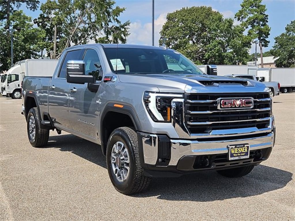 This 2026 GMC Sierra 2500HD SLT in Sterling Metallic comes with the following features: Duramax 6.6L V8 Turbodiesel 10-Speed Automatic 4WD 10-Speed Automatic, 4WD, and Jet Blk Perforated Lth-Ap Leather Preferred Equipment Group 4SA (120-Volt Bed Mounted Power Outlet, 120-Volt Instrument Panel Power Outlet, 2 Charge-Only Rear USB Ports, 2 Charge/Data USB Ports, 2-Speed Active Transfer Case, 6-Speaker Audio System Feature, Chrome Surround Grille w/Chrome Insert Bars, Deep-Tinted Glass, Electric Rear-Window Defogger, Front Rain-Sensing Wipers, Heated Driver & Front Outboard Passenger Seats, Keyless Open & Start, LED Cargo Area Lighting, Manual Tilt-Wheel/Telescoping Steering Column, OnStar Services Capable, Power Front Passenger Windows w/Express Up/Down, Push Button Start, Rear Wheelhouse Liners, Remote Vehicle Starter System, SiriusXM w/360L Trial Subscription, Steering Wheel Audio Controls, Unauthorized Entry Theft-Deterrent System, and Wireless Phone Projection), Suspension Package, 10-Speed Automatic, 4WD, Jet Blk Perforated Lth-Ap Leather, 10-Way Power Driver Seat Adjuster w/Lumbar, 10-Way Power Passenger Seat Adjuster w/Lumbar, 18 Machined Aluminum Wheels, 220-Amp Alternator, 4-Wheel Disc Brakes, 6 Speakers, ABS brakes, Air Conditioning, Alloy wheels, AM/FM radio: SiriusXM with 360L, Apple CarPlay/Android Auto, Auto High-beam Headlights, Auto-dimming door mirrors, Auto-dimming Rear-View mirror, Automatic Emergency Braking, Automatic temperature control, Brake assist, Buckle to Drive, Bumpers: chrome, Compass, Delay-off headlights, Driver door bin, Driver Memory, Driver vanity mirror, Dual front impact airbags, Dual front side impact airbags, Dual Heavy-Duty 70 Amp Battery, Electronic Stability Control, Emergency communication system: OnStar, Engine Block Heater, Exhaust Brake, Following Distance Indicator, Forward Collision Alert, Front 40/20/40 Split-Bench Seats, Front anti-roll bar, Front Center Armrest w/Storage, Front dual zone A/C, Front fog lights, Front License Plate Kit, Front Pedestrian Braking, Front reading lights, Front wheel independent suspension, Fully automatic headlights, Heated door mirrors, Heated front seats, Heated steering wheel, Heavy-Duty 80 Amp Battery, Hitch Guidance w/Hitch View, Illuminated entry, In-Vehicle Trailering System App, IntelliBeam Automatic High Beam On/Off, Lane Departure Warning System, Low tire pressure warning, Memory seat, Occupant sensing airbag, Outside temperature display, Overhead airbag, Overhead console, Panic alarm, Passenger door bin, Passenger vanity mirror, Perf Leather-Appointed Front Outboard Seat Trim, Pickup Box, Power door mirrors, Power driver seat, Power passenger seat, Power steering, Power windows, Radio: AM/FM w/Premium GMC Infotainment System, Rain sensing wipers, Rear reading lights, Rear seat center armrest, Rear step bumper, Rear window defroster, Remote keyless entry, Security system, Speed control, Speed-sensing steering, Split folding rear seat, Steering wheel mounted audio controls, Tachometer, Telescoping steering wheel, Tilt steering wheel, Traction control, Trip computer, Turn signal indicator mirrors, Variably intermittent wipers, Voltmeter, and Winter Grille Cover. Price includes: $500 - Buick & GMC Consumer Cash Program. Exp. 11/03/2025
