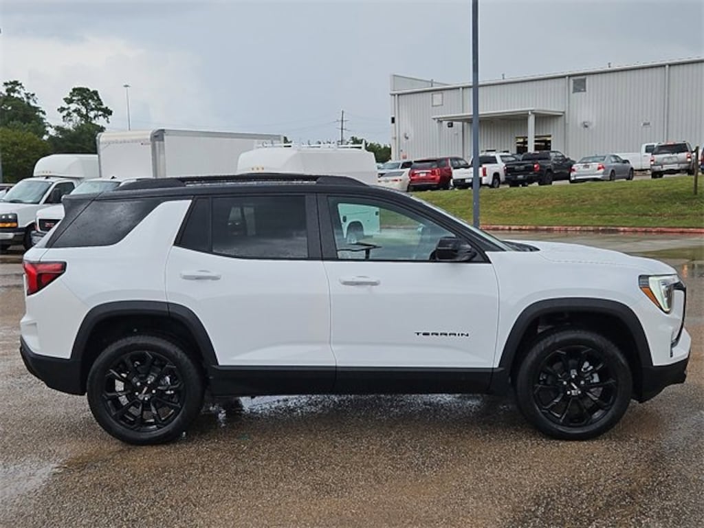 This 2026 GMC Terrain Elevation in Summit White comes with the following features: 1.5L DOHC CVT FWD Black Edition (Black Exterior Accents & Black Exterior Badging, Black Mirror Caps, Darkened Grille & C Shaped Surrounding Bezel, Front & Rear Black GMC Emblems (LPO), and Wheels: 19 Gloss Black Painted Aluminum), Convenience Package II (2-Way Power Driver Lumbar Seat Adjuster, 3-Channel Programmable Universal Home Remote, 8-Way Power Driver Seat Adjuster, AutoSense Hands-Free Power Programmable Liftgate, Brushed Aluminum Roof Rails, Cabin Humidity & Windshield Temperature Sensor, Dual-Zone Automatic Climate Control, Front Intermittent RainSense Wipers, Heated Wiper Park, Overhead Sunglass Storage, and Wireless Phone Charging for Portable Devices), Elevation Premium Package (CoreTec Seat Trim), License Plate Front Mounting Package, Preferred Equipment Group 3SA, 4-Wheel Disc Brakes, 5.81 Final Drive Axle Ratio, 6 Speakers, 6-Speaker Audio System Feature, ABS brakes, Air Conditioning, Alloy wheels, AM/FM radio: SiriusXM, Auto High-beam Headlights, Automatic temperature control, Brake assist, Bumpers: body-color, Compass, Delay-off headlights, Driver & Front Passenger Heated Seats, Driver 6-Way Manual Seat Adjuster, Driver door bin, Driver vanity mirror, Dual front impact airbags, Dual front side impact airbags, Ebony Twilight Metallic Roof, Ebony Twilight Mirror Caps, Electronic Stability Control, Emergency communication system: OnStar and GMC connected services capable, Four wheel independent suspension, Front anti-roll bar, Front Bucket Seats, Front Center Armrest, Front Passenger 4-Way Manual Seat Adjuster, Front reading lights, Fully automatic headlights, Heated door mirrors, Heated front seats, Heated steering wheel, Illuminated entry, Low tire pressure warning, Memory seat, Navigation System, Occupant sensing airbag, Outside temperature display, Overhead airbag, Panic alarm, Passenger door bin, Passenger vanity mirror, Power door mirrors, Power steering, Power windows, Premium Cloth Seat Trim, Radio data system, Radio: Premium GMC Infotainment System, Rear air conditioning, Rear anti-roll bar, Rear seat center armrest, Rear window defroster, Rear window wiper, Remote keyless entry, Security system, SiriusXM w/360L Trial Subscription, Speed control, Speed-sensing steering, Split folding rear seat, Spoiler, Sport steering wheel, Steering wheel mounted audio controls, Tachometer, Telescoping steering wheel, Tilt steering wheel, Traction control, Trip computer, Variably intermittent wipers, Wheels: 17 Grazen Metallic Machined Aluminum, and Wireless Apple CarPlay/Wireless Android Auto.