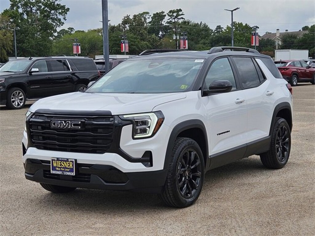 This 2026 GMC Terrain Elevation in Summit White comes with the following features: 1.5L DOHC CVT FWD Black Edition (Black Exterior Accents & Black Exterior Badging, Black Mirror Caps, Darkened Grille & C Shaped Surrounding Bezel, Front & Rear Black GMC Emblems (LPO), and Wheels: 19 Gloss Black Painted Aluminum), Convenience Package II (2-Way Power Driver Lumbar Seat Adjuster, 3-Channel Programmable Universal Home Remote, 8-Way Power Driver Seat Adjuster, AutoSense Hands-Free Power Programmable Liftgate, Brushed Aluminum Roof Rails, Cabin Humidity & Windshield Temperature Sensor, Dual-Zone Automatic Climate Control, Front Intermittent RainSense Wipers, Heated Wiper Park, Overhead Sunglass Storage, and Wireless Phone Charging for Portable Devices), Convenience Package III (2-Way Power Front Passenger Lumbar Seat Adjuster, 8-Way Power Passenger Seat Adjuster, Heated Rear Outboard Seats, Ventilated Driver Seat, and Ventilated Front Passenger Seat), Elevation Premium Package (CoreTec Seat Trim), License Plate Front Mounting Package, Memory Package, Preferred Equipment Group 3SA, 4-Wheel Disc Brakes, 5.81 Final Drive Axle Ratio, 6 Speakers, 6-Speaker Audio System Feature, ABS brakes, Air Conditioning, Alloy wheels, AM/FM radio: SiriusXM, Auto High-beam Headlights, Automatic temperature control, Brake assist, Bumpers: body-color, Compass, Delay-off headlights, Driver & Front Passenger Heated Seats, Driver 6-Way Manual Seat Adjuster, Driver door bin, Driver vanity mirror, Dual front impact airbags, Dual front side impact airbags, Ebony Twilight Metallic Roof, Ebony Twilight Mirror Caps, Electronic Stability Control, Emergency communication system: OnStar and GMC connected services capable, Four wheel independent suspension, Front anti-roll bar, Front Bucket Seats, Front Center Armrest, Front Passenger 4-Way Manual Seat Adjuster, Front reading lights, Fully automatic headlights, Heated door mirrors, Heated front seats, Heated steering wheel, Illuminated entry, Low tire pressure warning, Memory seat, Navigation System, Occupant sensing airbag, Outside temperature display, Overhead airbag, Panic alarm, Passenger door bin, Passenger vanity mirror, Power door mirrors, Power steering, Power windows, Premium Cloth Seat Trim, Radio data system, Radio: Premium GMC Infotainment System, Rear air conditioning, Rear anti-roll bar, Rear seat center armrest, Rear window defroster, Rear window wiper, Remote keyless entry, Security system, SiriusXM w/360L Trial Subscription, Speed control, Speed-sensing steering, Split folding rear seat, Spoiler, Sport steering wheel, Steering wheel mounted audio controls, Tachometer, Telescoping steering wheel, Tilt steering wheel, Traction control, Trip computer, Variably intermittent wipers, Wheels: 17 Grazen Metallic Machined Aluminum, and Wireless Apple CarPlay/Wireless Android Auto.