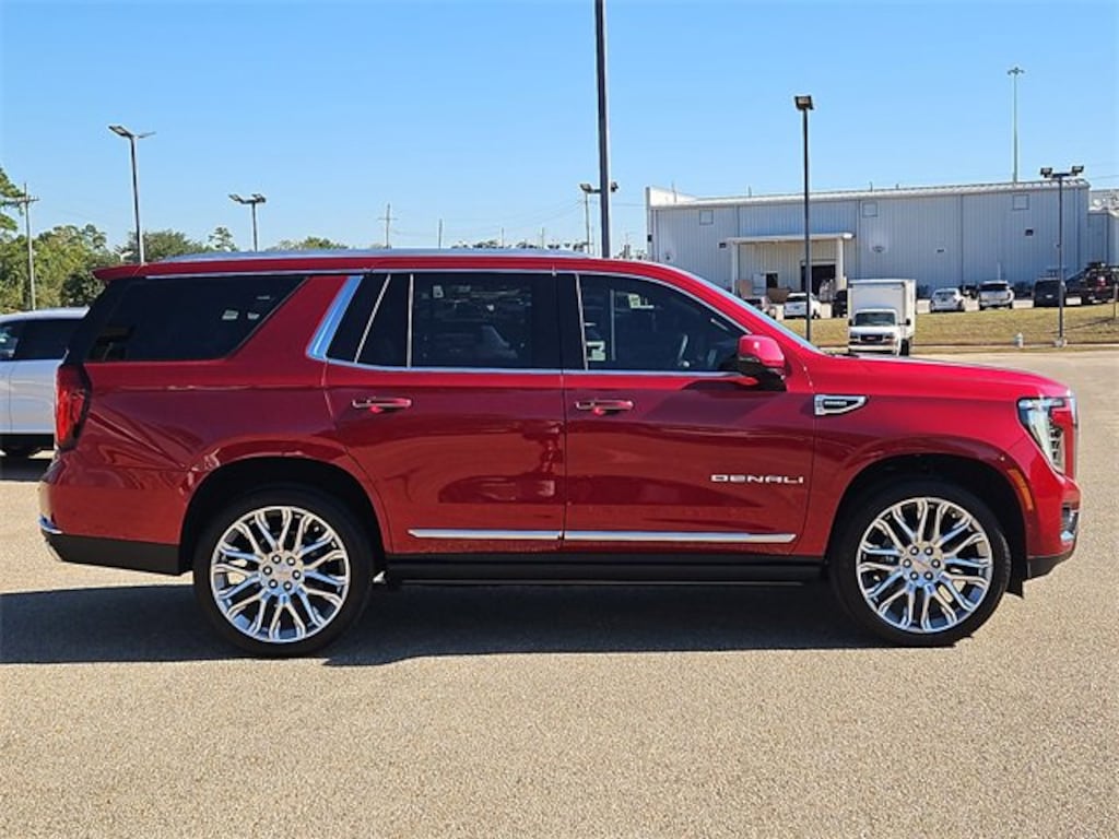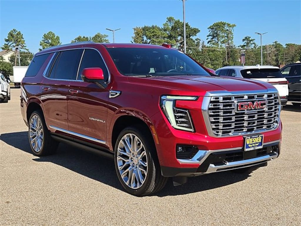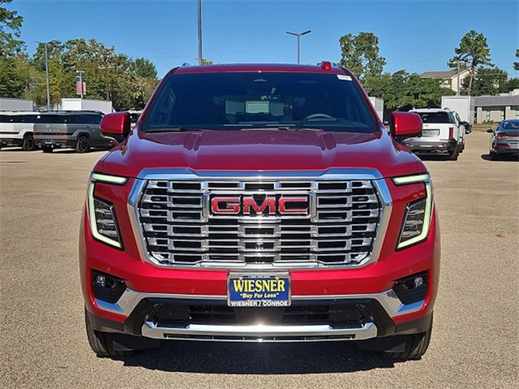 This 2026 GMC Yukon Denali in Volcanic Red Tintcoat comes with the following features: 3.0L V8 Diesel Turbocharged OHV 16V LEV3-ULEV50 420hp 10-Speed Automatic with Overdrive 4WD 4WD Advanced Security Package (Glass Breakage Sensor, Theft-Deterrent Alarm System, Vehicle Inclination Sensor, and Vehicle Interior Movement Sensor), Advanced Technology Package (3 Years OnStar One, Driver Attention Assist, Inside Rearview Auo-Dimming Rear Camera Mirror, Rear Seat Media System, and Super Cruise), Denali Reserve Package (Dual-Pane Panoramic Power Sunroof and Power-Retractable Assist Steps), Enhanced Trailering Technology Package (Trailer Camera Provisions, Trailering Assist Guidelines, and Wired Auxiliary Trailer Camera), Floor Liner Package (3rd Row All-Weather Floor Liners, All-Weather Cargo Mat, and First and Second Rows Premium Floor Liners), License Plate Front Mounting Package, Max Trailering Package (Blind Zone Steering Assist with Trailering, Extra Capacity Cooling System, Hill Descent Control, Hitch View, Integrated Trailer Brake Controller, and Smart Trailer Integration Indicator), Preferred Equipment Group 5SA (15 Diagonal Multi-Color Head-Up Display, 4-Way Power Driver Lumbar Seat Adjuster, 4-Way Power Front Passenger Lumbar Seat Adjuster, AutoSense Hands-Free Power Liftgate, Bright Front and Rear Door Sill Plates, Dual Exhaust System, Galvano Bodyside Moldings, Magnetic Ride Control Suspension, Perforated Heather and Ventilated Driver and Front Passenger Seats, Power Release 2nd Row Bucket Seats, Power Tilt and Telescopic Steering Column, and Wheels: 20 x 9 6-Spoke Polished Aluminum), 4WD, 1.5 KW Heater/Defrost Air System, 10 Speakers, 250 Amps Alternator, 3.23 Rear Axle Ratio, 3rd row seats: split-bench, 4-Wheel Disc Brakes, 850 Cold-Cranking Amps Battery, ABS brakes, Adaptive suspension, Air Conditioning, Air Ride Adaptive Suspension, Alloy wheels, AM/FM radio: SiriusXM with 360L, Apple CarPlay/Android Auto, Audio memory, Auto High-beam Headlights, Auto-dimming door mirrors, Auto-dimming Rear-View mirror, Auto-leveling suspension, Automatic temperature control, Bodyside moldings, Bose 10-Speaker Surround with CenterPoint, Brake assist, Bumpers: body-color, Compass, Delay-off headlights, Diesel B20 Fuel, Driver door bin, Driver vanity mirror, Dual front impact airbags, Dual front side impact airbags, Electronic Stability Control, Emergency communication system: OnStar and GMC connected services capable, Engine Block Heater, Exterior Parking Camera Rear, Four wheel independent suspension, Front anti-roll bar, Front Bucket Seats, Front Center Armrest, Front dual zone A/C, Front fog lights, Front reading lights, Fully automatic headlights, Garage door transmitter, Heads-Up Display, Heated door mirrors, Heated Driver and Front Passenger Seats, Heated front seats, Heated rear seats, Heated steering wheel, Illuminated entry, Low tire pressure warning, Memory seat, Mobile Service Plus, Navigation system: GMC Connected Navigation, Occupant sensing airbag, Outside temperature display, Overhead airbag, Overhead console, Panic alarm, Passenger door bin, Passenger vanity mirror, Perforated Leather Seating Surfaces, Power door mirrors, Power driver seat, Power Liftgate, Power passenger seat, Power steering, Power windows, Radio: 16.8 Diagonal Premium GMC Infotainment System, Rain sensing wipers, Rear air conditioning, Rear anti-roll bar, Rear reading lights, Rear window defroster, Rear window wiper, Remote keyless entry, Security system, SiriusXM with 360L, Speed control, Speed-sensing steering, Split folding rear seat, Spoiler, Steering wheel memory, Steering wheel mounted audio controls, Tachometer, Telescoping steering wheel, Tilt steering wheel, Traction control, Trip computer, Turn signal indicator mirrors, Upper and Lower Active Aero Shutters, Variably intermittent wipers, Ventilated front seats, Voltmeter, Wheel Locks (set of 4), and Wheels: 24 x 9.5 Selective Machined and Pain