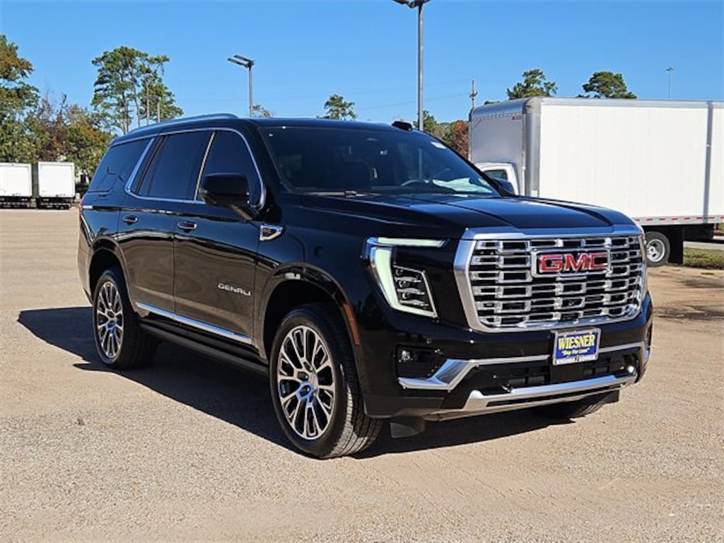 This 2026 GMC Yukon Denali in Onyx Black comes with the following features: EcoTec3 6.2L V8 10-Speed Automatic with Overdrive RWD License Plate Front Mounting Package, Preferred Equipment Group 5SA (15 Diagonal Multi-Color Head-Up Display, 3 Years OnStar One, 4-Way Power Driver Lumbar Seat Adjuster, 4-Way Power Front Passenger Lumbar Seat Adjuster, AutoSense Hands-Free Power Liftgate, Bright Front and Rear Door Sill Plates, Dual Exhaust System, Galvano Bodyside Moldings, Magnetic Ride Control Suspension, Perforated Heather and Ventilated Driver and Front Passenger Seats, Power Release 2nd Row Bucket Seats, Power Tilt and Telescopic Steering Column, and Wheels: 20 x 9 6-Spoke Polished Aluminum), Sun and Power Step Package (Dual-Pane Panoramic Power Sunroof and Power-Retractable Assist Steps), 10 Speakers, 3.23 Rear Axle Ratio, 3rd row seats: split-bench, 4-Wheel Disc Brakes, ABS brakes, Adaptive suspension, Air Conditioning, Air Ride Adaptive Suspension, Alloy wheels, AM/FM radio: SiriusXM with 360L, Apple CarPlay/Android Auto, Audio memory, Auto High-beam Headlights, Auto-dimming door mirrors, Auto-dimming Rear-View mirror, Auto-leveling suspension, Automatic temperature control, Bodyside moldings, Bose 10-Speaker Surround with CenterPoint, Brake assist, Bumpers: body-color, Compass, Delay-off headlights, Driver door bin, Driver vanity mirror, Dual front impact airbags, Dual front side impact airbags, Electronic Stability Control, Emergency communication system: OnStar and GMC connected services capable, Exterior Parking Camera Rear, Four wheel independent suspension, Front anti-roll bar, Front Bucket Seats, Front Center Armrest, Front dual zone A/C, Front fog lights, Front reading lights, Fully automatic headlights, Garage door transmitter, Heads-Up Display, Heated door mirrors, Heated Driver and Front Passenger Seats, Heated front seats, Heated rear seats, Heated steering wheel, Illuminated entry, Low tire pressure warning, Memory seat, Navigation system: GMC Connected Navigation, Occupant sensing airbag, Outside temperature display, Overhead airbag, Overhead console, Panic alarm, Passenger door bin, Passenger vanity mirror, Perforated Leather Seating Surfaces, Power door mirrors, Power driver seat, Power Liftgate, Power passenger seat, Power steering, Power windows, Radio: 16.8 Diagonal Premium GMC Infotainment System, Rain sensing wipers, Rear air conditioning, Rear anti-roll bar, Rear reading lights, Rear window defroster, Rear window wiper, Remote keyless entry, Security system, SiriusXM with 360L, Speed control, Speed-sensing steering, Split folding rear seat, Spoiler, Steering wheel memory, Steering wheel mounted audio controls, Tachometer, Telescoping steering wheel, Tilt steering wheel, Traction control, Trip computer, Turn signal indicator mirrors, Variably intermittent wipers, Ventilated front seats, Voltmeter, Wheel Locks (set of 4), and Wheels: 22 x 9 Ultra-Bright Machined.