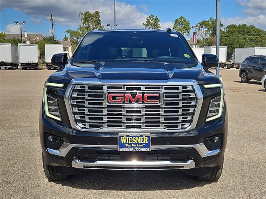 This 2026 GMC Yukon Denali in Onyx Black comes with the following features: EcoTec3 6.2L V8 10-Speed Automatic with Overdrive RWD Advanced Security Package (Glass Breakage Sensor, Theft-Deterrent Alarm System, Vehicle Inclination Sensor, and Vehicle Interior Movement Sensor), Advanced Technology Package (3 Years OnStar One, Driver Attention Assist, Inside Rearview Auo-Dimming Rear Camera Mirror, Rear Seat Media System, and Super Cruise), Denali Reserve Package (Dual-Pane Panoramic Power Sunroof and Power-Retractable Assist Steps), Enhanced Trailering Technology Package (Trailer Camera Provisions, Trailering Assist Guidelines, and Wired Auxiliary Trailer Camera), License Plate Front Mounting Package, Max Trailering Package (Blind Zone Steering Assist with Trailering, Extra Capacity Cooling System, Hitch View, Integrated Trailer Brake Controller, and Smart Trailer Integration Indicator), Preferred Equipment Group 5SA (15 Diagonal Multi-Color Head-Up Display, 4-Way Power Driver Lumbar Seat Adjuster, 4-Way Power Front Passenger Lumbar Seat Adjuster, AutoSense Hands-Free Power Liftgate, Bright Front and Rear Door Sill Plates, Dual Exhaust System, Galvano Bodyside Moldings, Magnetic Ride Control Suspension, Perforated Heather and Ventilated Driver and Front Passenger Seats, Power Release 2nd Row Bucket Seats, Power Tilt and Telescopic Steering Column, and Wheels: 20 x 9 6-Spoke Polished Aluminum), 10 Speakers, 3.23 Rear Axle Ratio, 3rd row seats: split-bench, 4-Wheel Disc Brakes, ABS brakes, Adaptive suspension, Air Conditioning, Air Ride Adaptive Suspension, Alloy wheels, AM/FM radio: SiriusXM with 360L, Apple CarPlay/Android Auto, Audio memory, Auto High-beam Headlights, Auto-dimming door mirrors, Auto-dimming Rear-View mirror, Auto-leveling suspension, Automatic temperature control, Bodyside moldings, Bose 10-Speaker Surround with CenterPoint, Brake assist, Bumpers: body-color, Compass, Delay-off headlights, Driver door bin, Driver vanity mirror, Dual front impact airbags, Dual front side impact airbags, Electronic Stability Control, Emergency communication system: OnStar and GMC connected services capable, Exterior Parking Camera Rear, Four wheel independent suspension, Front anti-roll bar, Front Bucket Seats, Front Center Armrest, Front dual zone A/C, Front fog lights, Front reading lights, Fully automatic headlights, Garage door transmitter, Heads-Up Display, Heated door mirrors, Heated Driver and Front Passenger Seats, Heated front seats, Heated rear seats, Heated steering wheel, Illuminated entry, Low tire pressure warning, Memory seat, Mobile Service Plus, Navigation system: GMC Connected Navigation, Occupant sensing airbag, Outside temperature display, Overhead airbag, Overhead console, Panic alarm, Passenger door bin, Passenger vanity mirror, Perforated Leather Seating Surfaces, Power door mirrors, Power driver seat, Power Liftgate, Power passenger seat, Power steering, Power windows, Radio: 16.8 Diagonal Premium GMC Infotainment System, Rain sensing wipers, Rear air conditioning, Rear anti-roll bar, Rear reading lights, Rear window defroster, Rear window wiper, Remote keyless entry, Security system, SiriusXM with 360L, Speed control, Speed-sensing steering, Split folding rear seat, Spoiler, Steering wheel memory, Steering wheel mounted audio controls, Tachometer, Telescoping steering wheel, Tilt steering wheel, Traction control, Trip computer, Turn signal indicator mirrors, Variably intermittent wipers, Ventilated front seats, Voltmeter, Wheel Locks (set of 4), and Wheels: 22 x 9 Ultra-Bright Machined.