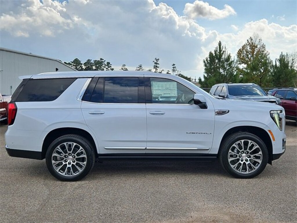 This 2026 GMC Yukon Denali in Glacier White Tricoat comes with the following features: EcoTec3 6.2L V8 10-Speed Automatic with Overdrive 4WD 4WD Advanced Security Package (Glass Breakage Sensor, Theft-Deterrent Alarm System, Vehicle Inclination Sensor, and Vehicle Interior Movement Sensor), Advanced Technology Package (3 Years OnStar One, Driver Attention Assist, Inside Rearview Auo-Dimming Rear Camera Mirror, Rear Seat Media System, and Super Cruise), Denali Reserve Package (Dual-Pane Panoramic Power Sunroof and Power-Retractable Assist Steps), Enhanced Trailering Technology Package (Trailer Camera Provisions, Trailering Assist Guidelines, and Wired Auxiliary Trailer Camera), Max Trailering Package (Blind Zone Steering Assist with Trailering, Extra Capacity Cooling System, Hill Descent Control, Hitch View, Integrated Trailer Brake Controller, and Smart Trailer Integration Indicator), Preferred Equipment Group 5SA (15 Diagonal Multi-Color Head-Up Display, 4-Way Power Driver Lumbar Seat Adjuster, 4-Way Power Front Passenger Lumbar Seat Adjuster, AutoSense Hands-Free Power Liftgate, Bright Front and Rear Door Sill Plates, Dual Exhaust System, Galvano Bodyside Moldings, Magnetic Ride Control Suspension, Perforated Heather and Ventilated Driver and Front Passenger Seats, Power Release 2nd Row Bucket Seats, Power Tilt and Telescopic Steering Column, and Wheels: 20 x 9 6-Spoke Polished Aluminum), 4WD, 10 Speakers, 3.23 Rear Axle Ratio, 3rd row seats: split-bench, 4-Wheel Disc Brakes, ABS brakes, Adaptive suspension, Air Conditioning, Air Ride Adaptive Suspension, Alloy wheels, AM/FM radio: SiriusXM with 360L, Apple CarPlay/Android Auto, Audio memory, Auto High-beam Headlights, Auto-dimming door mirrors, Auto-dimming Rear-View mirror, Auto-leveling suspension, Automatic temperature control, Bodyside moldings, Bose 10-Speaker Surround with CenterPoint, Brake assist, Bumpers: body-color, Compass, Delay-off headlights, Driver door bin, Driver vanity mirror, Dual front impact airbags, Dual front side impact airbags, Electronic Stability Control, Emergency communication system: OnStar and GMC connected services capable, Exterior Parking Camera Rear, Four wheel independent suspension, Front anti-roll bar, Front Bucket Seats, Front Center Armrest, Front dual zone A/C, Front fog lights, Front reading lights, Fully automatic headlights, Garage door transmitter, Heads-Up Display, Heated door mirrors, Heated Driver and Front Passenger Seats, Heated front seats, Heated rear seats, Heated steering wheel, Illuminated entry, Low tire pressure warning, Memory seat, Navigation system: GMC Connected Navigation, Occupant sensing airbag, Outside temperature display, Overhead airbag, Overhead console, Panic alarm, Passenger door bin, Passenger vanity mirror, Perforated Leather Seating Surfaces, Power door mirrors, Power driver seat, Power Liftgate, Power passenger seat, Power steering, Power windows, Radio: 16.8 Diagonal Premium GMC Infotainment System, Rain sensing wipers, Rear air conditioning, Rear anti-roll bar, Rear reading lights, Rear window defroster, Rear window wiper, Remote keyless entry, Security system, SiriusXM with 360L, Speed control, Speed-sensing steering, Split folding rear seat, Spoiler, Steering wheel memory, Steering wheel mounted audio controls, Tachometer, Telescoping steering wheel, Tilt steering wheel, Traction control, Trip computer, Turn signal indicator mirrors, Variably intermittent wipers, Ventilated front seats, and Voltmeter.