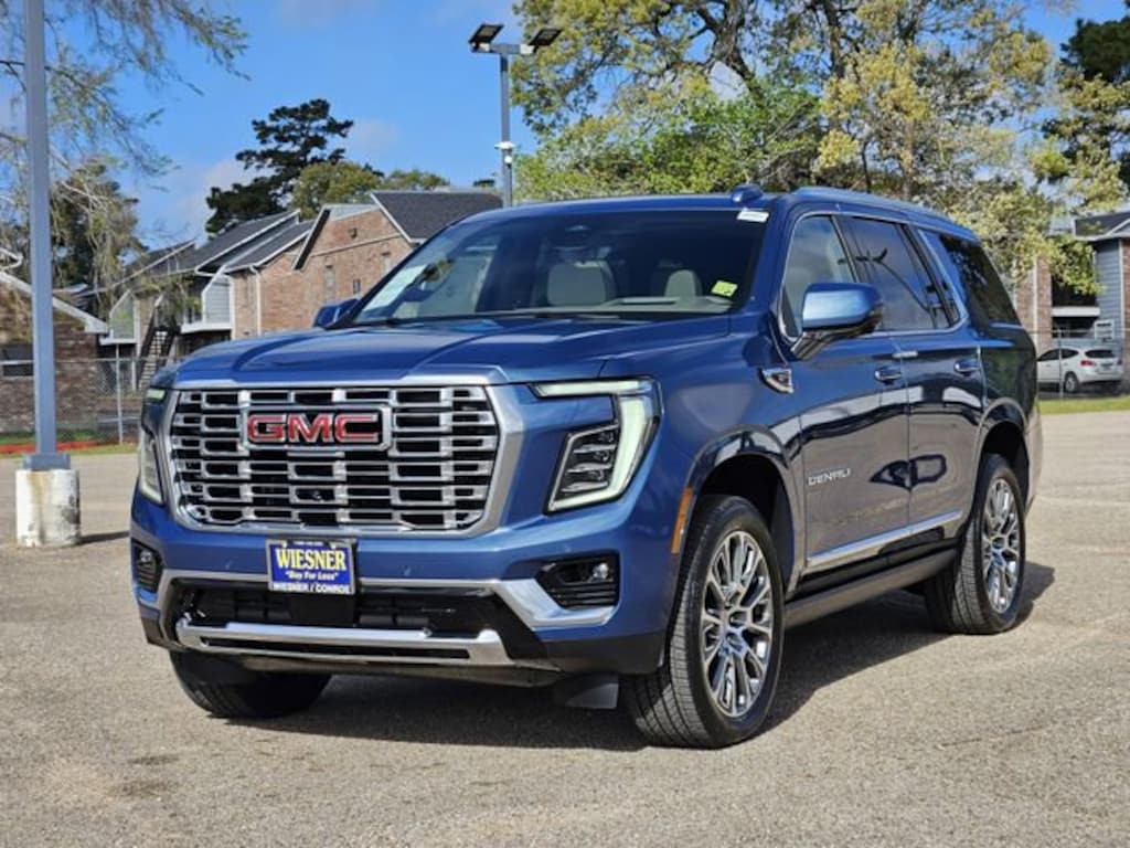 This 2026 GMC Yukon Denali in Downpour Metallic comes with the following features: EcoTec3 6.2L V8 10-Speed Automatic with Overdrive 4WD 4WD Advanced Security Package (Glass Breakage Sensor, Theft-Deterrent Alarm System, Vehicle Inclination Sensor, and Vehicle Interior Movement Sensor), Advanced Technology Package (3 Years OnStar One, Driver Attention Assist, Inside Rearview Auo-Dimming Rear Camera Mirror, Rear Seat Media System, and Super Cruise), Denali Reserve Package (Dual-Pane Panoramic Power Sunroof and Power-Retractable Assist Steps), Enhanced Trailering Technology Package (Trailer Camera Provisions, Trailering Assist Guidelines, and Wired Auxiliary Trailer Camera), Max Trailering Package (Blind Zone Steering Assist with Trailering, Extra Capacity Cooling System, Hill Descent Control, Hitch View, Integrated Trailer Brake Controller, and Smart Trailer Integration Indicator), Preferred Equipment Group 5SA (15 Diagonal Multi-Color Head-Up Display, 4-Way Power Driver Lumbar Seat Adjuster, 4-Way Power Front Passenger Lumbar Seat Adjuster, AutoSense Hands-Free Power Liftgate, Bright Front and Rear Door Sill Plates, Dual Exhaust System, Galvano Bodyside Moldings, Magnetic Ride Control Suspension, Perforated Heated and Ventilated Driver and Front Passenger Seats, Power Release 2nd Row Bucket Seats, Power Tilt and Telescopic Steering Column, and Wheels: 20 x 9 6-Spoke Polished Aluminum), 4WD, 10 Speakers, 3.23 Rear Axle Ratio, 3rd row seats: split-bench, 4-Wheel Disc Brakes, ABS brakes, Adaptive suspension, Air Conditioning, Air Ride Adaptive Suspension, Alloy wheels, AM/FM radio: SiriusXM with 360L, Apple CarPlay/Android Auto, Audio memory, Auto High-beam Headlights, Auto-dimming door mirrors, Auto-dimming Rear-View mirror, Auto-leveling suspension, Automatic temperature control, Bodyside moldings, Bose 10-Speaker Surround with CenterPoint, Brake assist, Bumpers: body-color, Compass, Delay-off headlights, Driver door bin, Driver vanity mirror, Dual front impact airbags, Dual front side impact airbags, Electronic Stability Control, Emergency communication system: OnStar and GMC connected services capable, Exterior Parking Camera Rear, Four wheel independent suspension, Front anti-roll bar, Front Bucket Seats, Front Center Armrest, Front dual zone A/C, Front fog lights, Front reading lights, Fully automatic headlights, Garage door transmitter, Heads-Up Display, Heated door mirrors, Heated Driver and Front Passenger Seats, Heated front seats, Heated rear seats, Heated steering wheel, Illuminated entry, Low tire pressure warning, Memory seat, Navigation system: GMC Connected Navigation, Occupant sensing airbag, Outside temperature display, Overhead airbag, Overhead console, Panic alarm, Passenger door bin, Passenger vanity mirror, Perforated Leather Seating Surfaces, Power door mirrors, Power driver seat, Power Liftgate, Power passenger seat, Power steering, Power windows, Radio: 16.8 Diagonal Premium GMC Infotainment System, Rain sensing wipers, Rear air conditioning, Rear anti-roll bar, Rear reading lights, Rear window defroster, Rear window wiper, Remote keyless entry, Security system, SiriusXM with 360L, Speed control, Speed-sensing steering, Split folding rear seat, Spoiler, Steering wheel memory, Steering wheel mounted audio controls, Tachometer, Telescoping steering wheel, Tilt steering wheel, Traction control, Trip computer, Turn signal indicator mirrors, Variably intermittent wipers, Ventilated front seats, and Voltmeter.