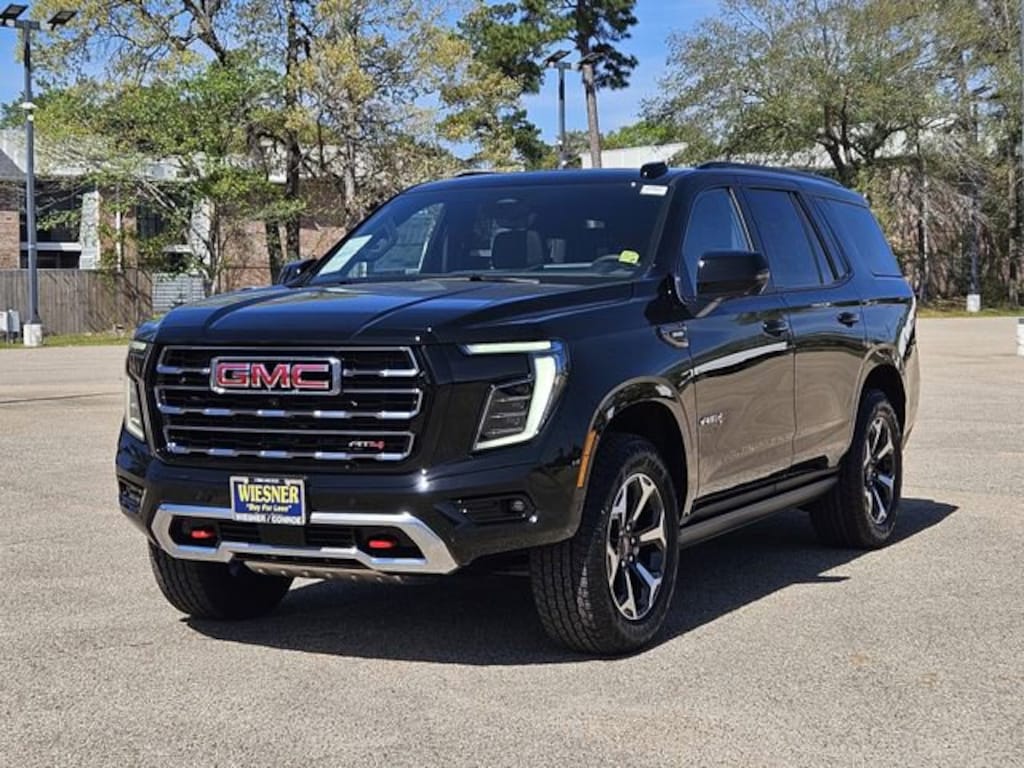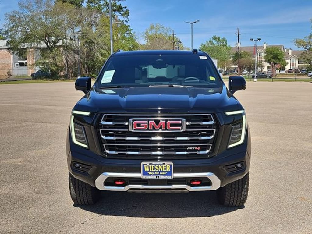 This 2026 GMC Yukon AT4 in Onyx Black comes with the following features: 3.0L I6 10-Speed Automatic with Overdrive 4WD 4WD Advanced Security Package (Glass Breakage Sensor, Theft-Deterrent Alarm System, Vehicle Inclination Sensor, and Vehicle Interior Movement Sensor), AT4 Premium Package (Dual-Pane Panoramic Power Sunroof and Power-Retractable Assist Steps), AT4 Premium Plus Package (Rear Seat Media System), Enhanced Trailering Technology Package (Trailer Camera Provisions, Trailering Assist Guidelines, and Wired Auxiliary Trailer Camera), License Plate Front Mounting Package, Max Trailering Package (Blind Zone Steering Assist with Trailering, Extra Capacity Cooling System, Hitch View, Integrated Trailer Brake Controller, and Smart Trailer Integration Indicator), Preferred Equipment Group 4SB (4-Way Power Driver Lumbar Seat Adjuster, 4-Way Power Front Passenger Lumbar Seat Adjuster, AutoSense Hands-Free Power Liftgate, Black Roof-Mounted Luggage Rack Side Rails, Body-Color Door Handles, Bright Front and Rear Door Sill Plates, Dual Exhaust System, Front High-Approach Angle Fascia, Heavy-Duty Air Filter, Hill Descent Control, Magnetic Ride Control Suspension, Perforated Heated and Ventilated Driver and Front Passenger Seats, Power Tilt and Telescopic Steering Column, Red Horizontal-Mounted Recovery Hooks, and Wheels: 20 x 9 Machined and Painted), Premium Capability Package with Active Response 4WD (Air Ride Adaptive Suspension and Electronic Limited Slip Differential (ELSD)), Technology Package (15 Diagonal Multi-Color Head-Up Display, Floor Console, Inside Rearview Auo-Dimming Rear Camera Mirror, and Power Release 2nd Row Bucket Seats), 4WD, 1.5 KW Heater/Defrost Air System, 10 Speakers, 250 Amps Alternator, 3.23 Rear Axle Ratio, 3rd row seats: split-bench, 4-Wheel Disc Brakes, 850 Cold-Cranking Amps Battery, ABS brakes, Adaptive suspension, Air Conditioning, Alloy wheels, AM/FM radio: SiriusXM with 360L, Apple CarPlay/Android Auto, Audio memory, Auto High-beam Headlights, Auto-dimming door mirrors, Auto-dimming Rear-View mirror, Auto-leveling suspension, Automatic temperature control, Bose 10-Speaker Surround with CenterPoint, Brake assist, Bumpers: body-color, Compass, Delay-off headlights, Diesel B20 Fuel, Driver Attention Assist, Driver door bin, Driver vanity mirror, Dual front impact airbags, Dual front side impact airbags, Electronic Stability Control, Emergency communication system: OnStar and GMC connected services capable, Engine Block Heater, Exterior Parking Camera Rear, Four wheel independent suspension, Front anti-roll bar, Front Bucket Seats, Front Center Armrest, Front dual zone A/C, Front fog lights, Front reading lights, Fully automatic headlights, Garage door transmitter, Heated door mirrors, Heated Driver and Front Passenger Seats, Heated front seats, Heated rear seats, Heated steering wheel, Illuminated entry, Low tire pressure warning, Memory seat, Navigation system: GMC Connected Navigation, Occupant sensing airbag, Outside temperature display, Overhead airbag, Overhead console, Panic alarm, Passenger door bin, Passenger vanity mirror, Perforated Leather Seating Surfaces, Power door mirrors, Power driver seat, Power Liftgate, Power passenger seat, Power steering, Power windows, Radio: 16.8 Diagonal Premium GMC Infotainment System, Rain sensing wipers, Rear air conditioning, Rear anti-roll bar, Rear reading lights, Rear seat center armrest, Rear window defroster, Rear window wiper, Remote keyless entry, Security system, SiriusXM with 360L, Speed control, Speed-sensing steering, Split folding rear seat, Spoiler, Steering wheel memory, Steering wheel mounted audio controls, Super Cruise, Tachometer, Telescoping steering wheel, Tilt steering wheel, Traction control, Trip computer, Turn signal indicator mirrors, Variably intermittent wipers, Ventilated front seats, and Voltmeter.