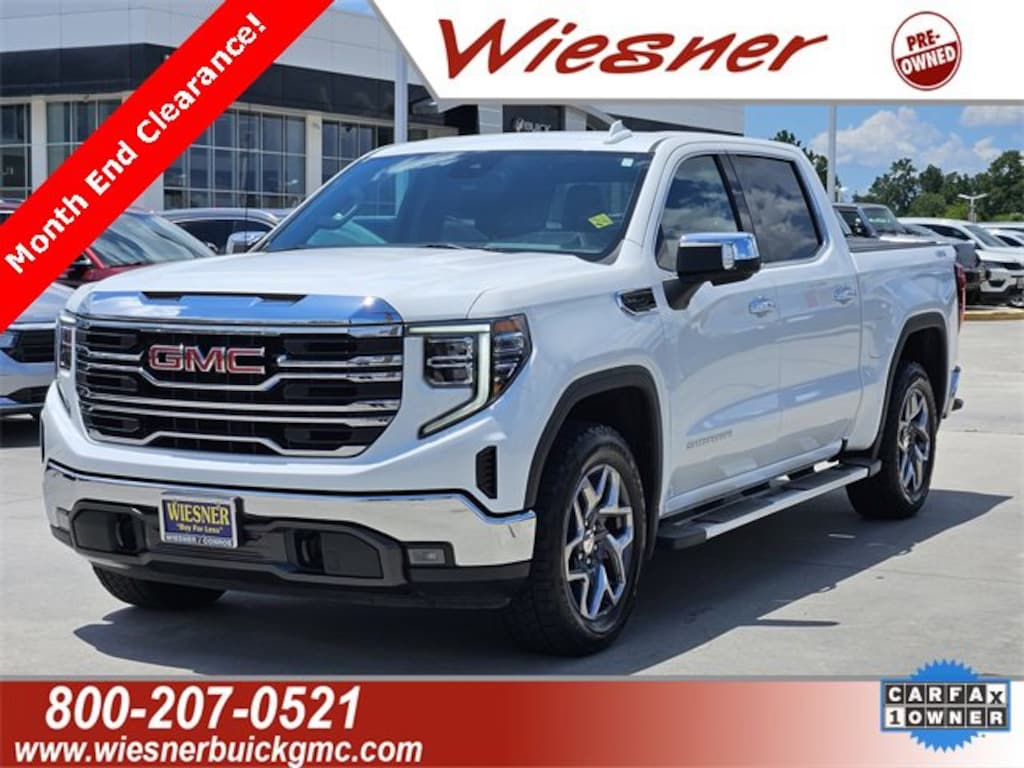 Clean CARFAX. Summit White 2022 GMC Sierra 1500 SLT Preferred 4WD 10-Speed Automatic EcoTec3 5.3L V8 10-Speed Automatic, 4WD, Jet Black Leather, 10-Way Power Driver Seat Adjuster w/Lumbar, 10-Way Power Passenger Seat Adjuster w/Lumbar, 2 Charge/Data USB Ports Inside Center Console, 20 Polished Aluminum Wheels, 3 Years of OnStar & Connected Services Plan, 3.23 Rear Axle Ratio, 4-Wheel Disc Brakes, 6 Speakers, 6-Speaker Audio System Feature, ABS brakes, Adaptive Cruise Control, Air Conditioning, AM/FM radio: SiriusXM with 360L, Apple CarPlay/Android Auto, Auto High-beam Headlights, Auto-dimming door mirrors, Auto-dimming Rear-View mirror, Auto-Locking Rear Differential, Automatic temperature control, Brake assist, Deep-Tinted Glass, Delay-off headlights, Driver Memory, Dual front impact airbags, Dual front side impact airbags, Electrical Steering Column Lock, Electronic Precision Shift, Electronic Stability Control, Emergency communication system: OnStar and GMC Connected Services capable, Exterior Parking Camera Rear, Floor-Mounted Center Console, Front 40/20/40 Split-Bench Seat, Front Bucket Seats, Front Center Armrest w/Storage, Front fog lights, Front Rainsensing Wipers, Fully automatic headlights, Heated 2nd Row Outboard Seats, Heated Driver & Front Outboard Passenger Seating, Heated Steering Wheel, High Capacity Suspension Package, Lane Keep Assist w/Lane Departure Warning, Low tire pressure warning, Navigation System, Occupant sensing airbag, OnStar & GMC Connected Services Capable, Panic alarm, Perf Leather-Appointed Front Outboard Seat Trim, Perimeter Lighting, Power Door Locks, Power door mirrors, Power driver seat, Power Front Passenger Windows w/Express Up/Down, Power Front Windows w/Driver Express Up/Down, Power Rake & Telescoping Steering Column, Power Rear Windows w/Express Down, Power Sliding Rear Window w/Rear Defogger, Power steering, Power windows, Premium Bose 7-Speaker Sound System, Push Button Start, Radio: Premium GMC Infotainment Audio System, Rain sensing wipers, Remote keyless entry, Remote Vehicle Starter System, Security system, SiriusXM w/360L, SLT Convenience Package, SLT Preferred Package, Speed control, Speed-sensing steering, Steering Wheel Audio Controls, Steering wheel mounted audio controls, Theft Deterrent System (Unauthorized Entry), Traction control, Universal Home Remote, Variably intermittent wipers, Ventilated Driver & Front Passenger Seats, Wireless Charging, Wireless Phone Projection.