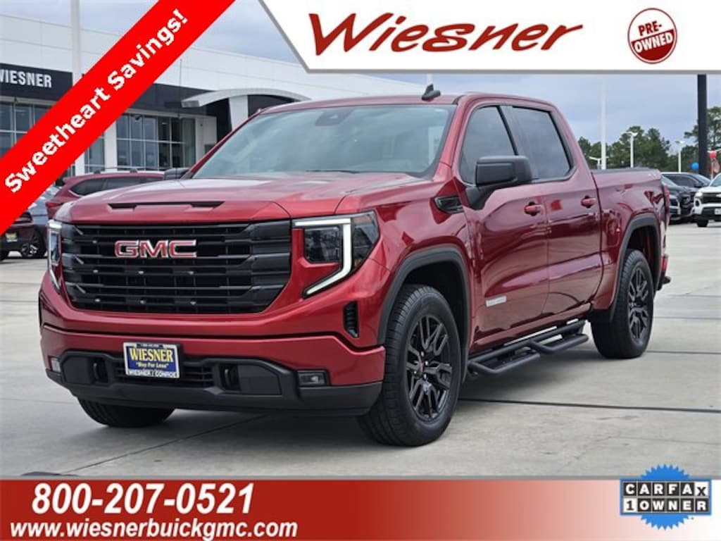 Recent Arrival! CARFAX One-Owner. Volcanic Red Tintcoat 2023 GMC Sierra 1500 Elevation 4WD 8-Speed Automatic 2.7L I4 Turbocharged DOHC 16V LEV3-ULEV50 310hp 8-Speed Automatic, 4WD, Black Cloth.Since 1972 Wiesner has been a name people around Houston and Conroe have trusted for great sales and service. Past Chairman of the Board and CEO John Wiesner was born in Richmond, Texas and grew up in Hempstead. He married Beth Sorsby, also of Hempstead. They were graduates of Southern Methodist University. Mr. Wiesner started his automotive career in Hempstead in 1949, then moved to Baytown. In 1977, he purchased the Buick-Pontiac-GMC dealership in Conroe which is now the main headquarters for the Wiesner Automotive Group. Today the Wiesner Family carries on the tradition started by their father and grand-father by maintaining that great level of trust through community involvement, promoting quality brands and standing behind the motto Buy for Less at Wiesner.