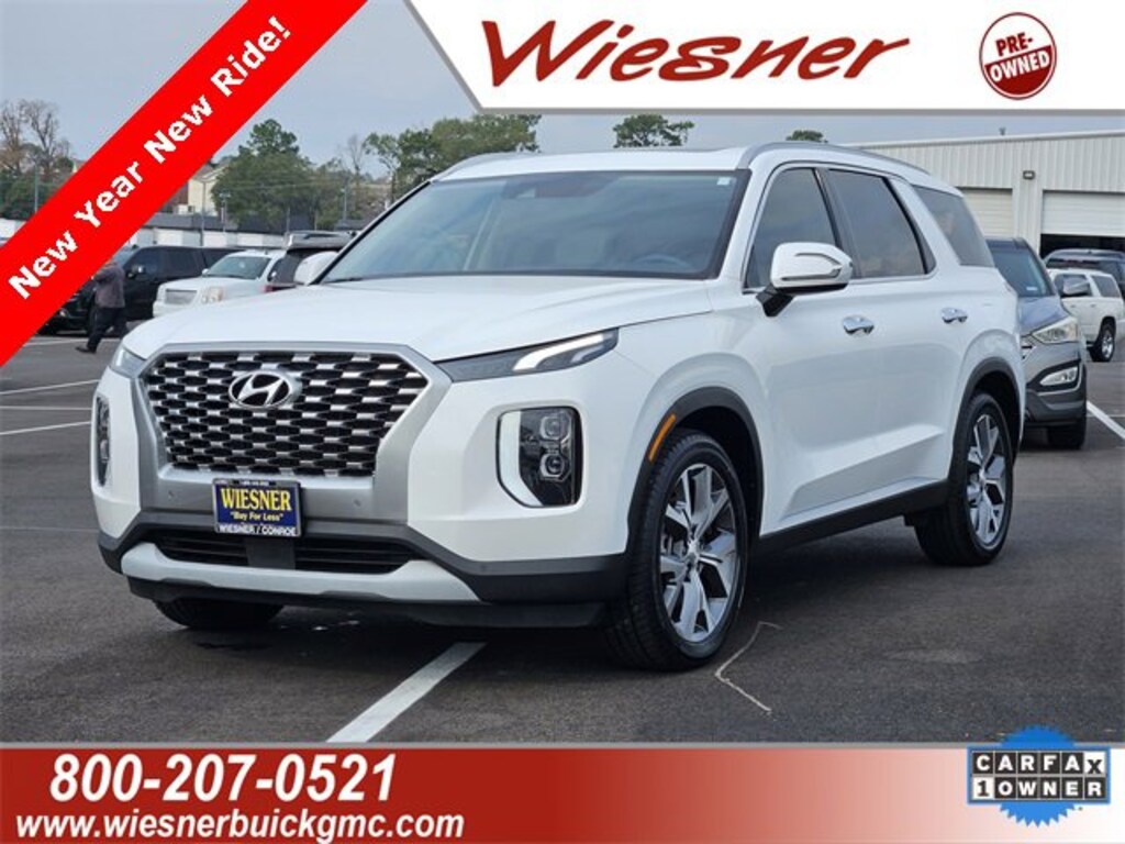 CARFAX One-Owner. Clean CARFAX. Hyper White 2021 Hyundai Palisade SEL Premium FWD 8-Speed Automatic with SHIFTRONIC V6 115-Volt AC Power Outlet, 3.648 Axle Ratio, 3rd Row USB Outlets, 4-Wheel Disc Brakes, 6 Speakers, 7 High-Resolution Cluster Display, 8-Way Power Passenger Seat, ABS brakes, Acoustic Front Side Glass, Air Conditioning, AM/FM radio, Apple CarPlay & Android Auto, Auto High-beam Headlights, Auto Leveling Rear Suspension, Auto-dimming Rear-View mirror, Automatic temperature control, Brake assist, Convenience Package P2, Delay-off headlights, Driver's Seat Integrated Memory System, Dual front impact airbags, Dual front side impact airbags, Electronic Stability Control, Four wheel independent suspension, Front Bucket Seats, Front Center Armrest, Front dual zone A/C, Front Parking Sensors, Fully automatic headlights, Hands-Free Smart Liftgate, Heated 2nd Row Seats, Heated door mirrors, Heated Front Bucket Seats, Heated front seats, Heated Steering Wheel, Highway Drive Assist I, Leather Seat Trim, LED Taillights, Low tire pressure warning, Navigation System, Occupant sensing airbag, Panic alarm, Power 3rd Row Seating, Power door mirrors, Power driver seat, Power moonroof, Power steering, Power windows, Premium Dashboard & Door Armrests, Premium Package, Premium Package P3, Radio data system, Radio: AM/FM/MP3 Display Audio, Radio: AM/FM/MP3 Premium Audio System, Rear air conditioning, Rear Side Window Sunshades, Rear window defroster, Rear window wiper, Remote keyless entry, Security system, Speed control, Speed-sensing steering, Steering wheel mounted audio controls, Traction control, Turn signal indicator mirrors, Ultrasonic Rear Occupant Alert, Variably intermittent wipers, Wheels: 20 x 7.5J Split 5-Spoke Machined Alloy, Wireless Phone Charger.